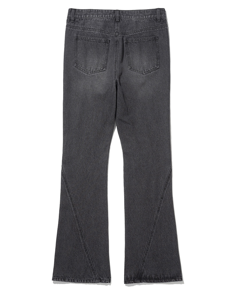 Curved Dirty Wash Bootscut Denim Pants - Black