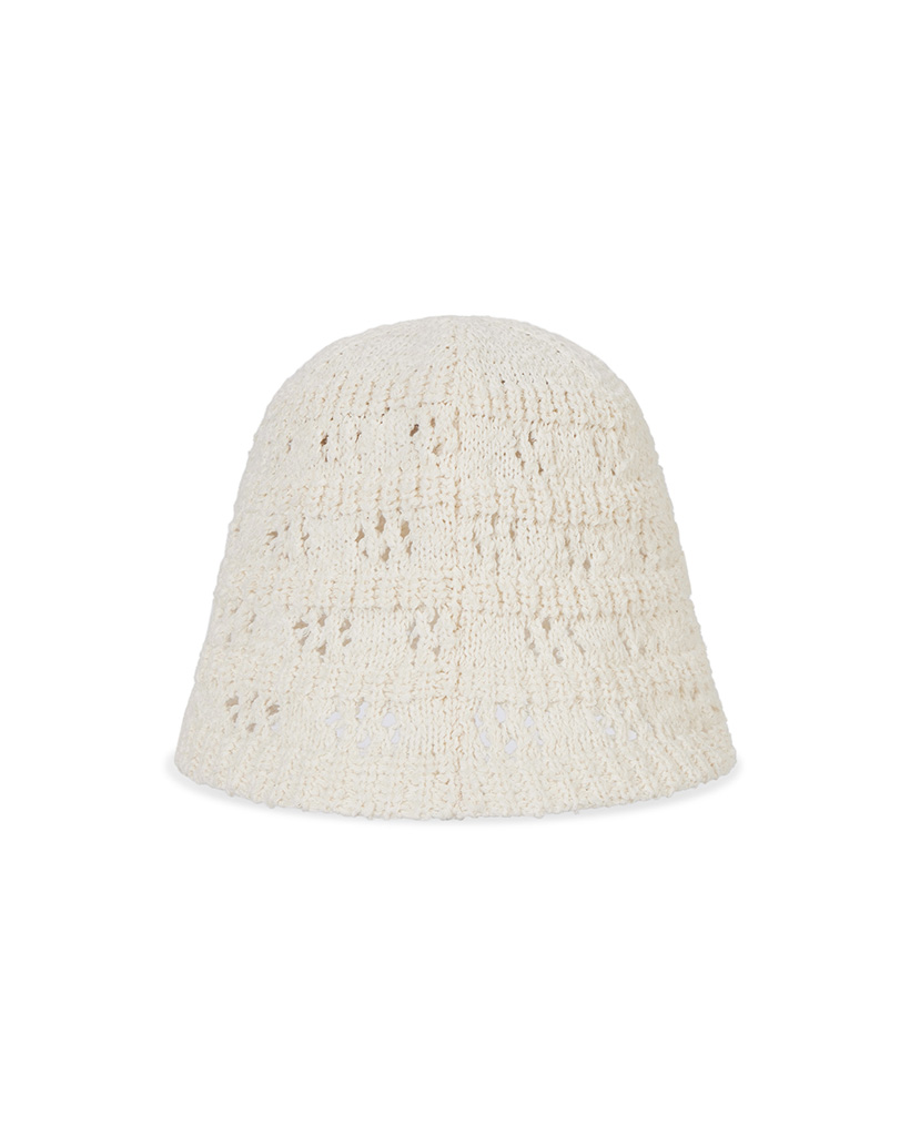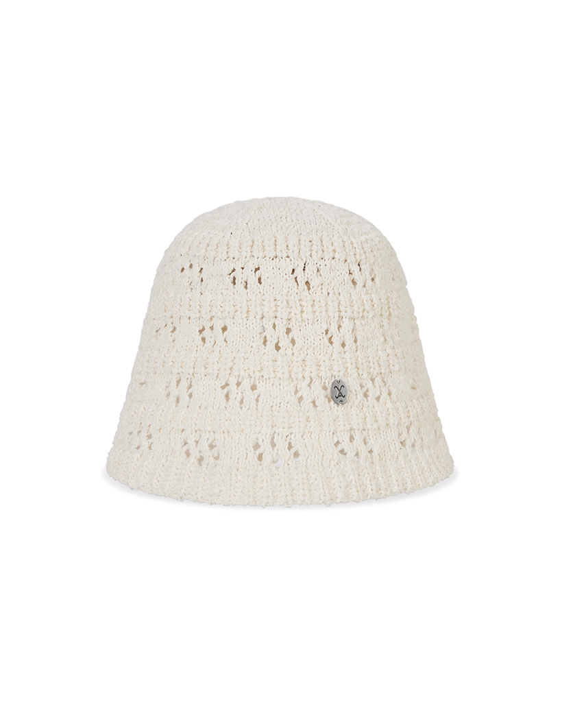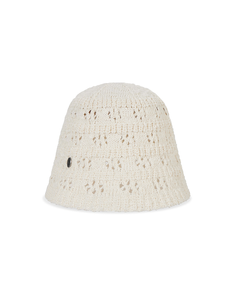 VA Curved Oval Metal Floral Punching Knit Bucket Hat Cream