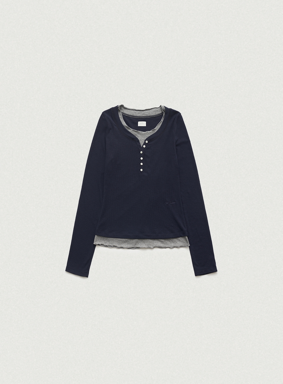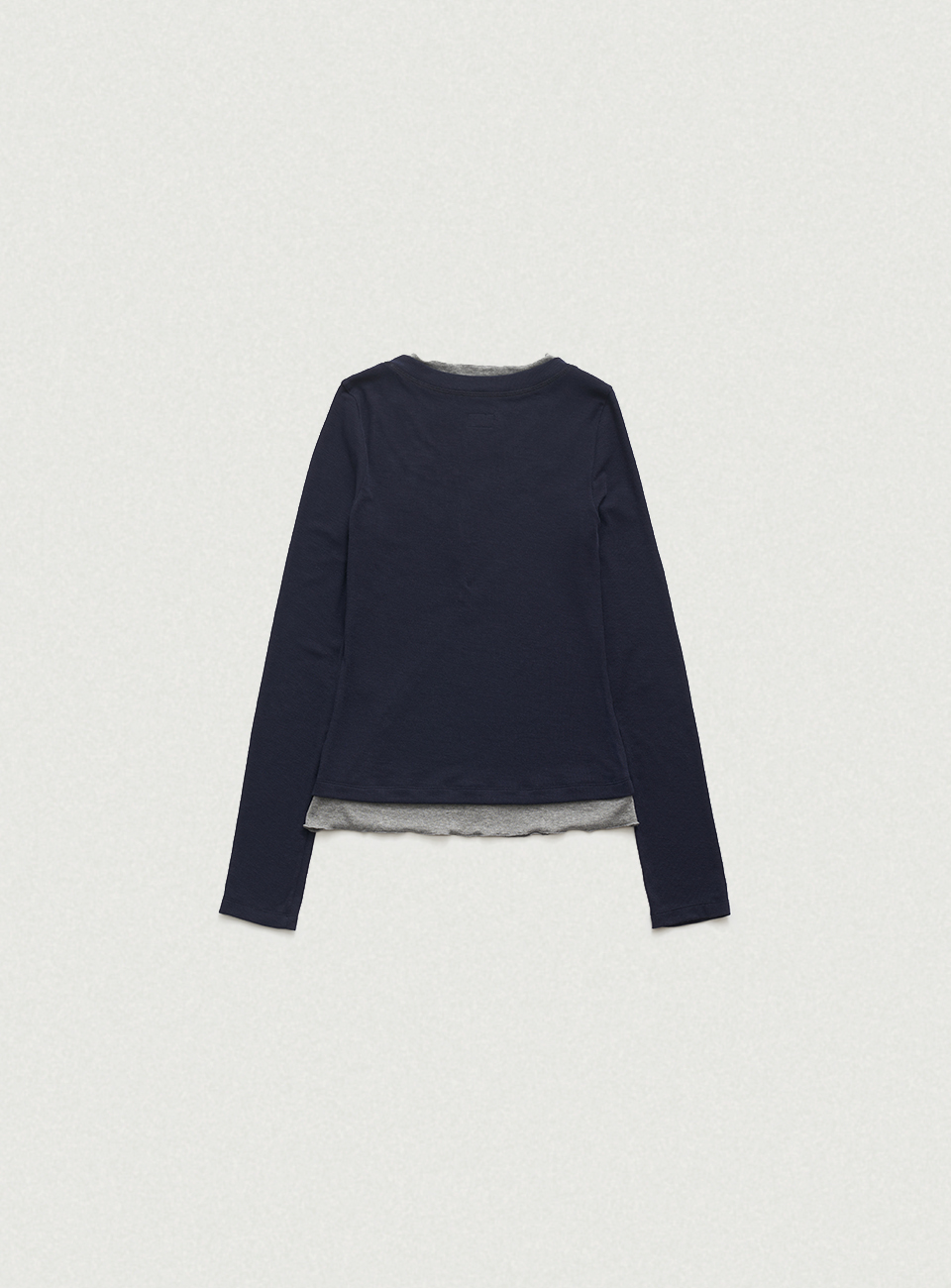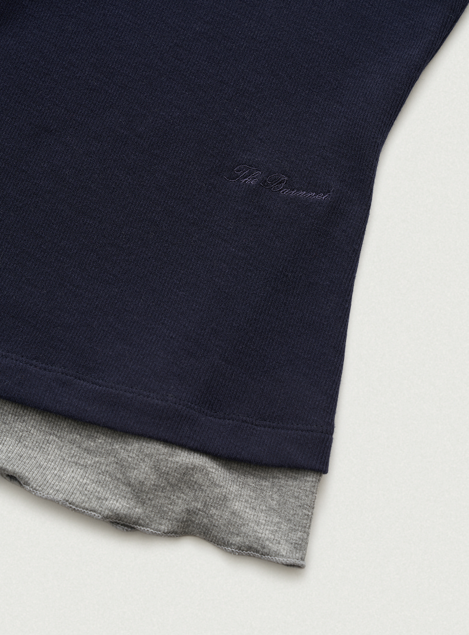 リブ編みのテクスチャーが際立つスリムフィットのレイヤードディテールTシャツ。
