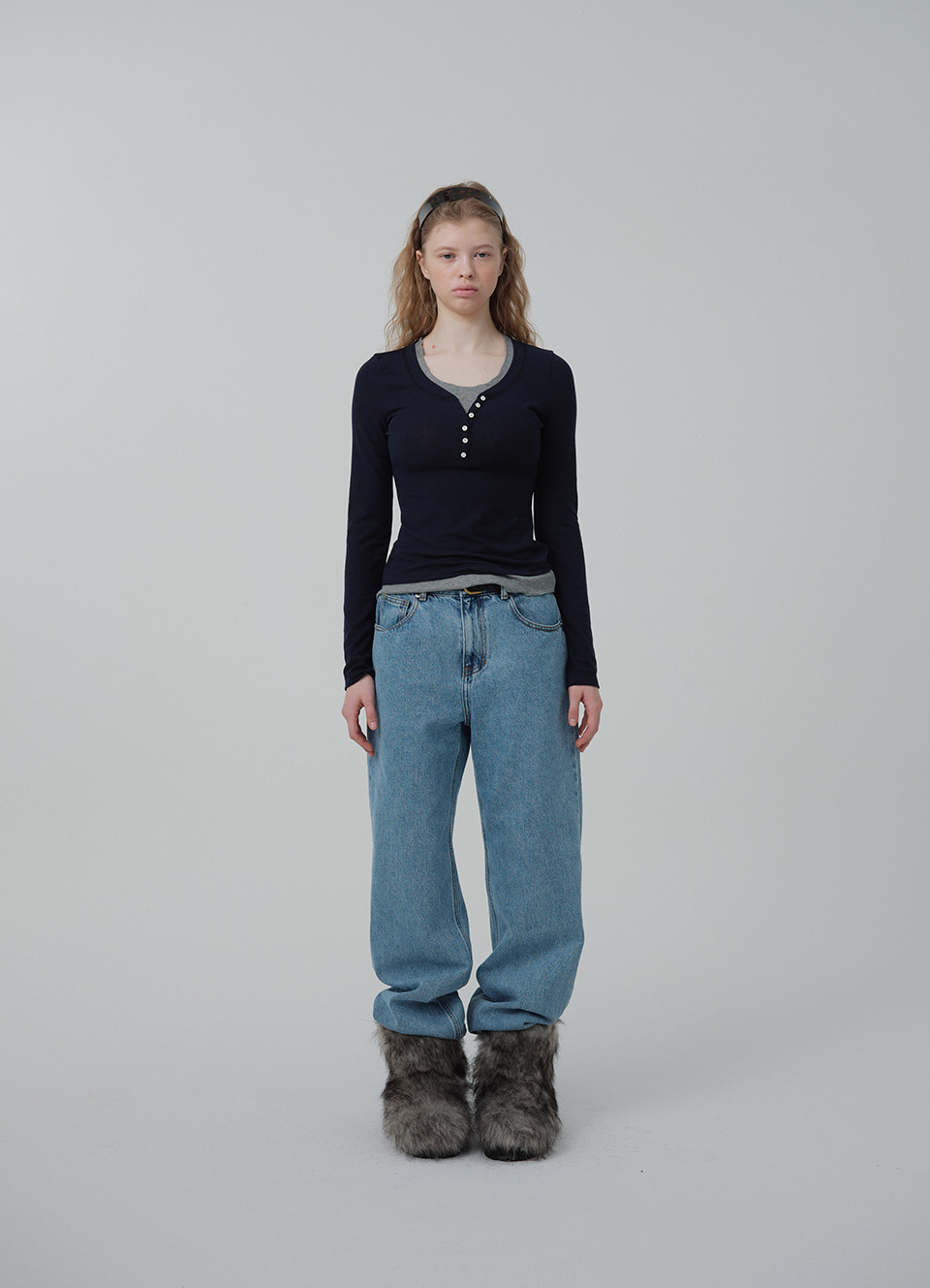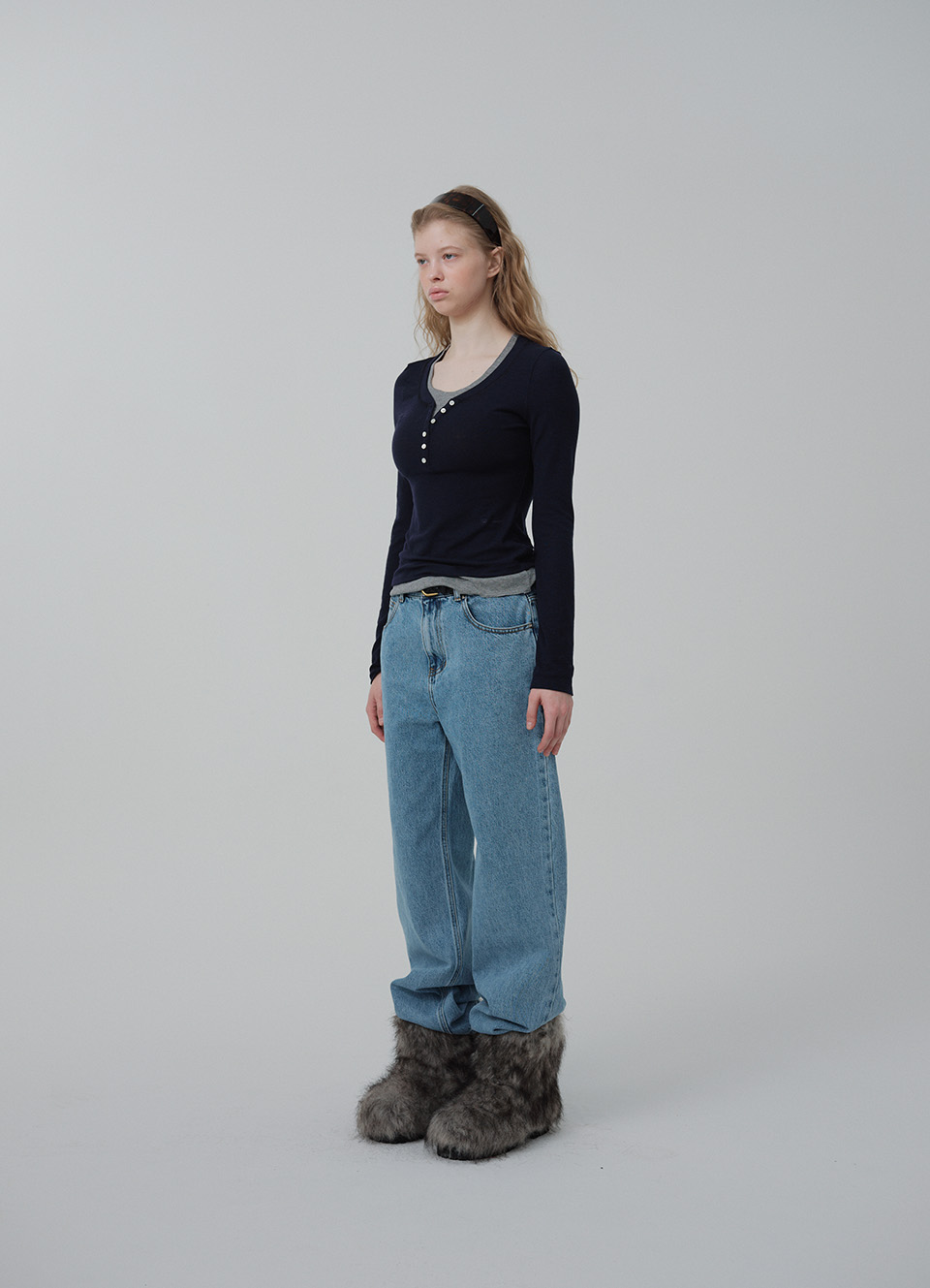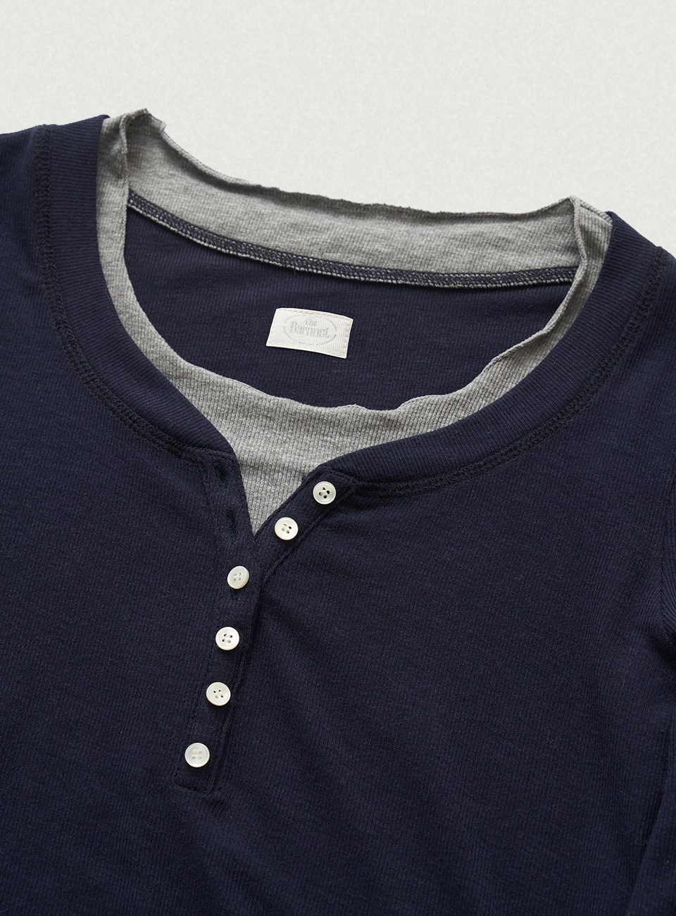 リブ編みのテクスチャーが際立つスリムフィットのレイヤードディテールTシャツ。