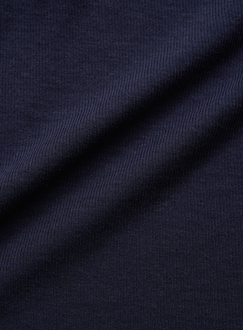ネイビーカラーで、柔らかな手触りが特徴のレーヨン混紡ファブリック。