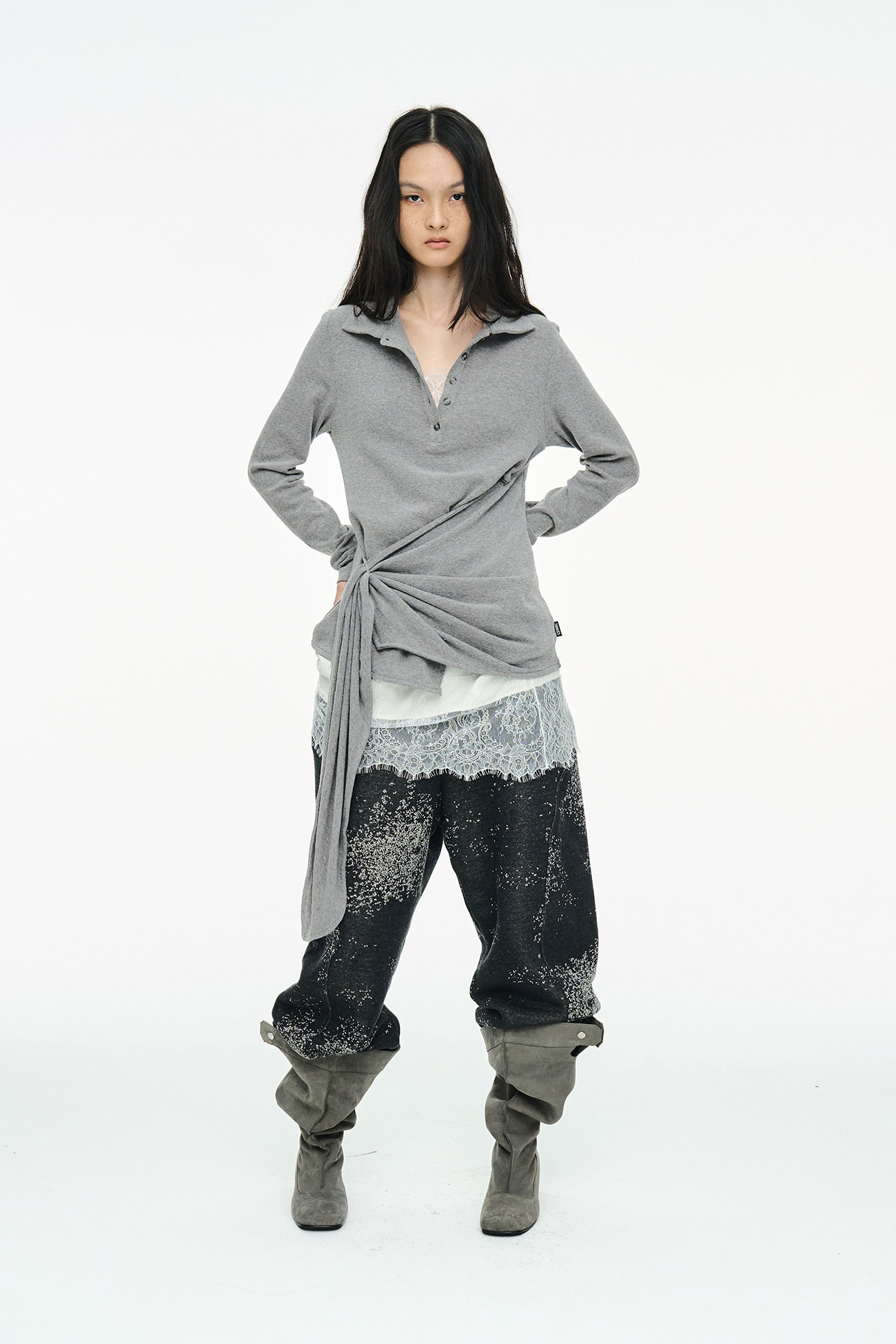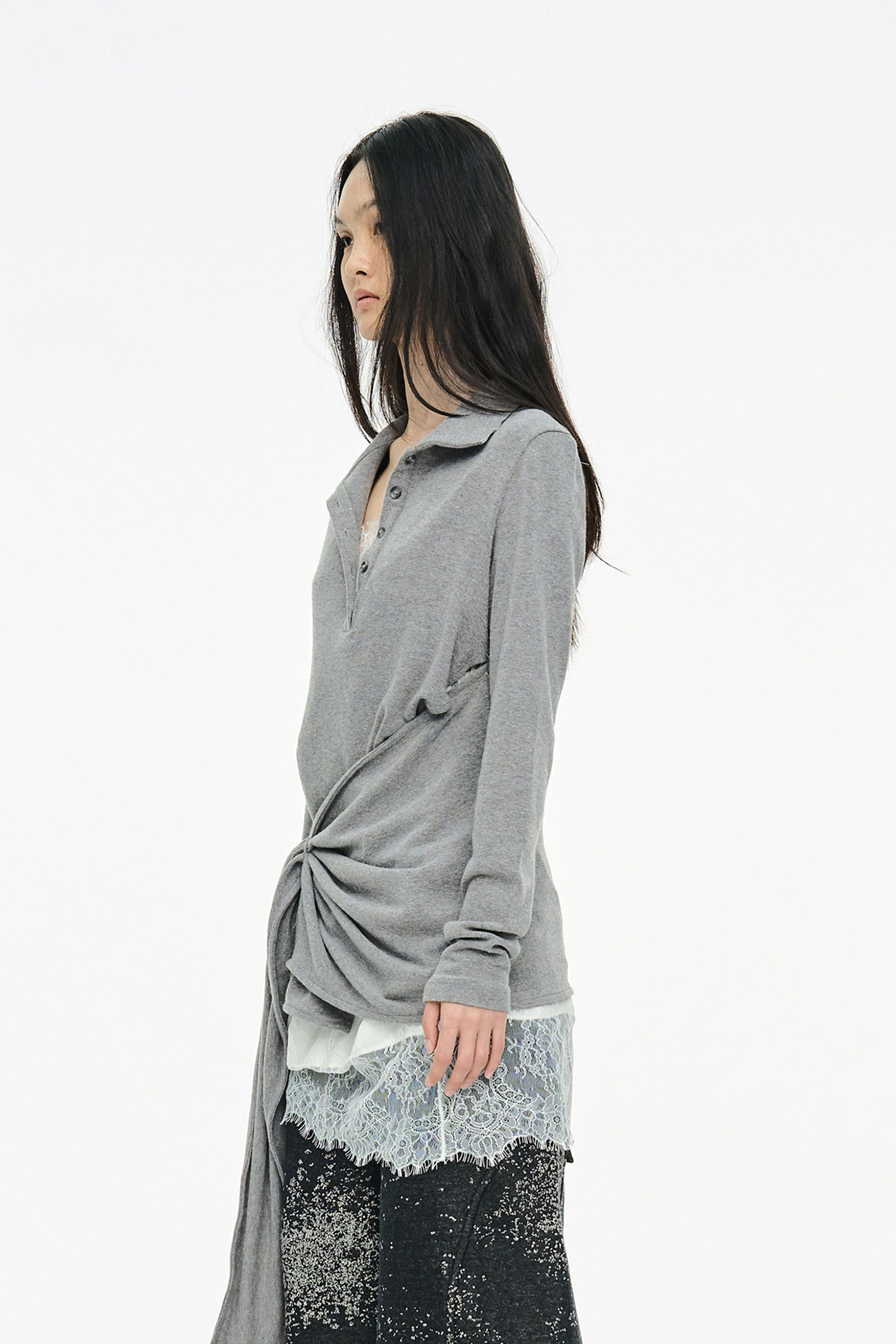 TWIST BUTTON TOP / GRAY