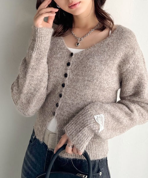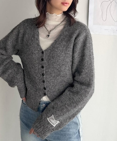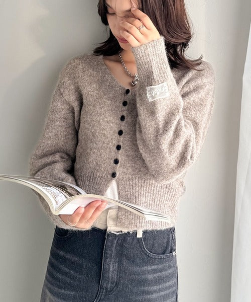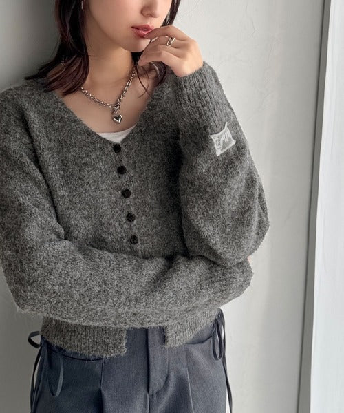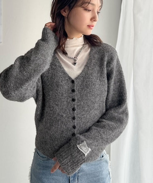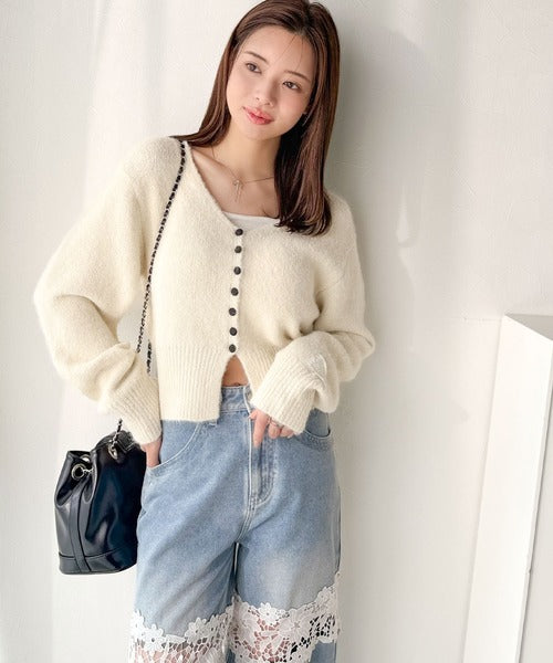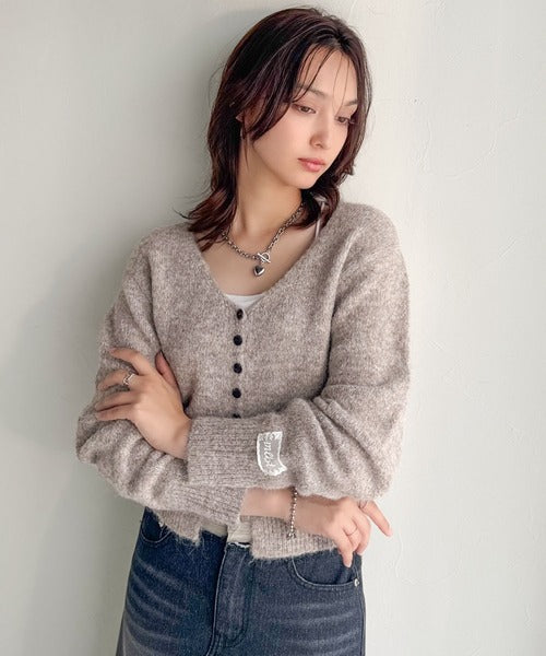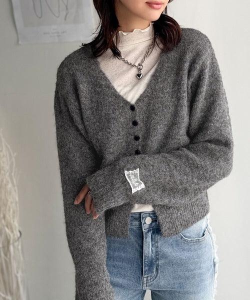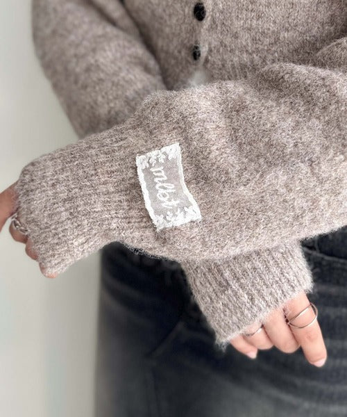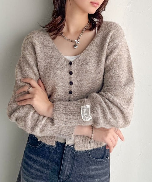 【mily bilet】愛らしさ100%。レースネーム付きくるみボタンミックスニットカーディガン(長袖) mi1329058