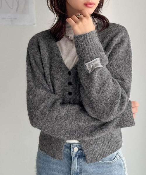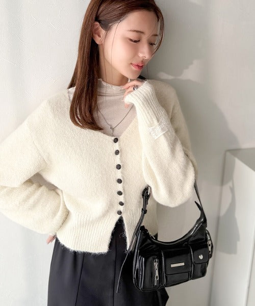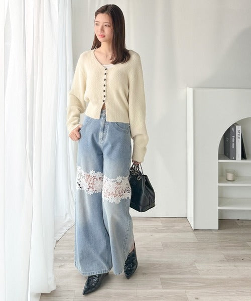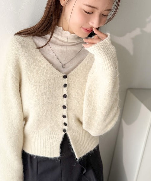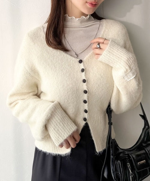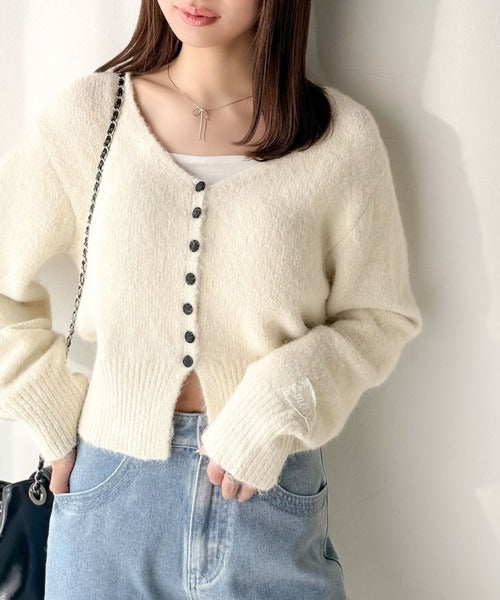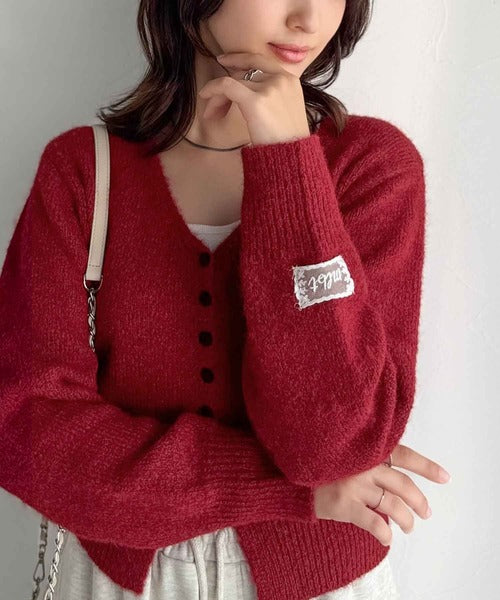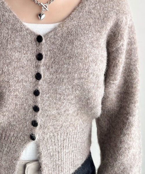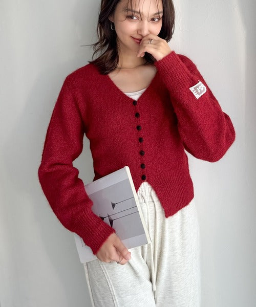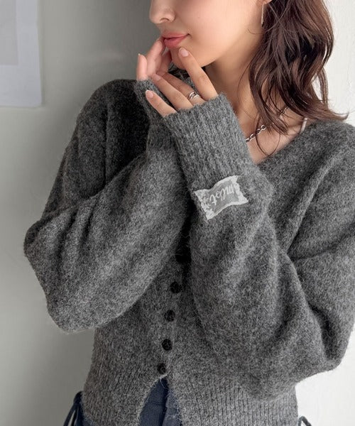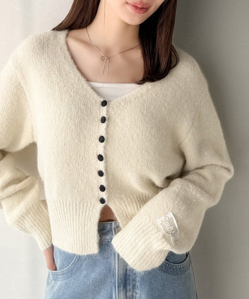 【mily bilet】愛らしさ100%。レースネーム付きくるみボタンミックスニットカーディガン(長袖) mi1329058