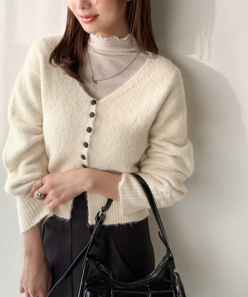 高見えするミックスカラー糸を使用したニットカーディガン。