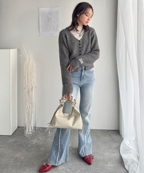 デニムやフレアパンツなどに合わせたシンプルカジュアルスタイルから