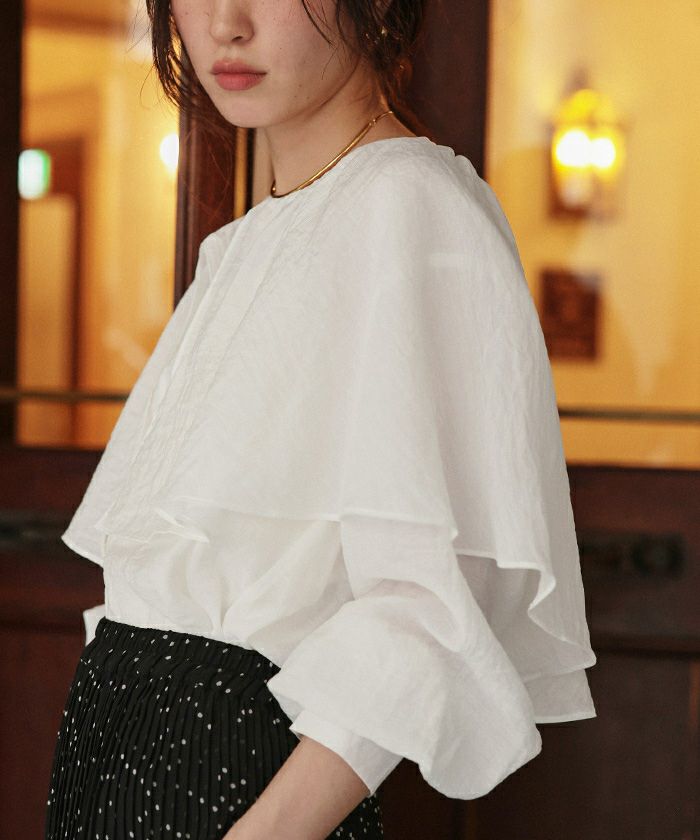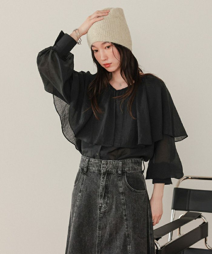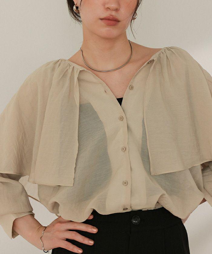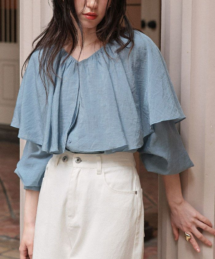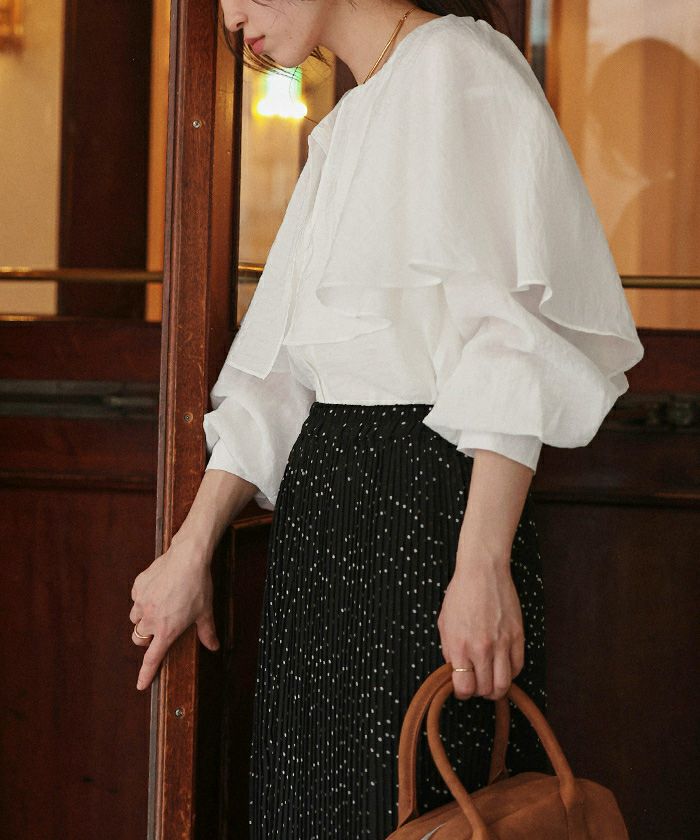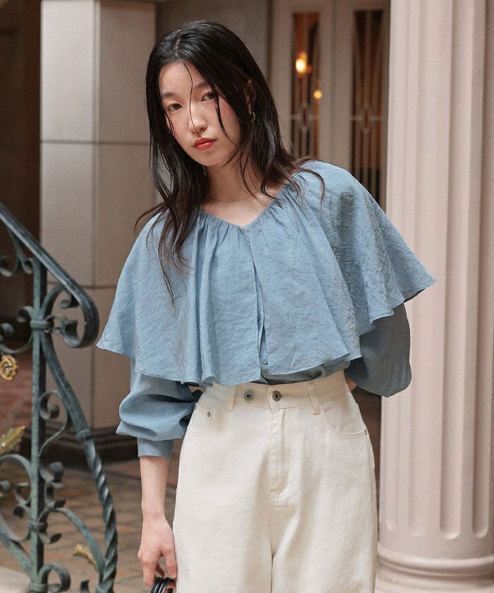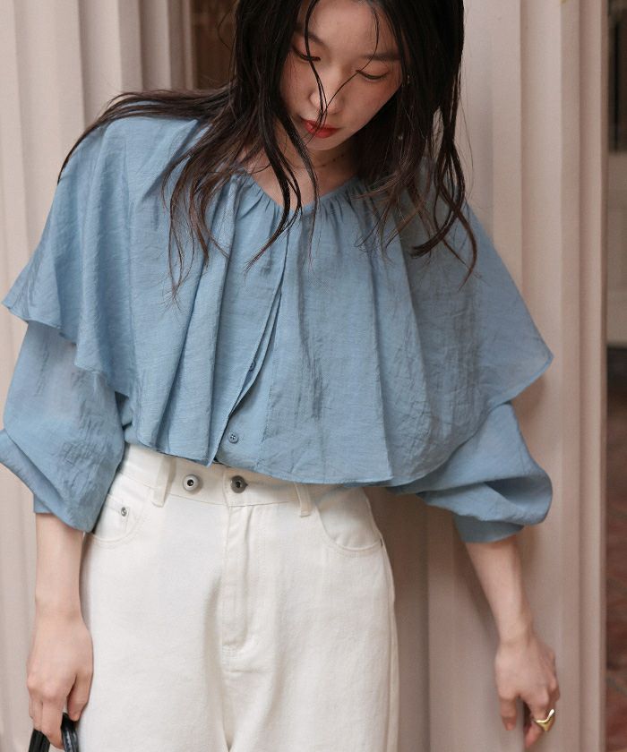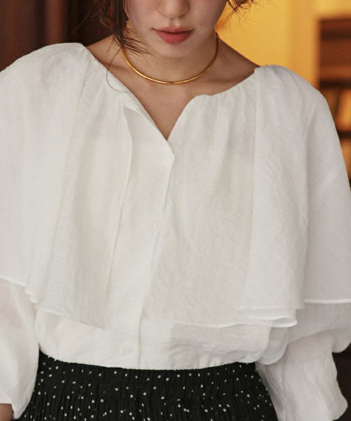 ・落ち感のあるビッグフリルカラーが目を惹くブラウス