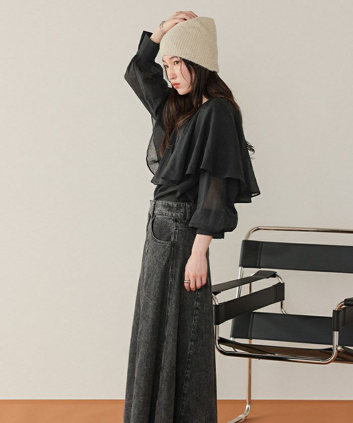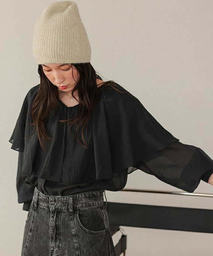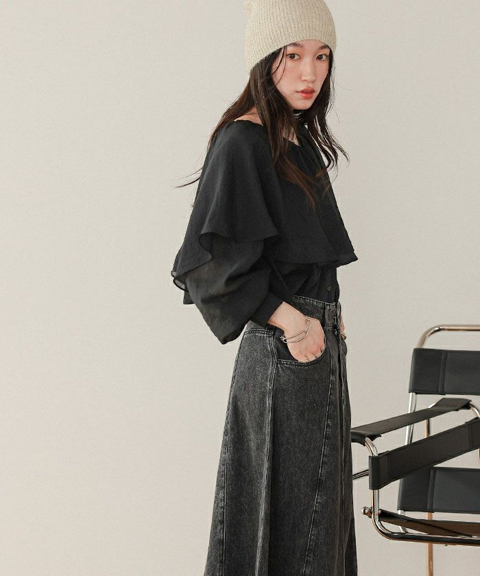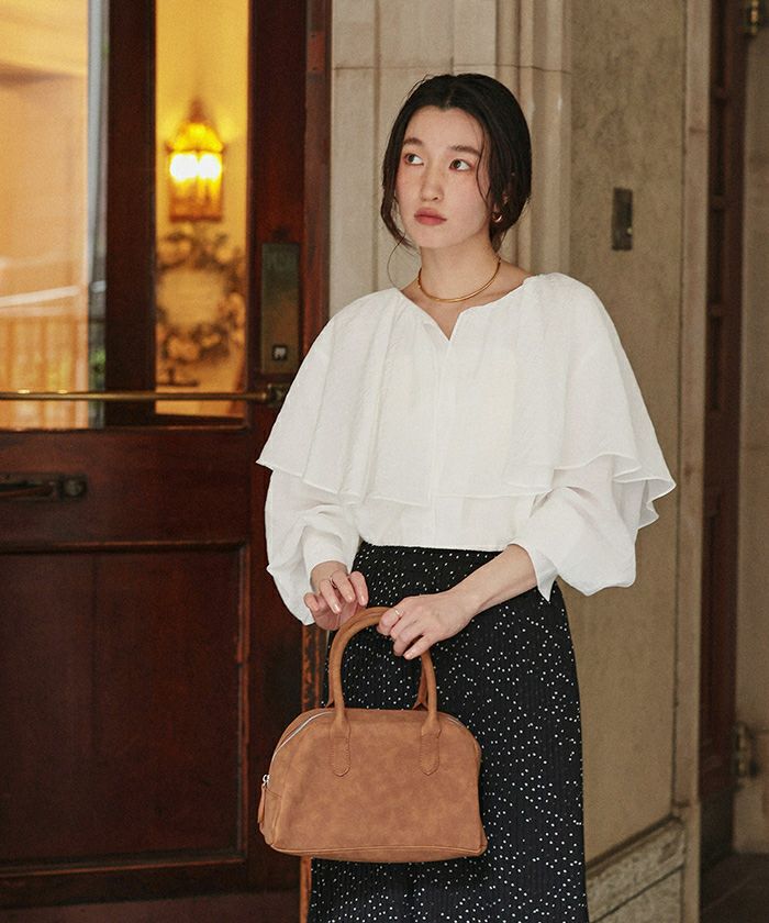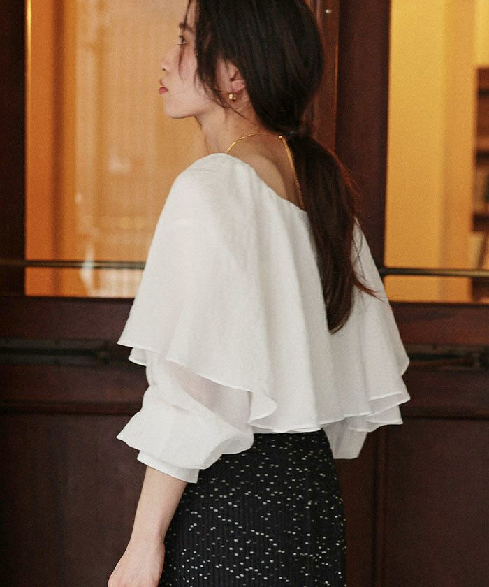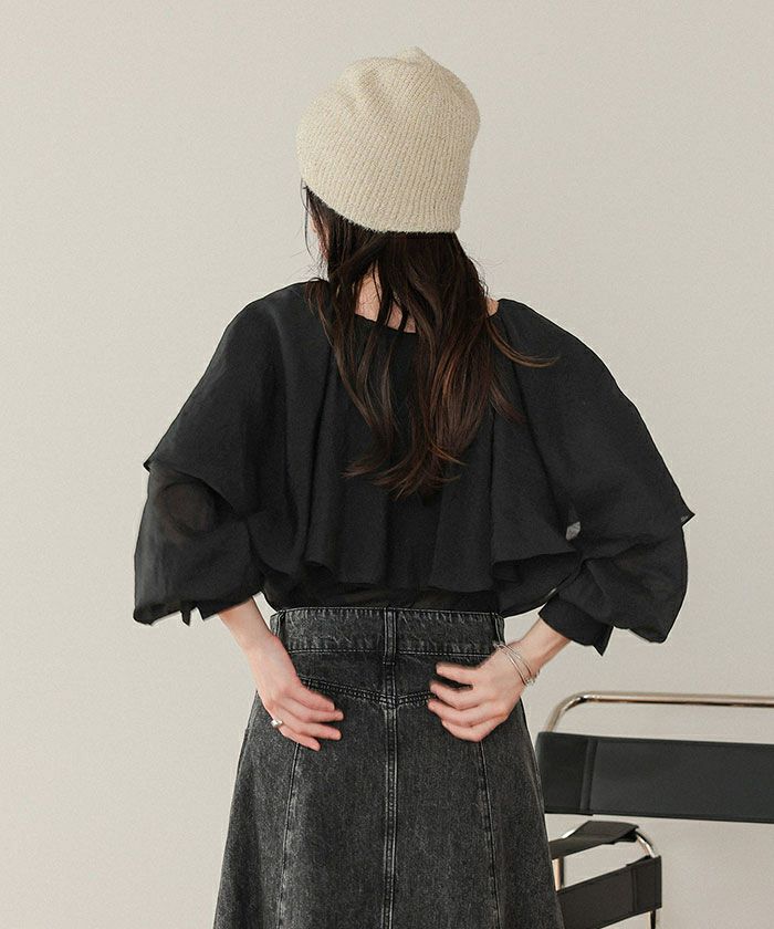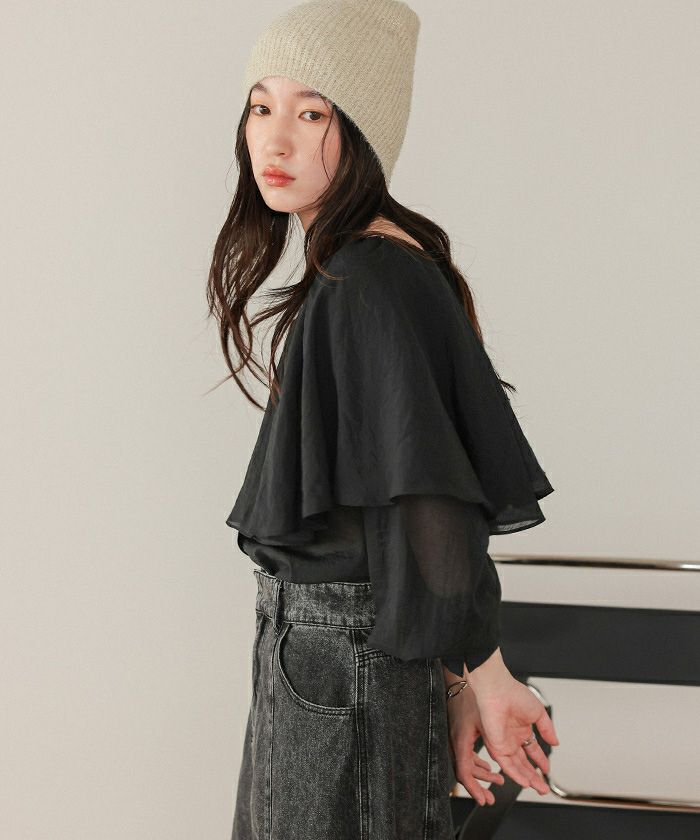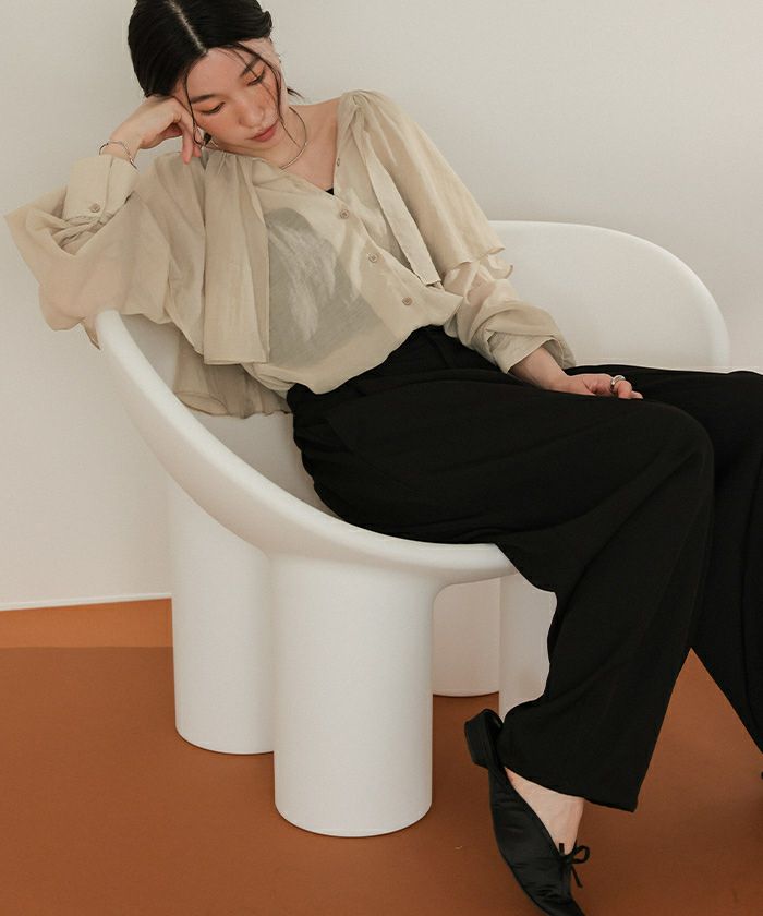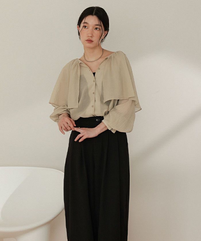 ・落ち感のあるビッグフリルカラーが目を惹くブラウス