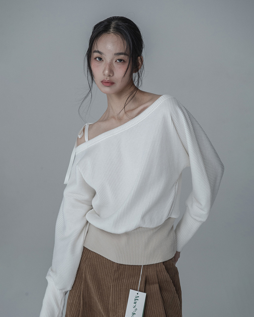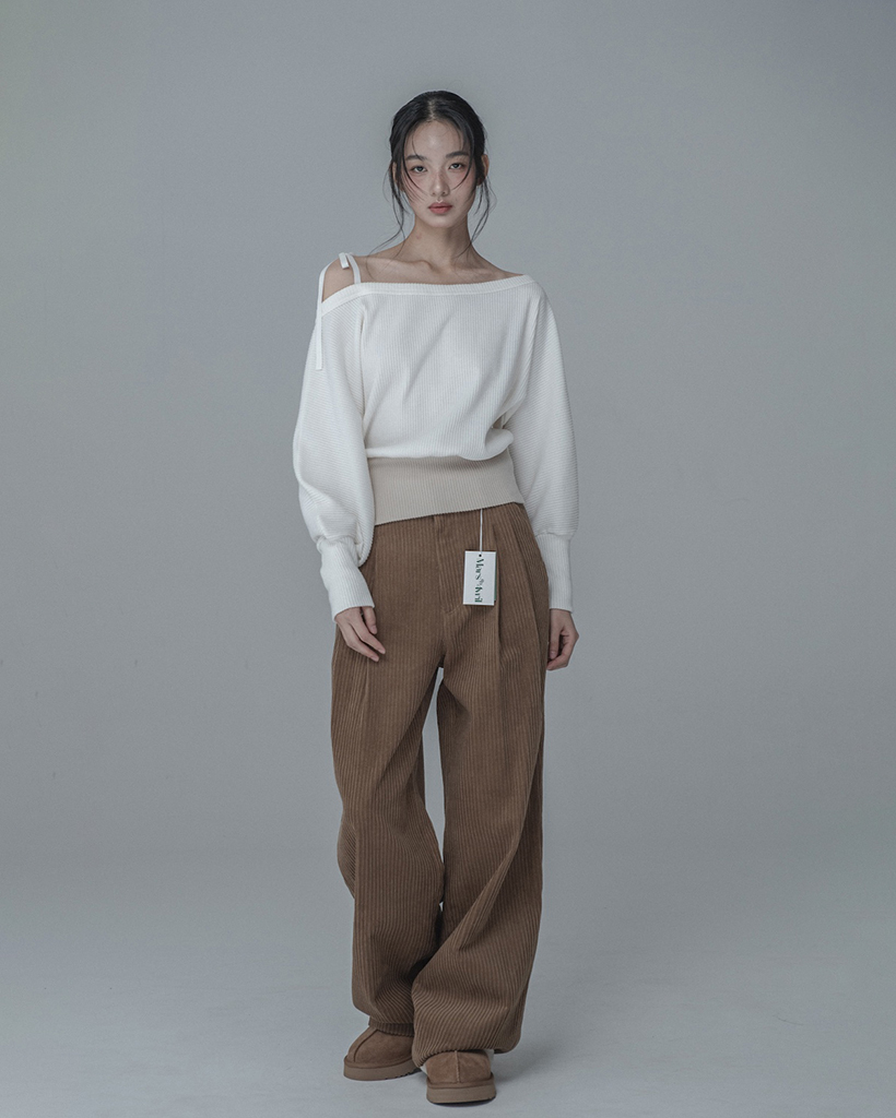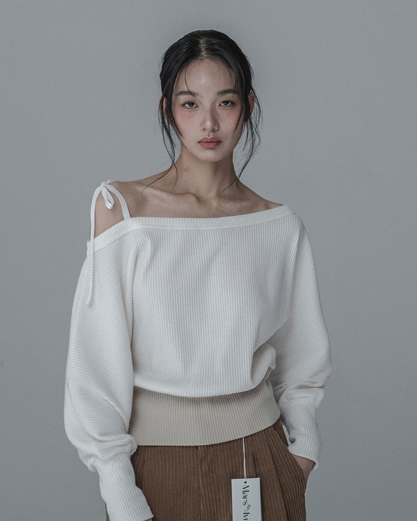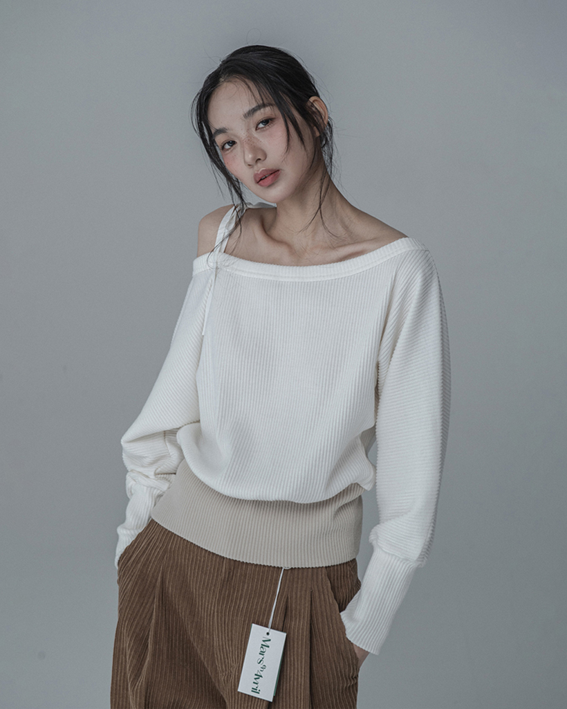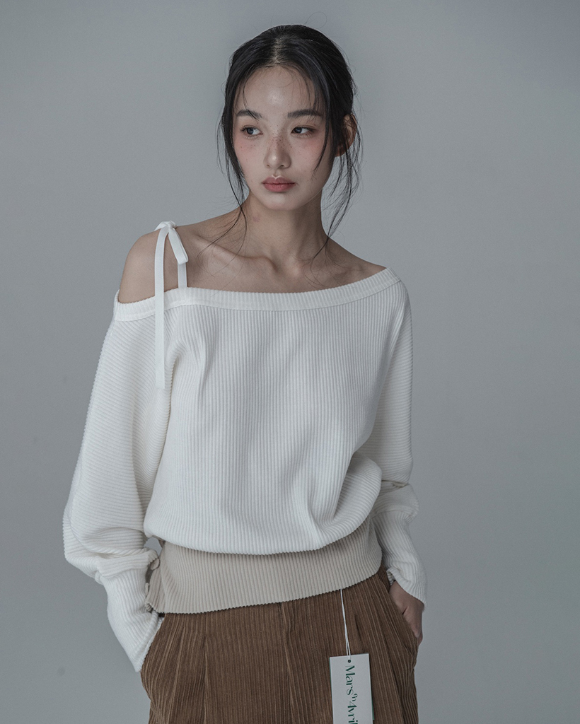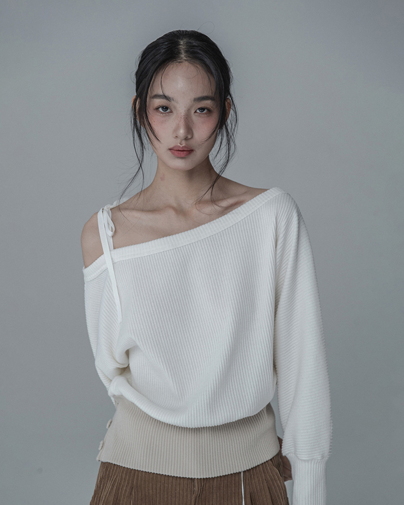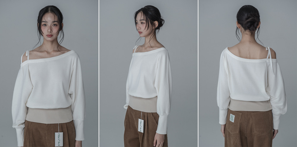 OFF-SHOULDER SIDE BUTTON KNIT_IVORY BEIGE