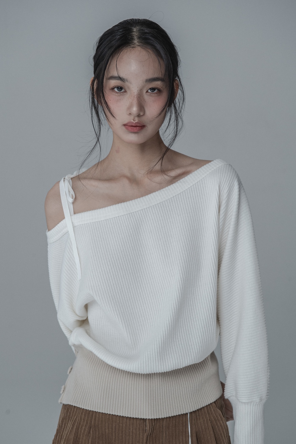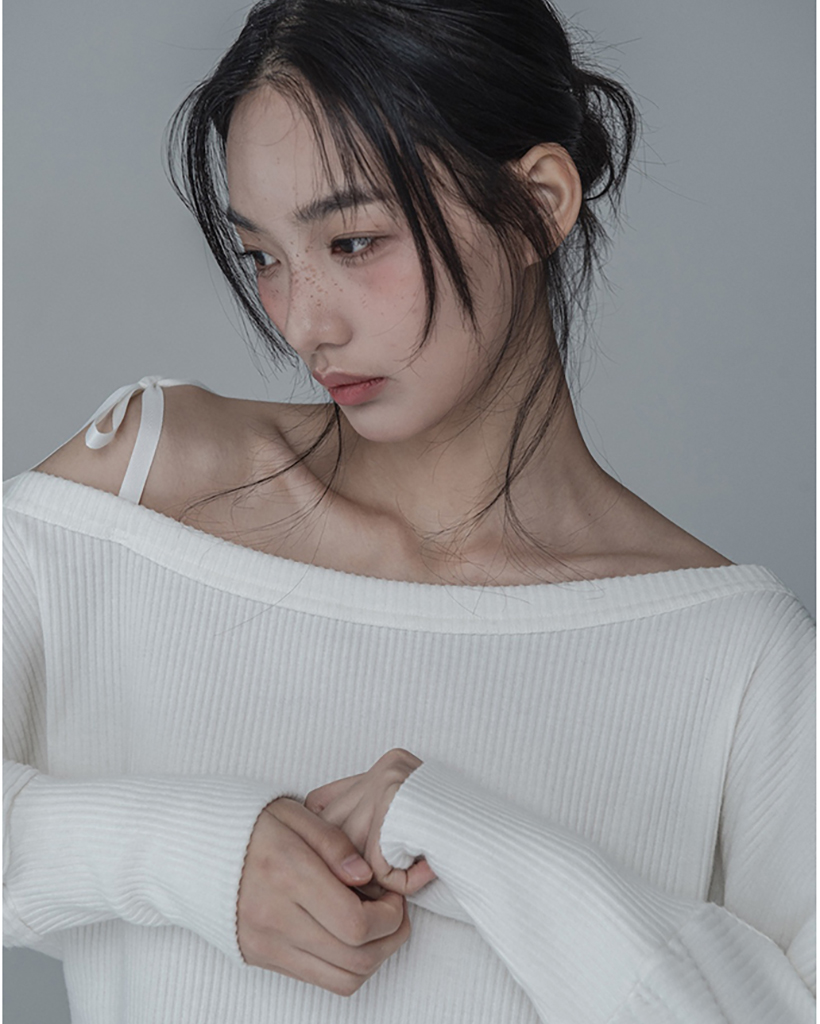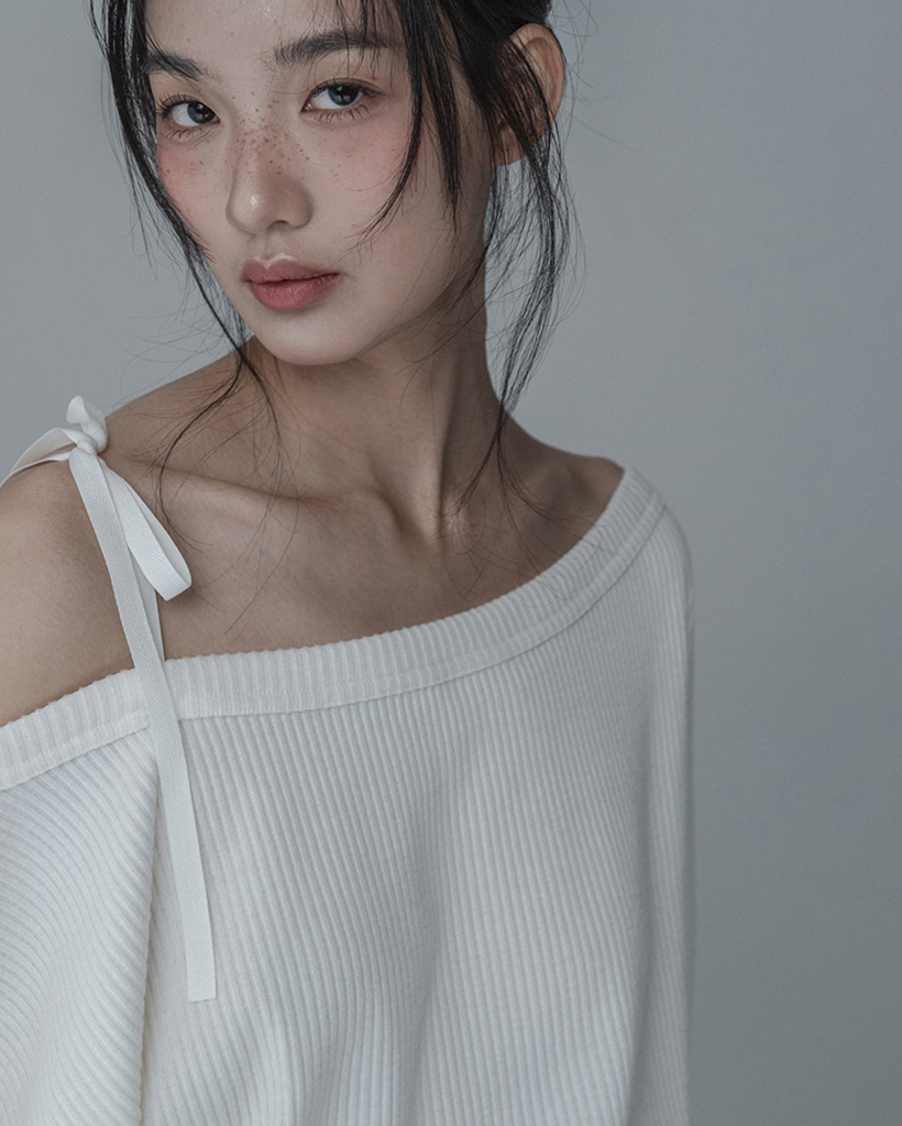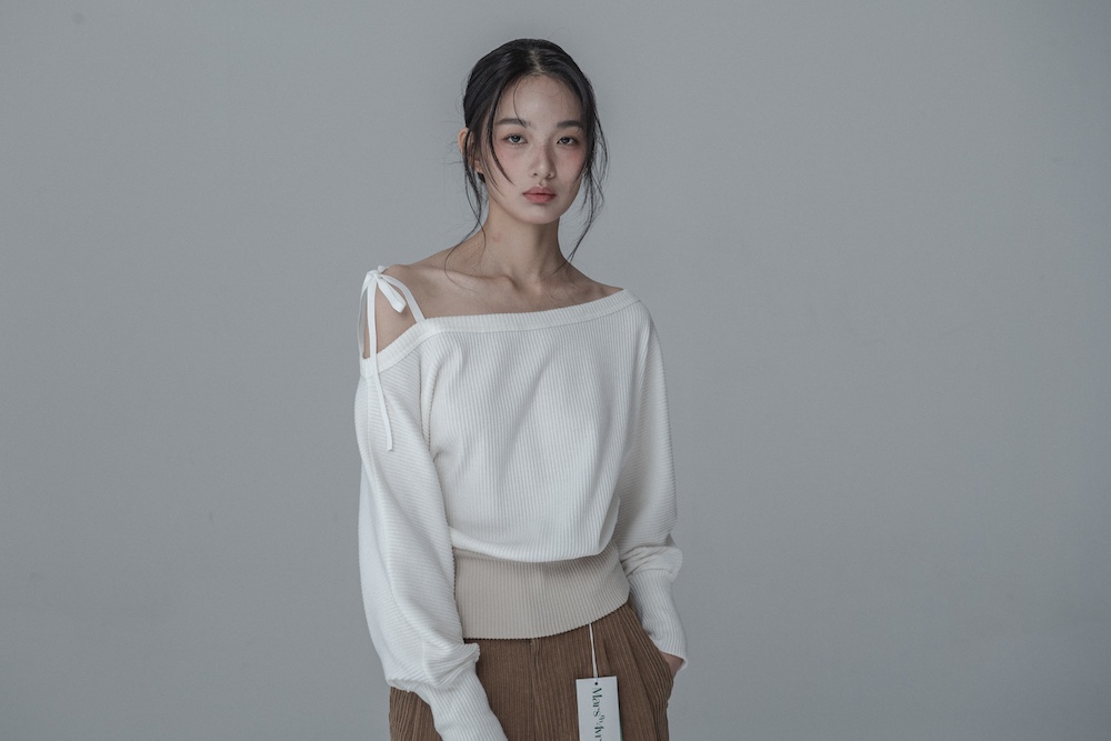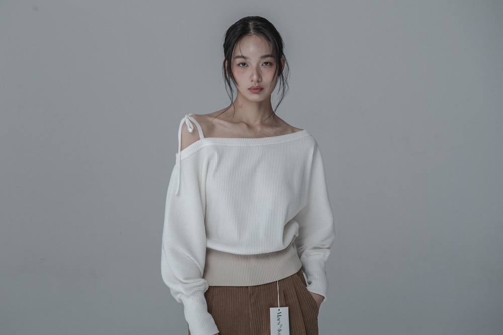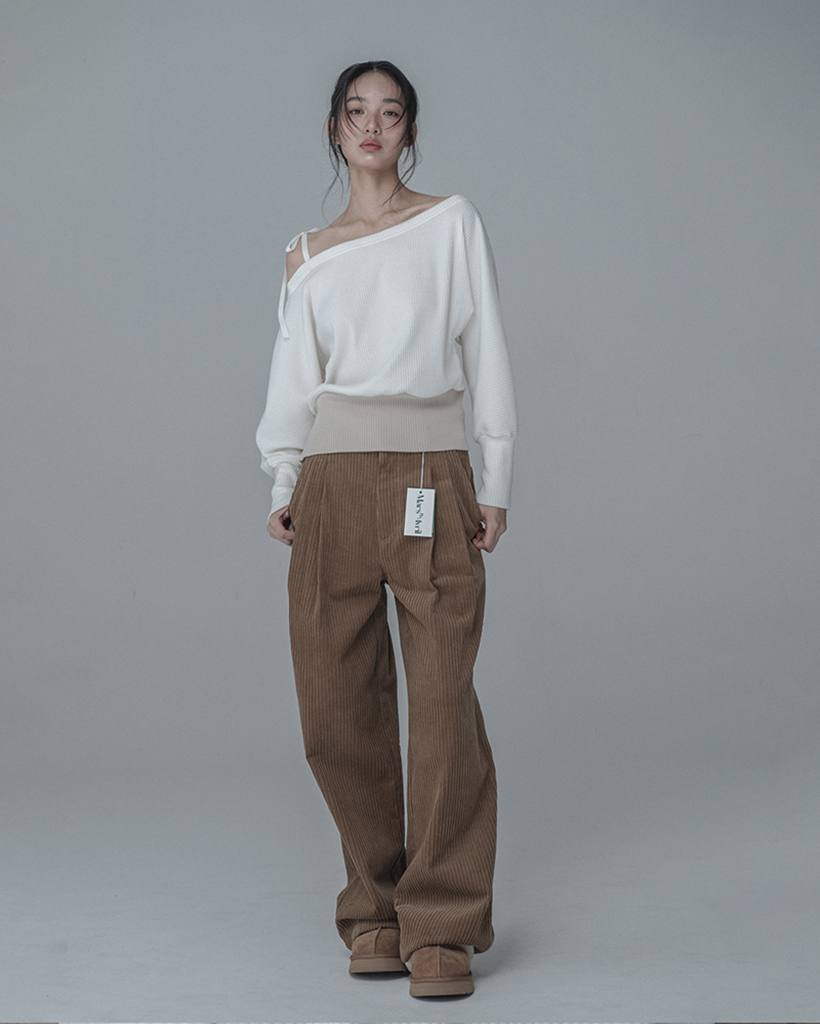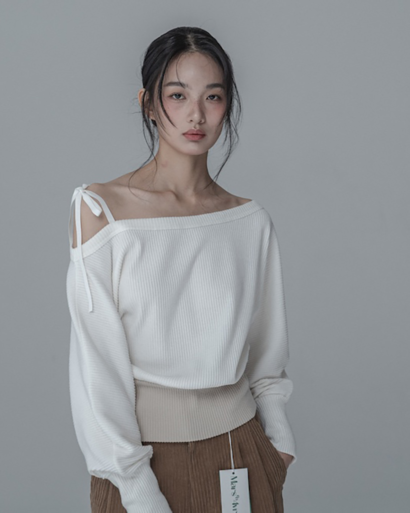 OFF-SHOULDER SIDE BUTTON KNIT_IVORY BEIGE