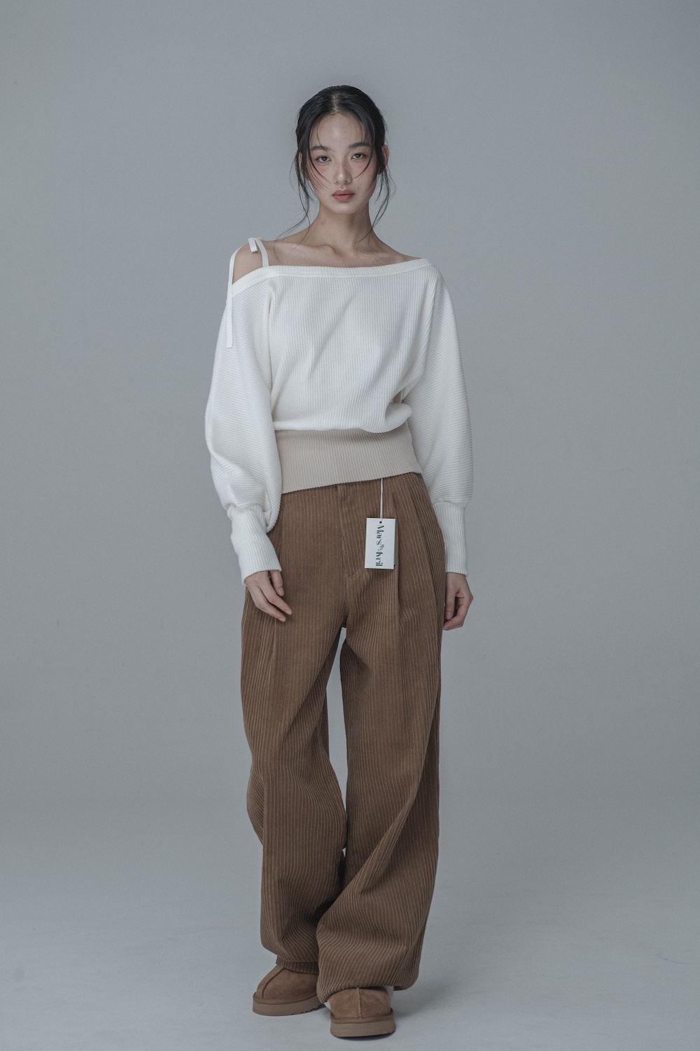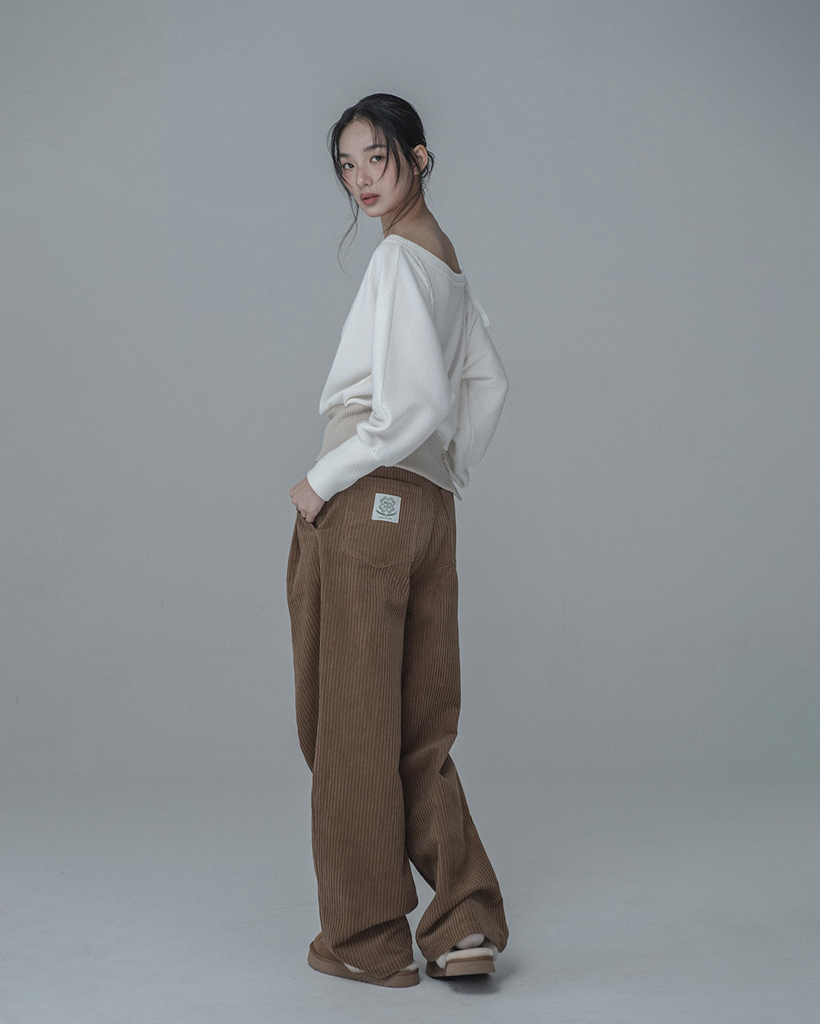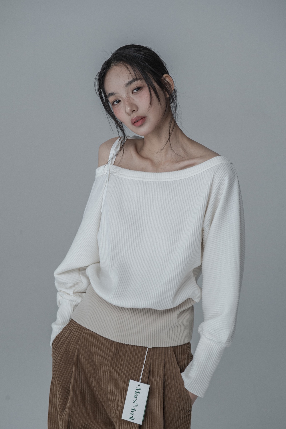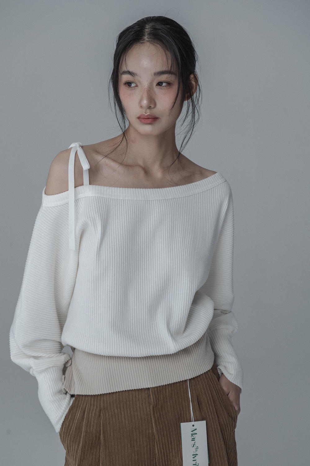 OFF-SHOULDER SIDE BUTTON KNIT_IVORY BEIGE