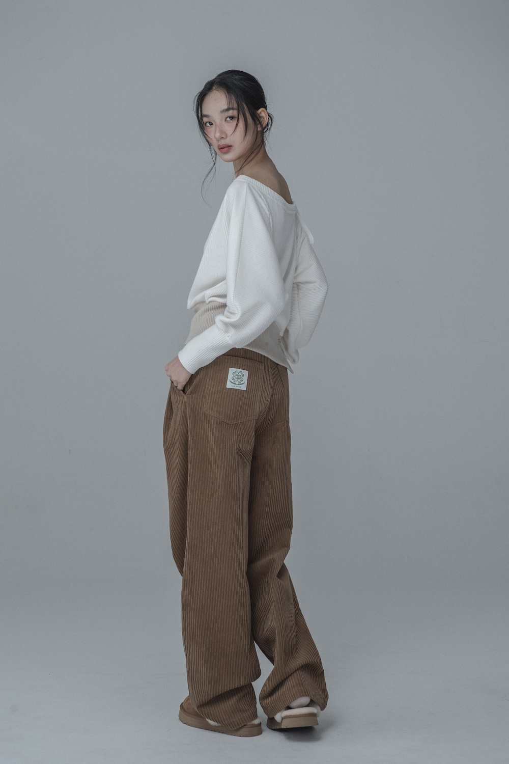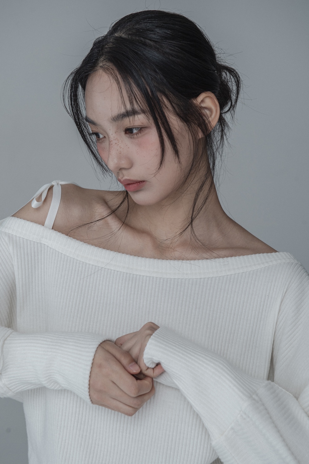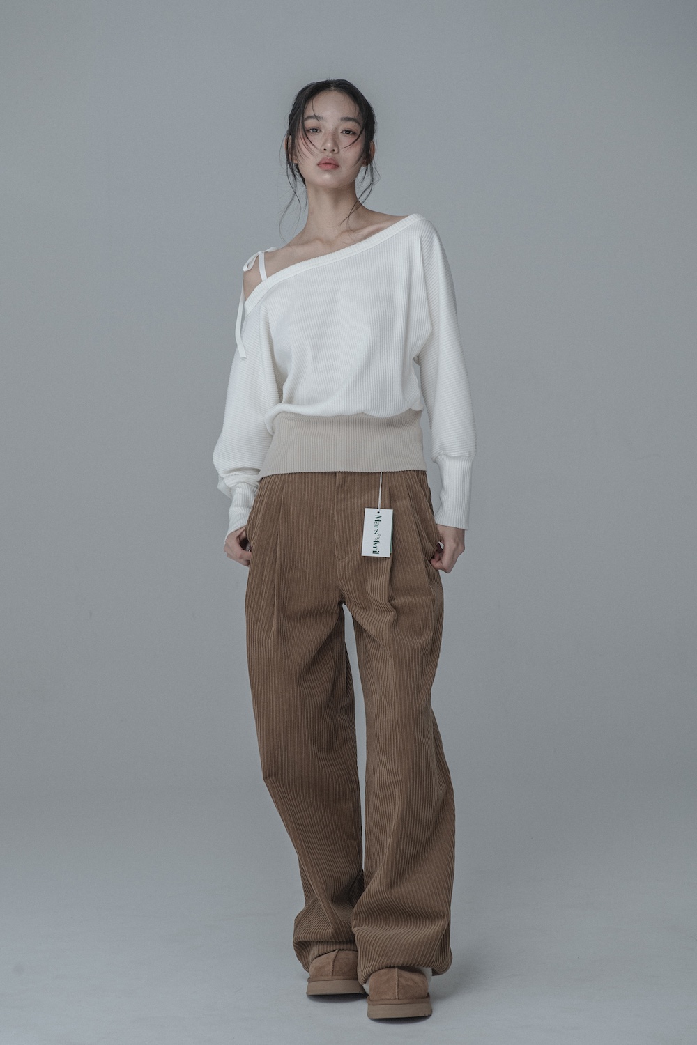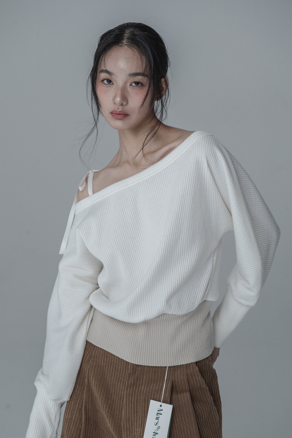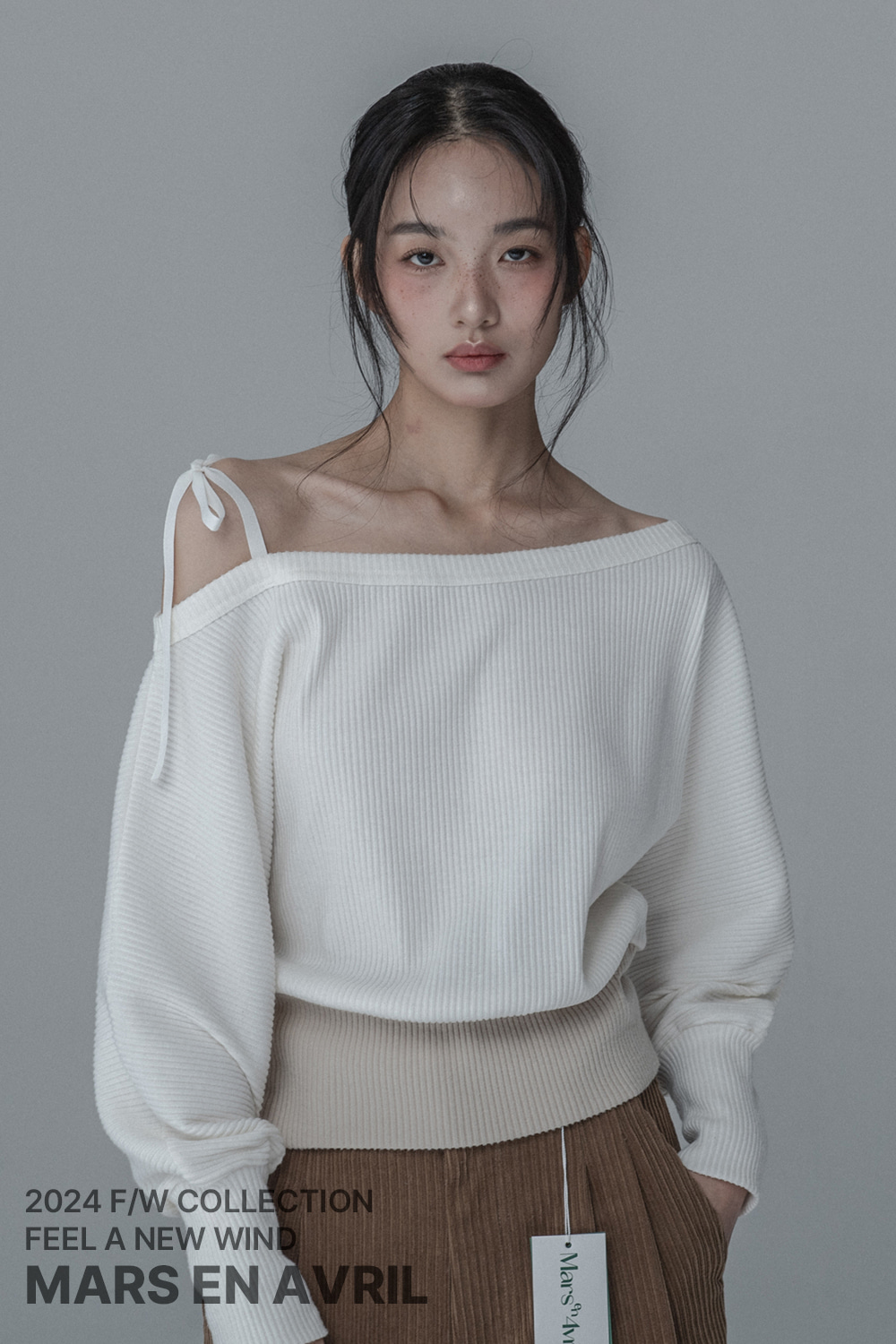 OFF-SHOULDER SIDE BUTTON KNIT_IVORY BEIGE