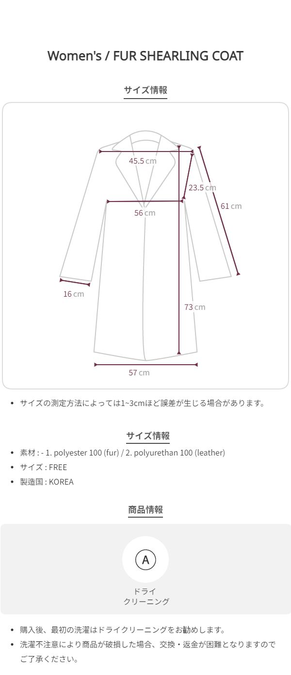 - ドライクリーニング推奨 / 水洗い、乾燥機の使用禁止.