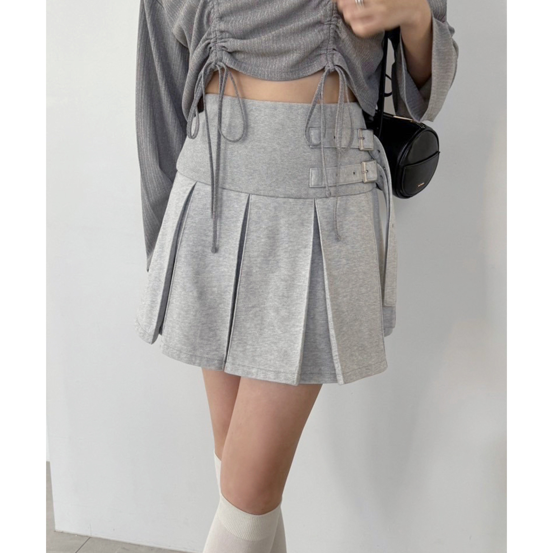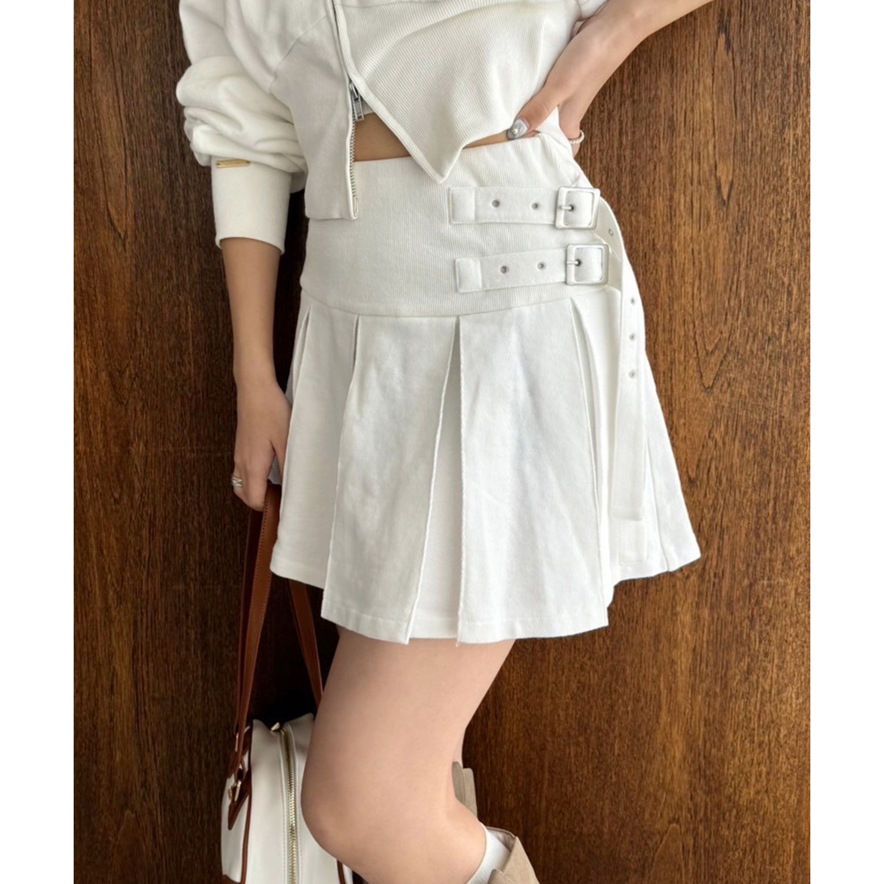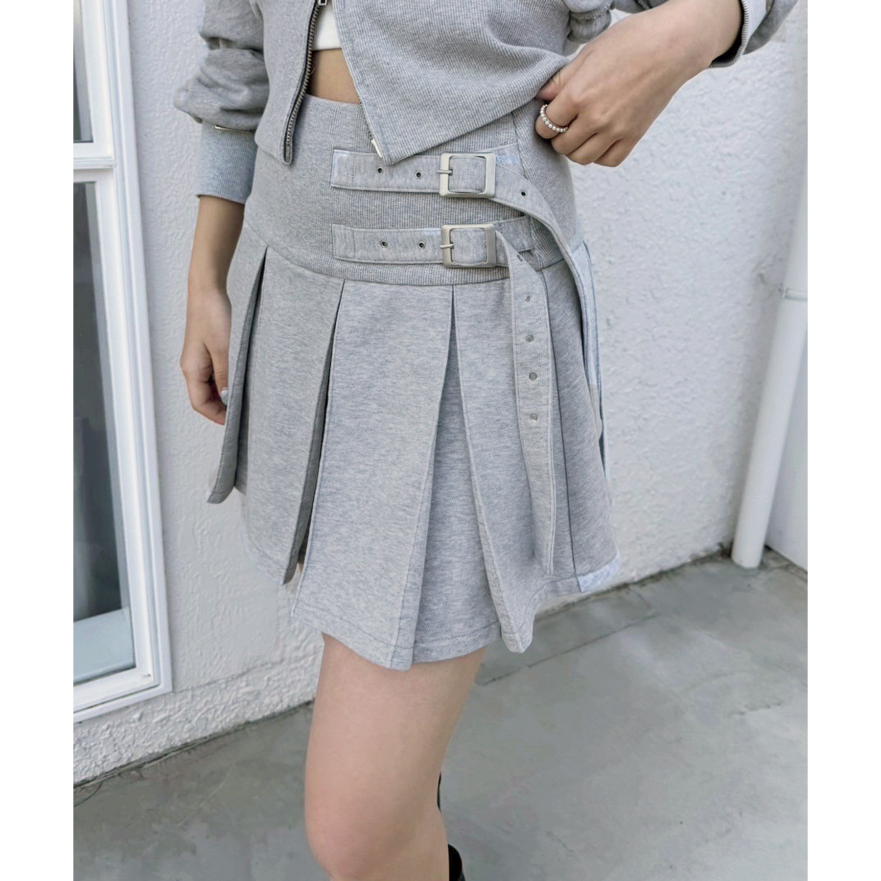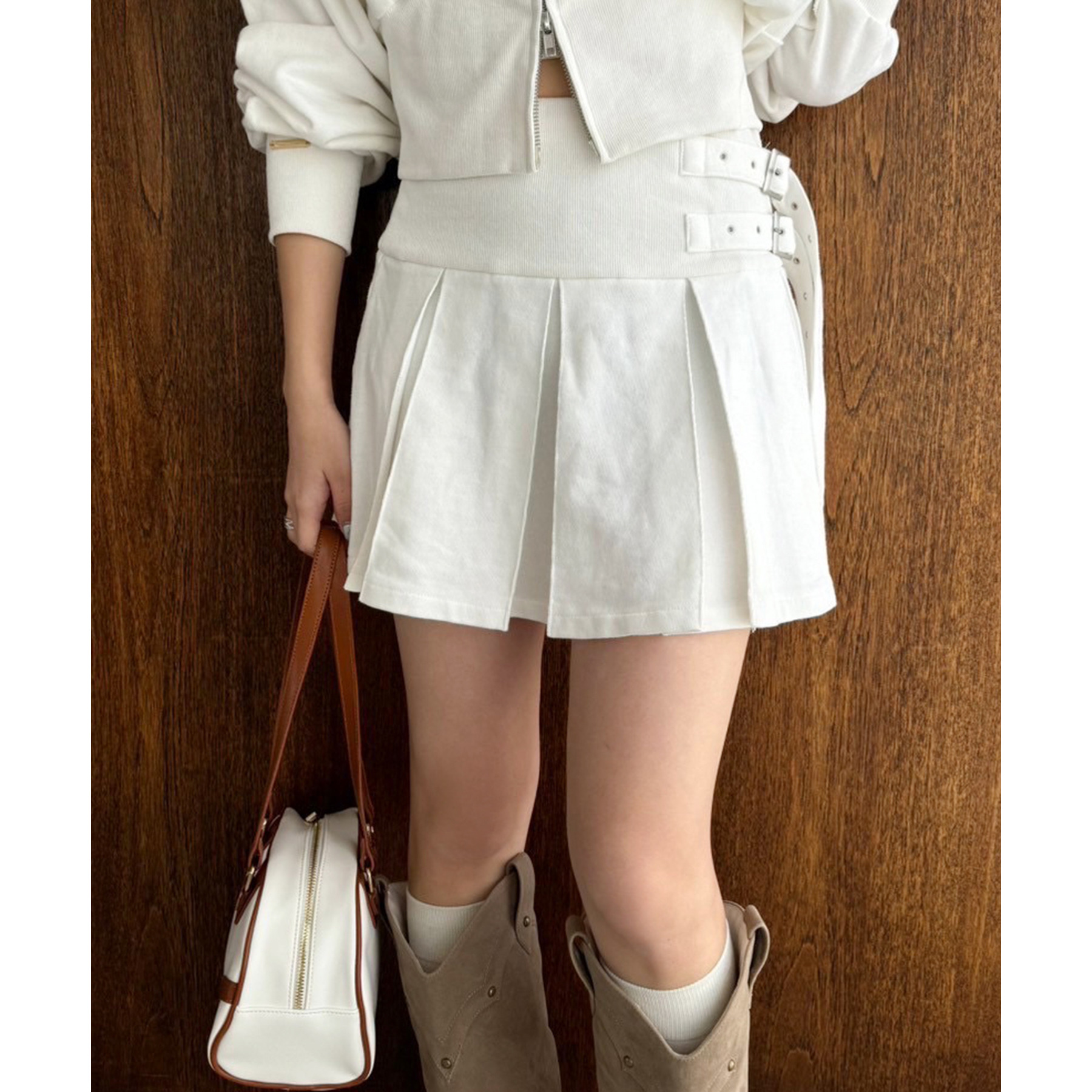 【セットアップ可能】ベルト付きプリーツミニスカート