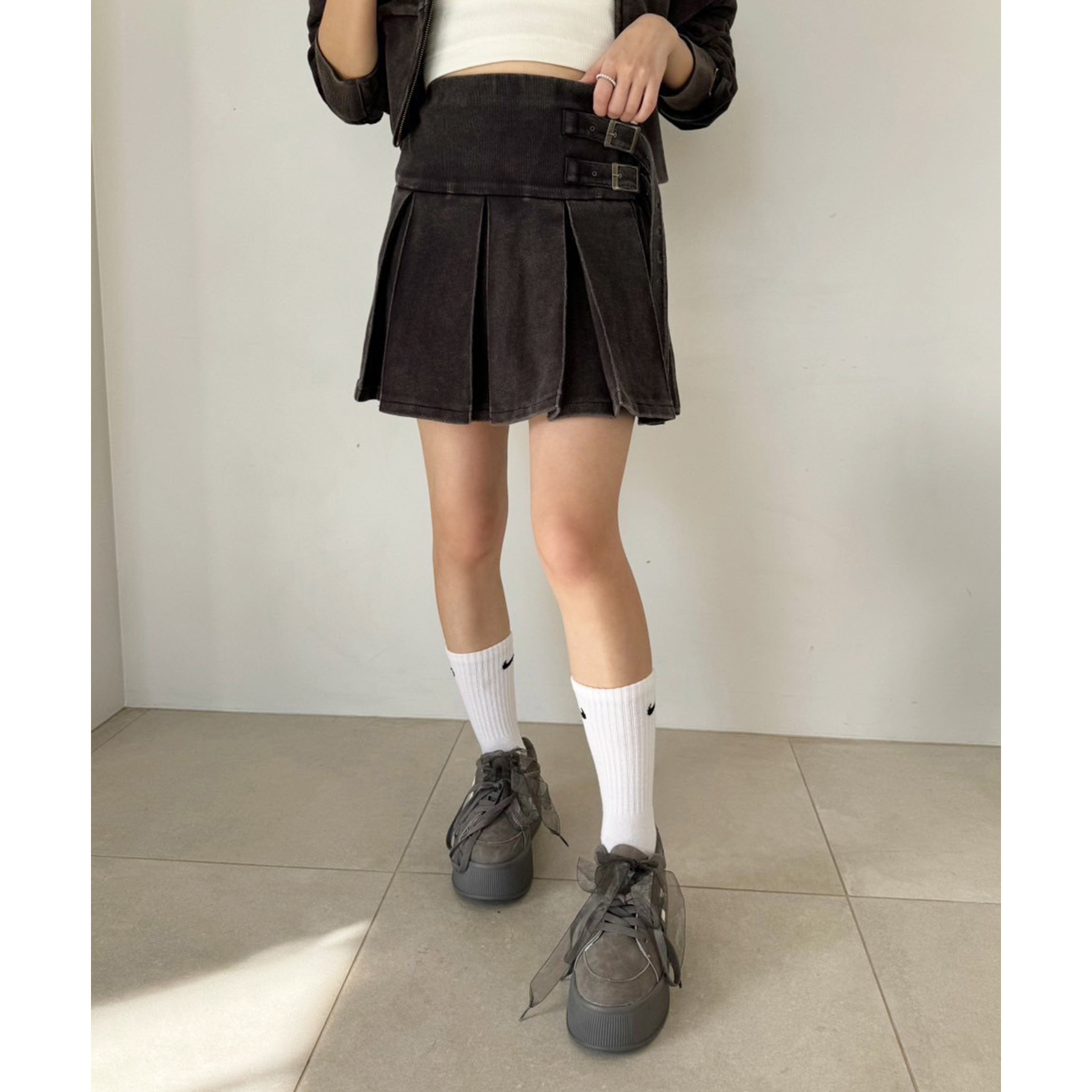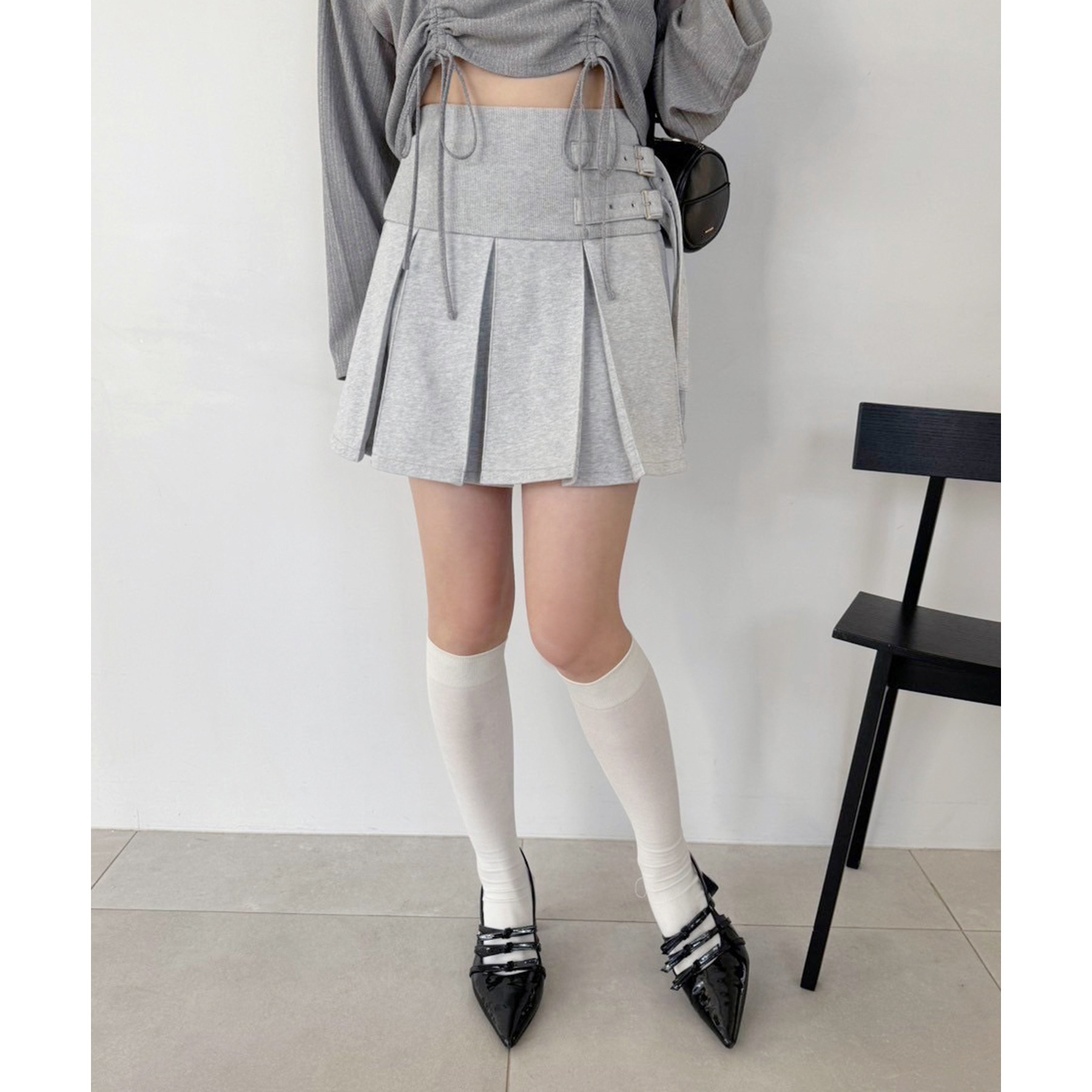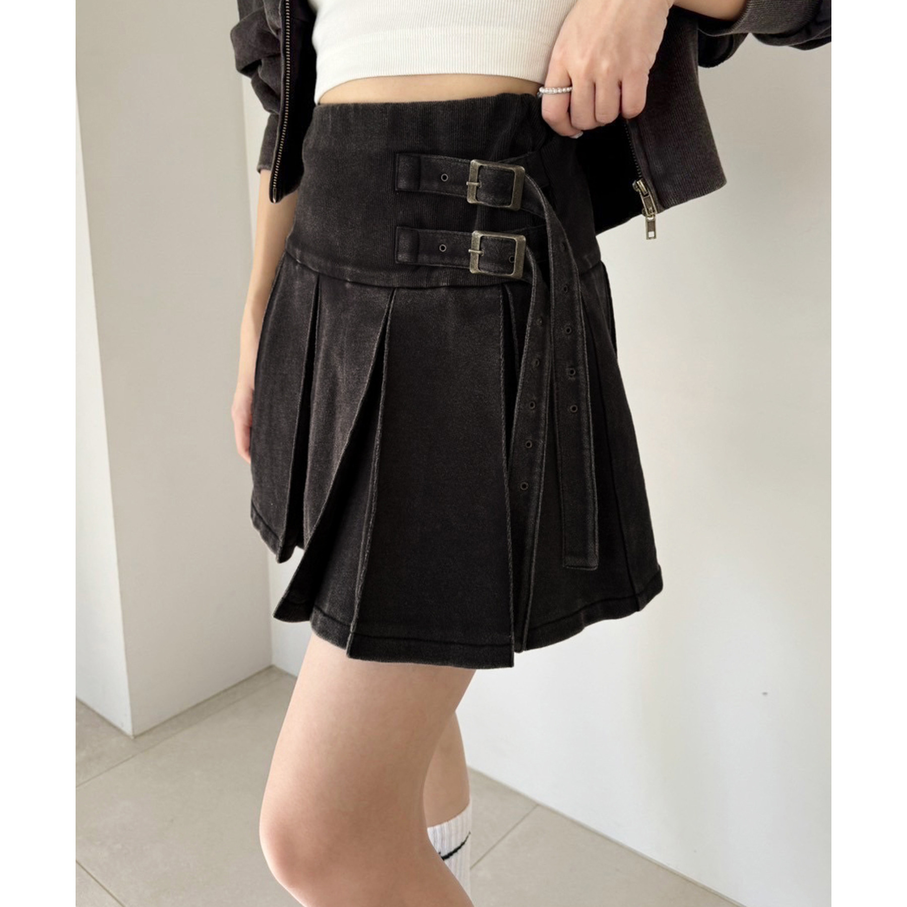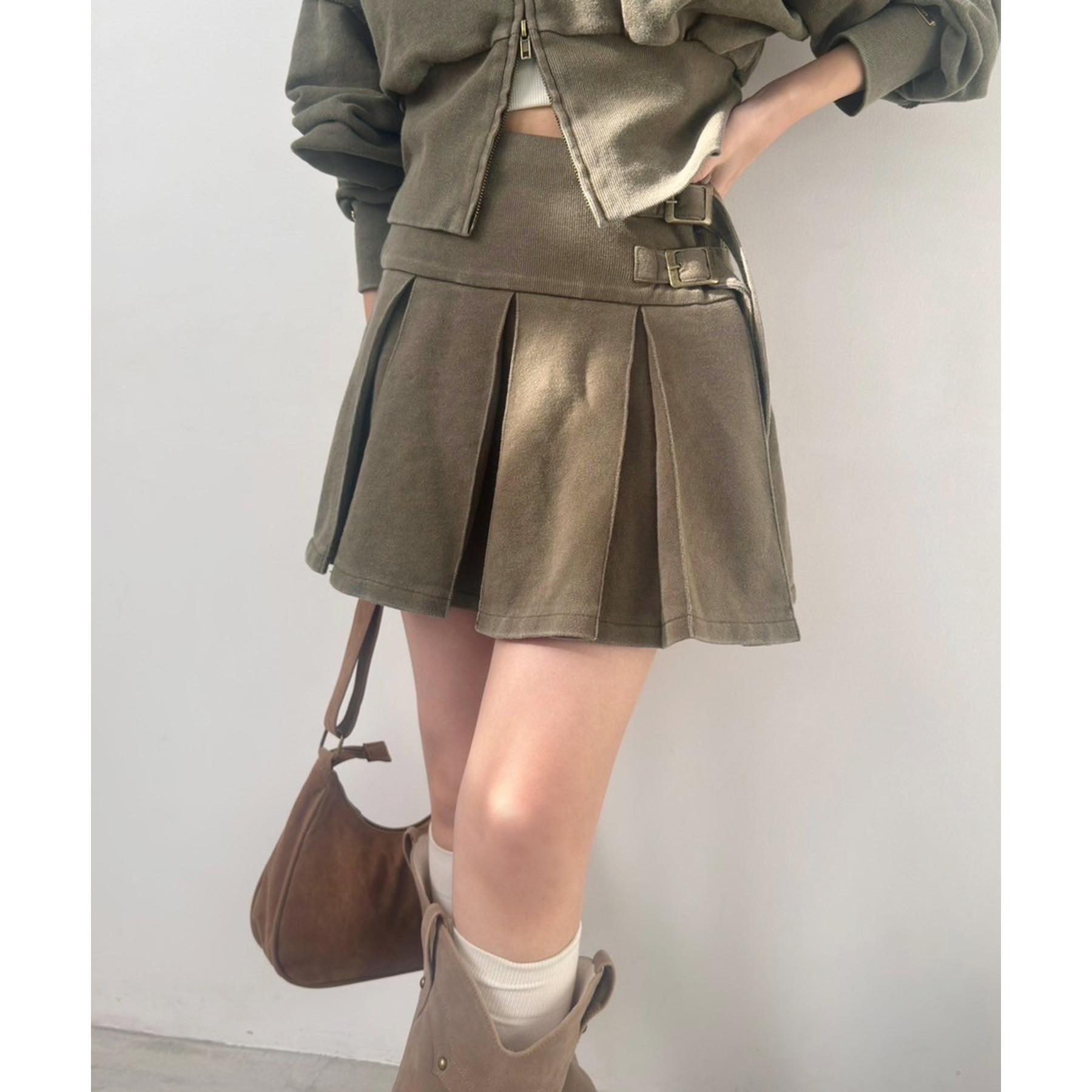 【セットアップ可能】ベルト付きプリーツミニスカート