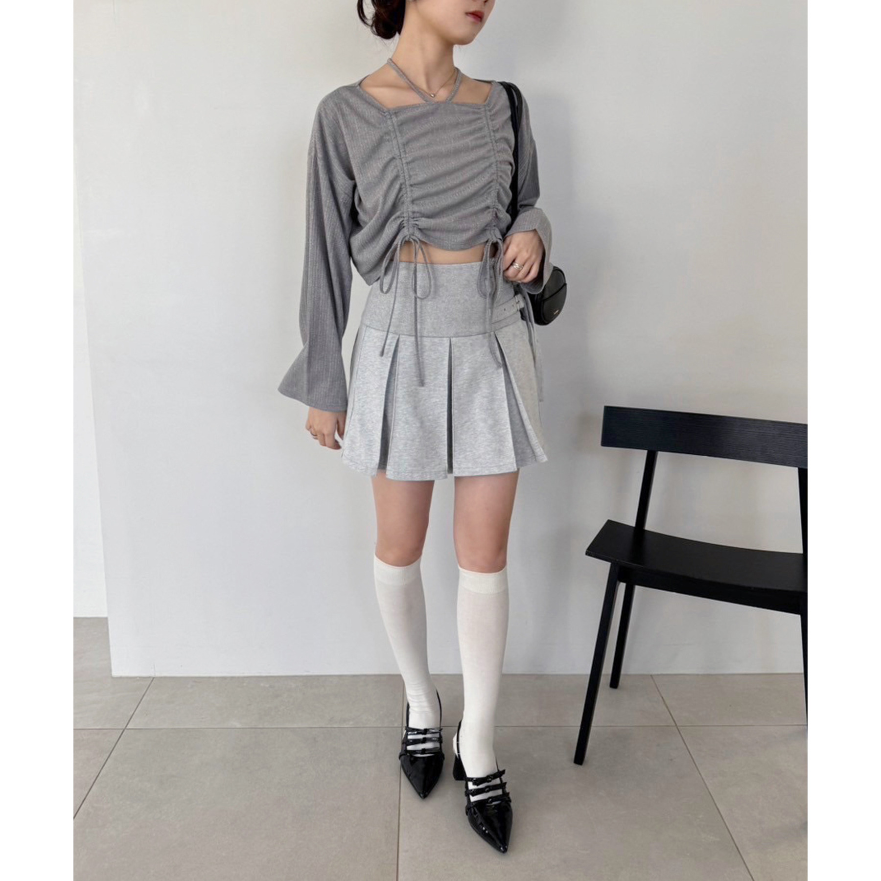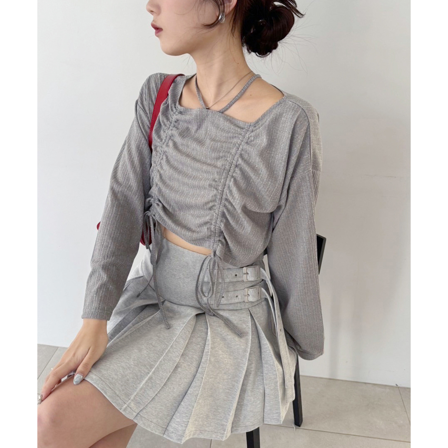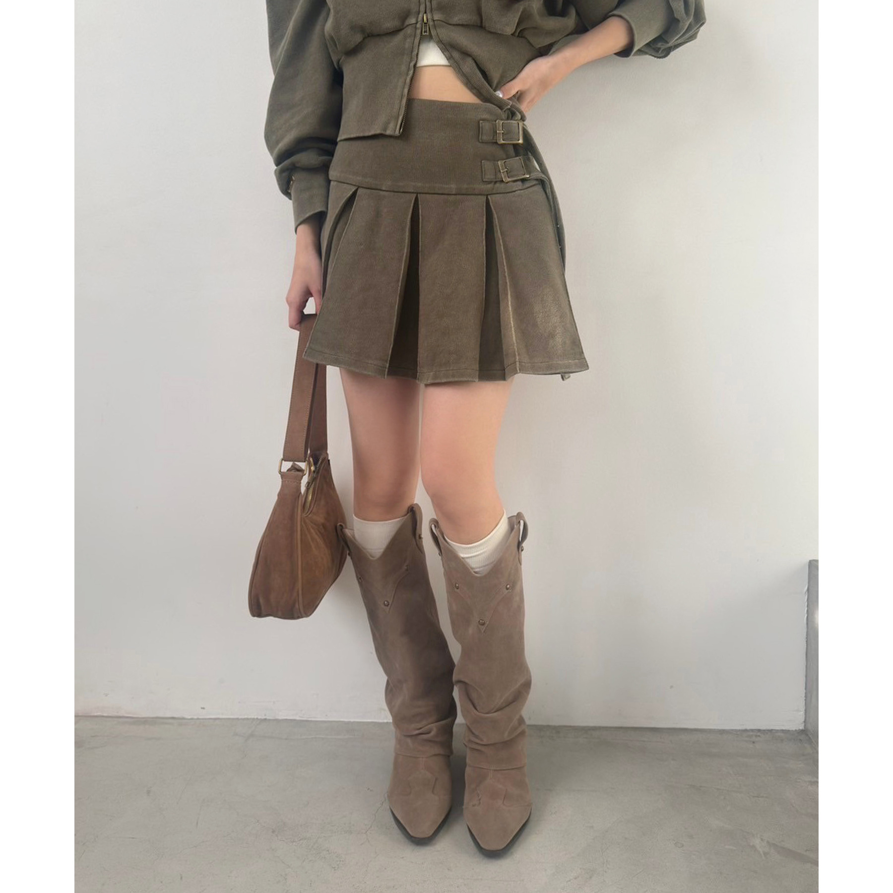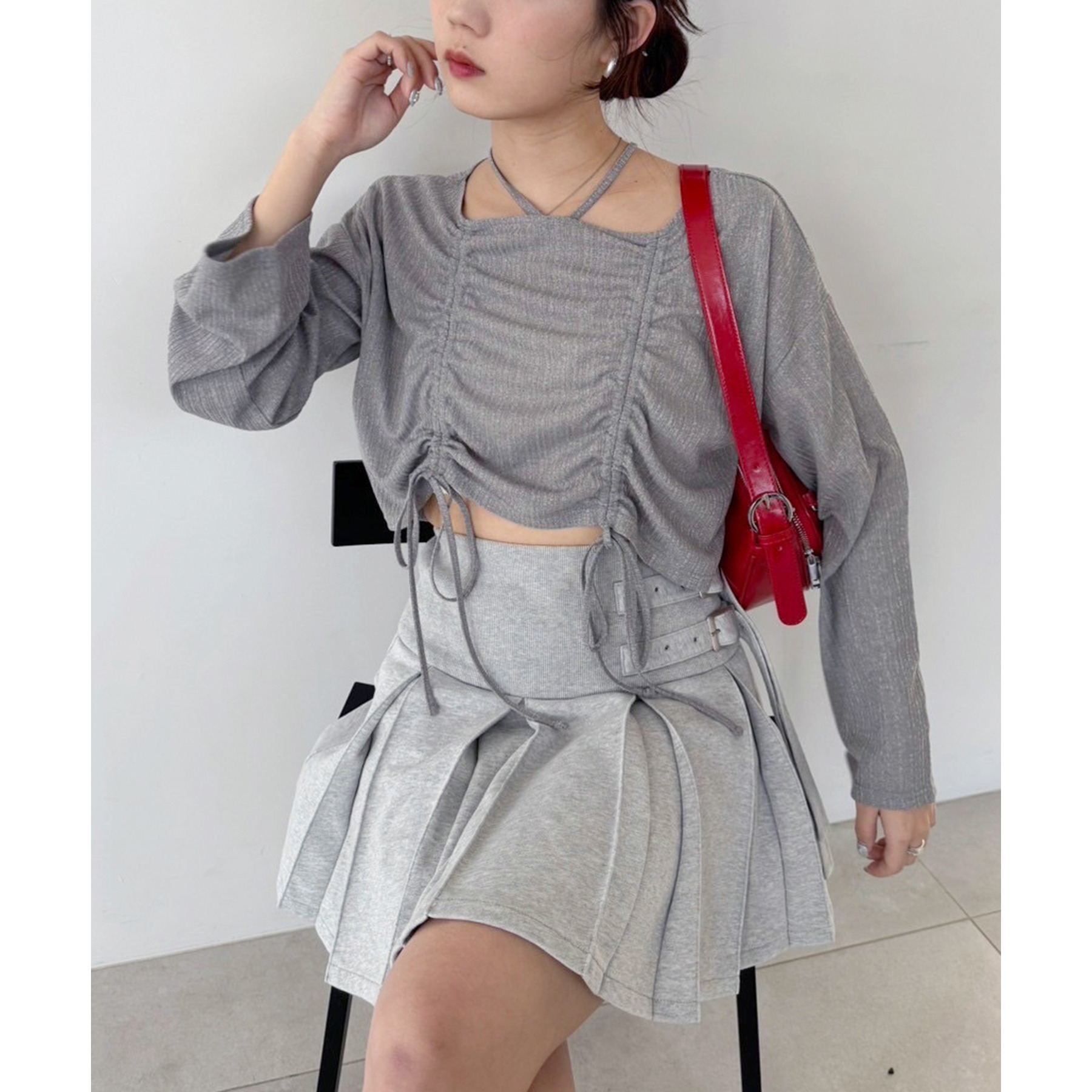 【セットアップ可能】ベルト付きプリーツミニスカート
