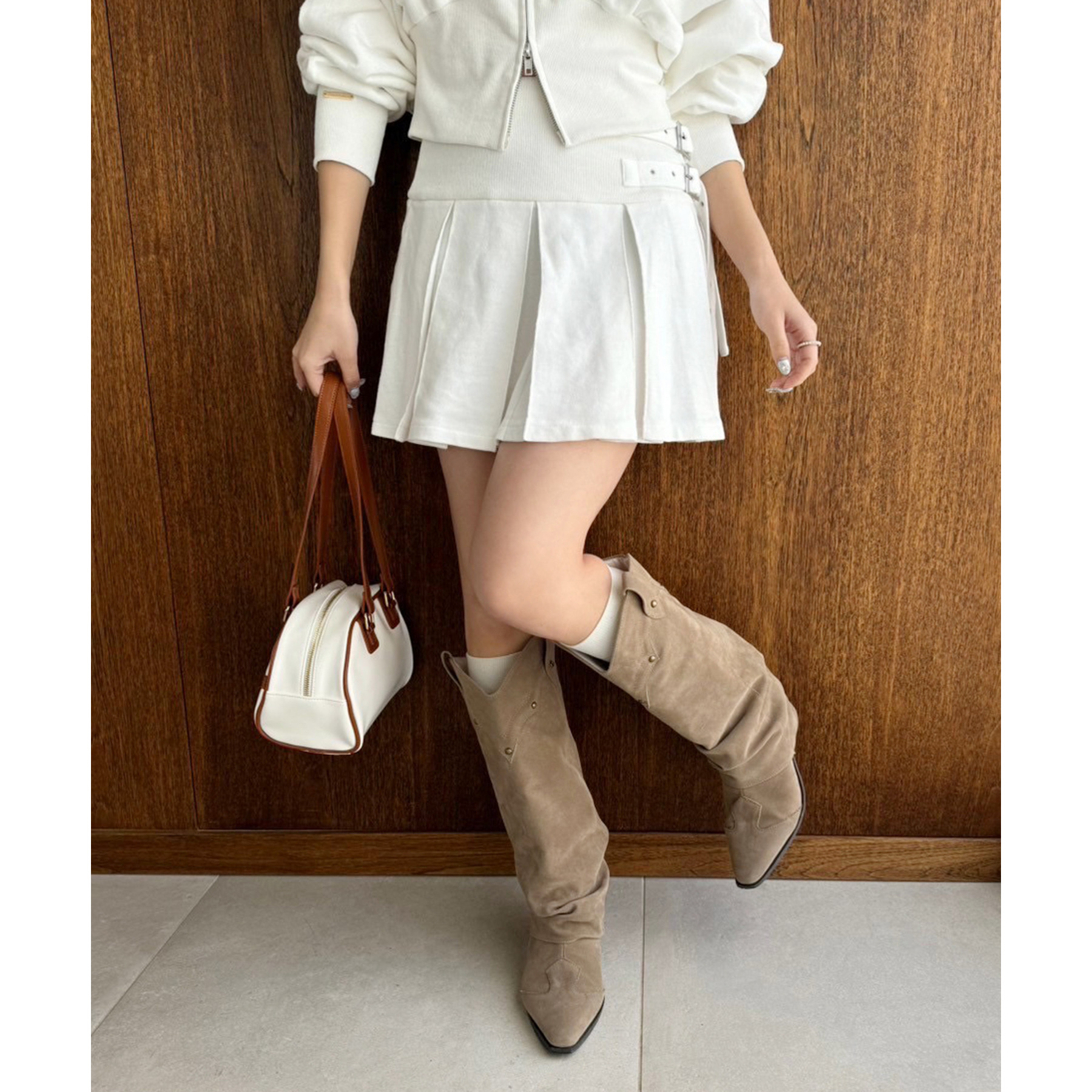 ミニ丈デザインなので、ロングブーツやサイドゴアブーツなど、