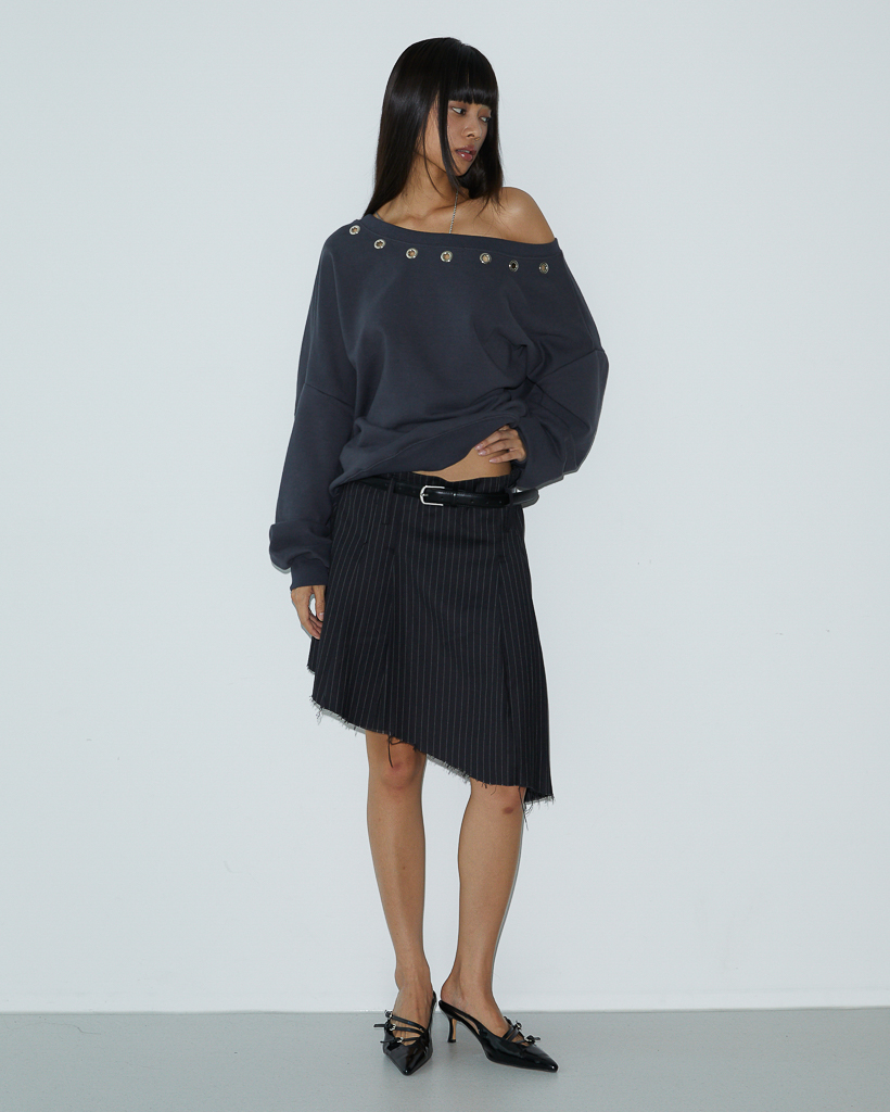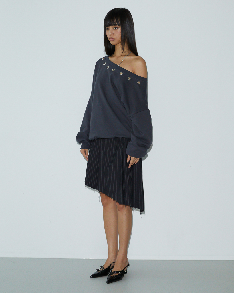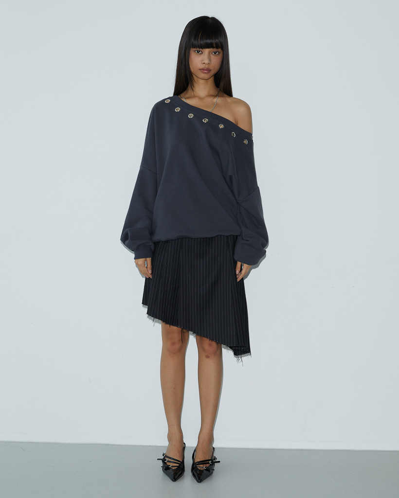 Unbalance Stud Sweatshirt (CHARCOAL)