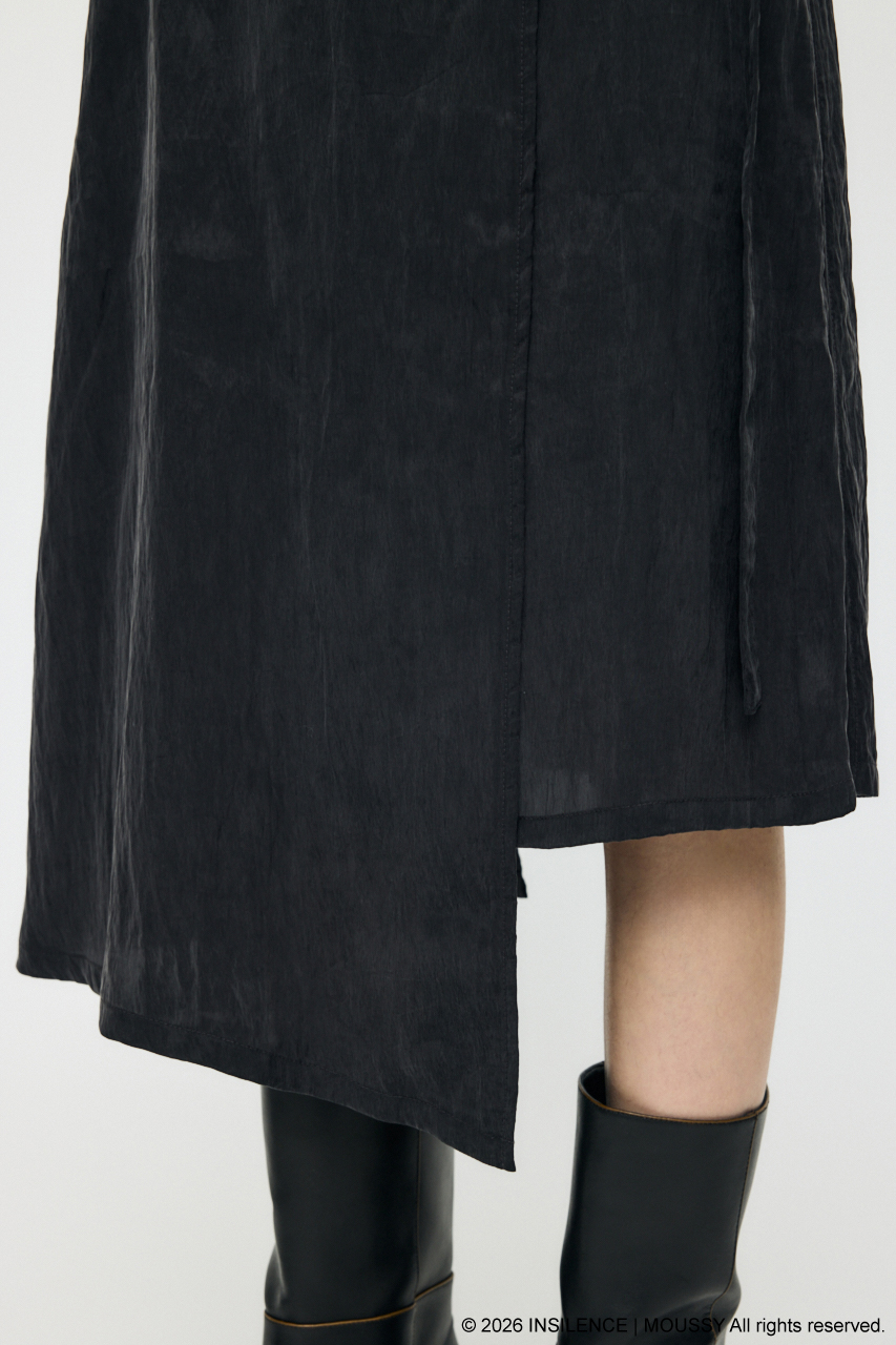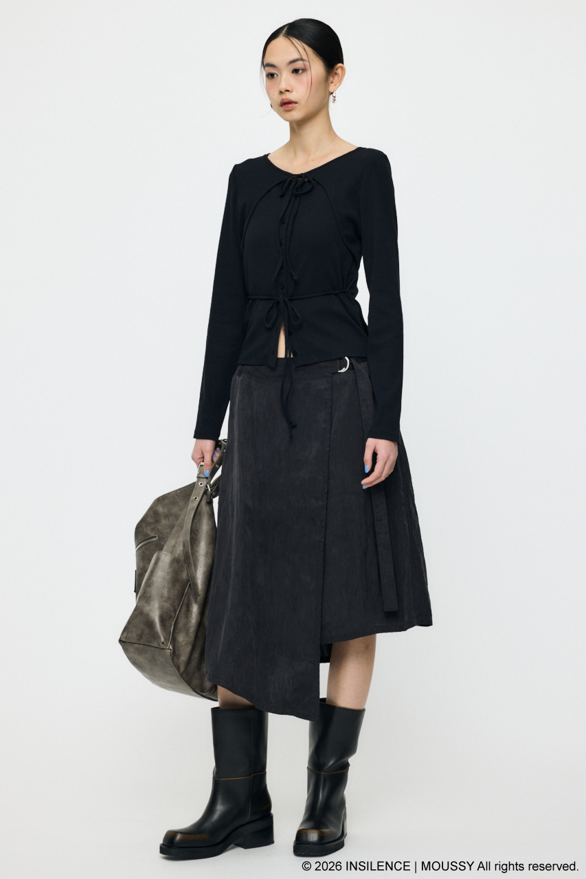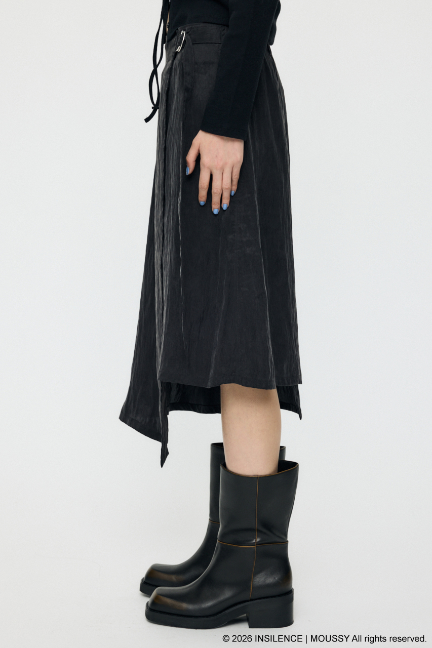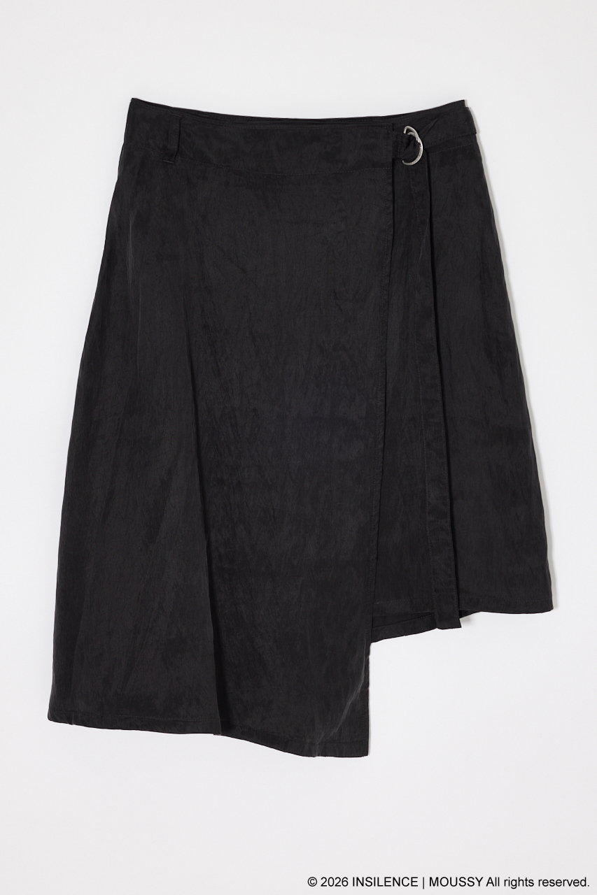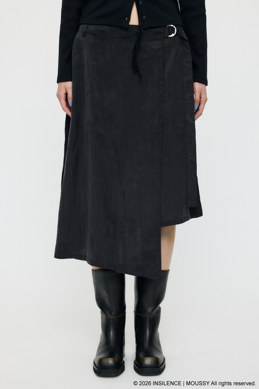 INSILENCEとのコラボレーションで完成した、アシンメトリーな表情が際立つベルト付きラップスカート。