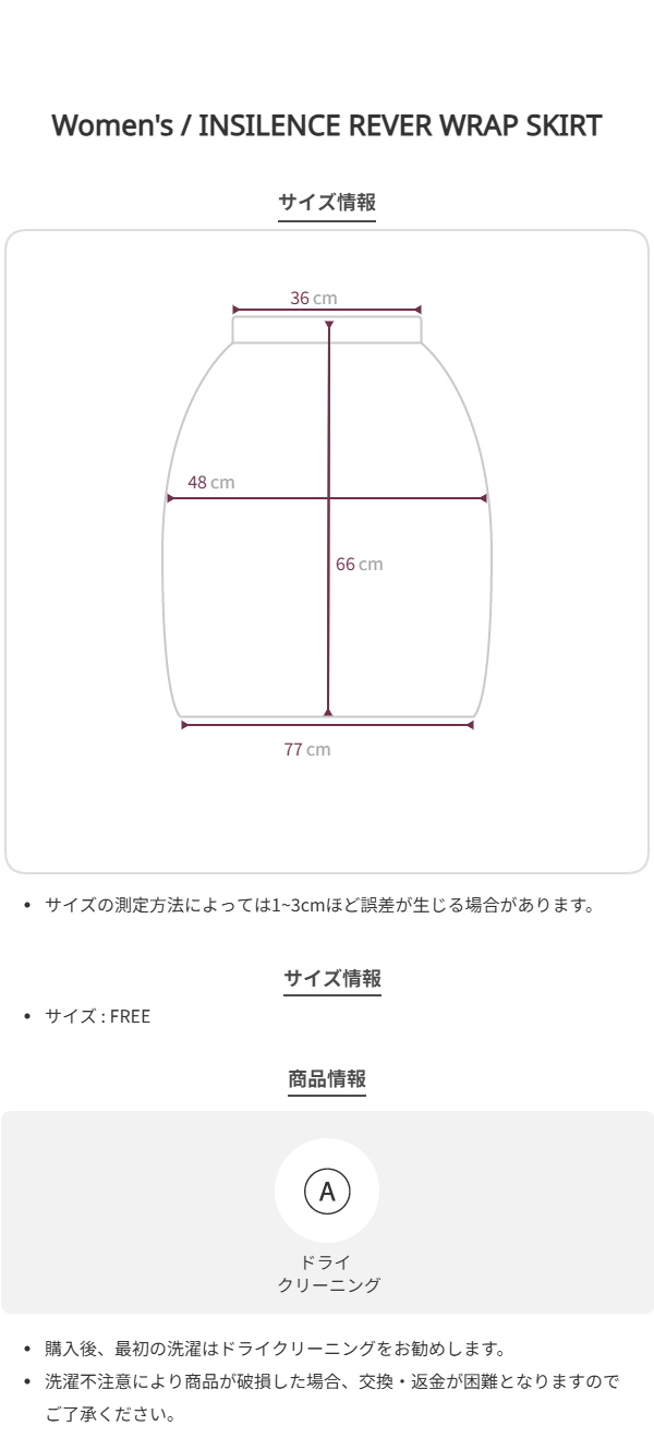 総丈:66||ウエスト:72||ヒップ:96||裾まわり:154