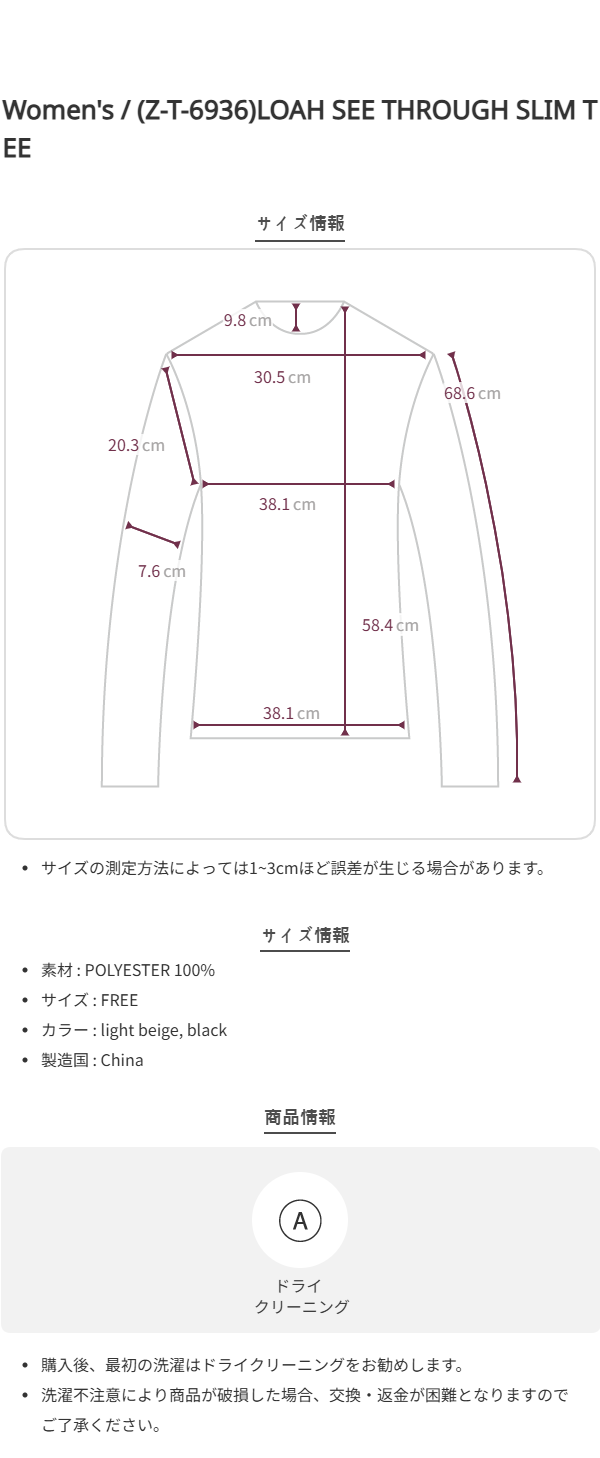 (Z-T-6936)LOAH SEE THROUGH SLIM TEE