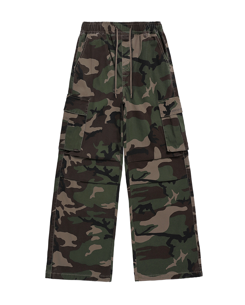 Parachute Washsing Cotton Wide Cargo Pants - camo
