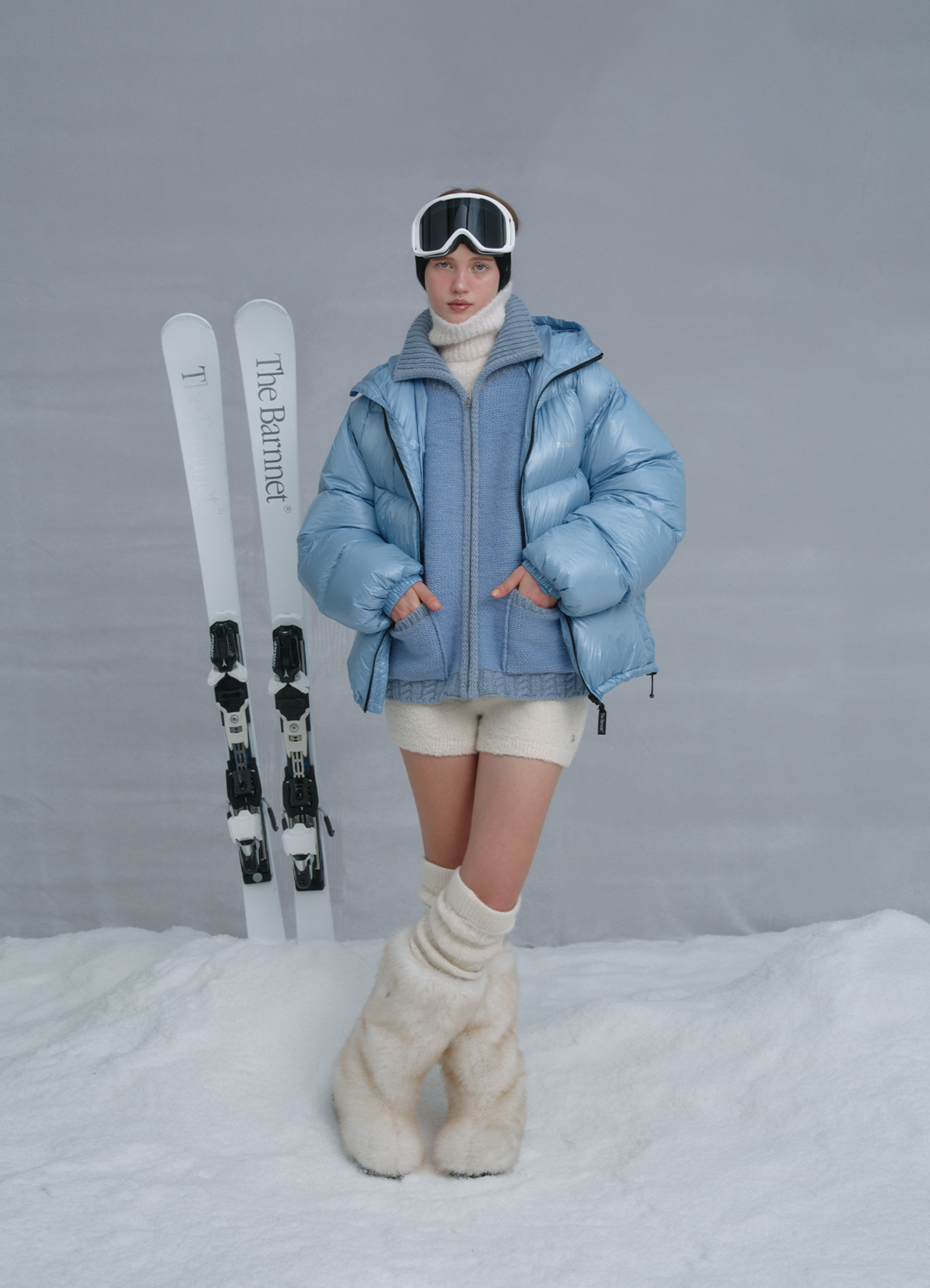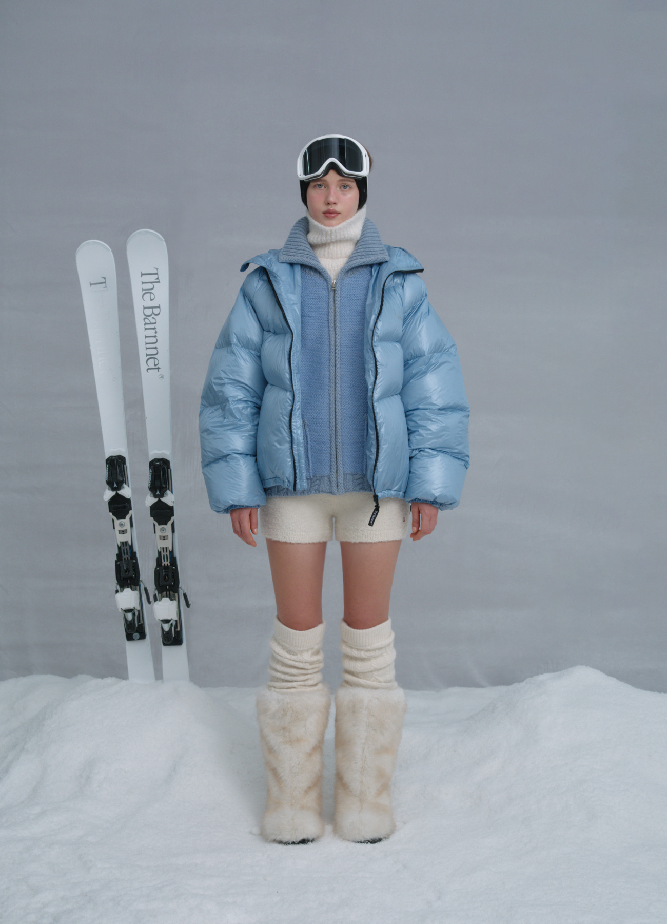 Reversible Hooded Goose Puffer Jacket - Baby Blue