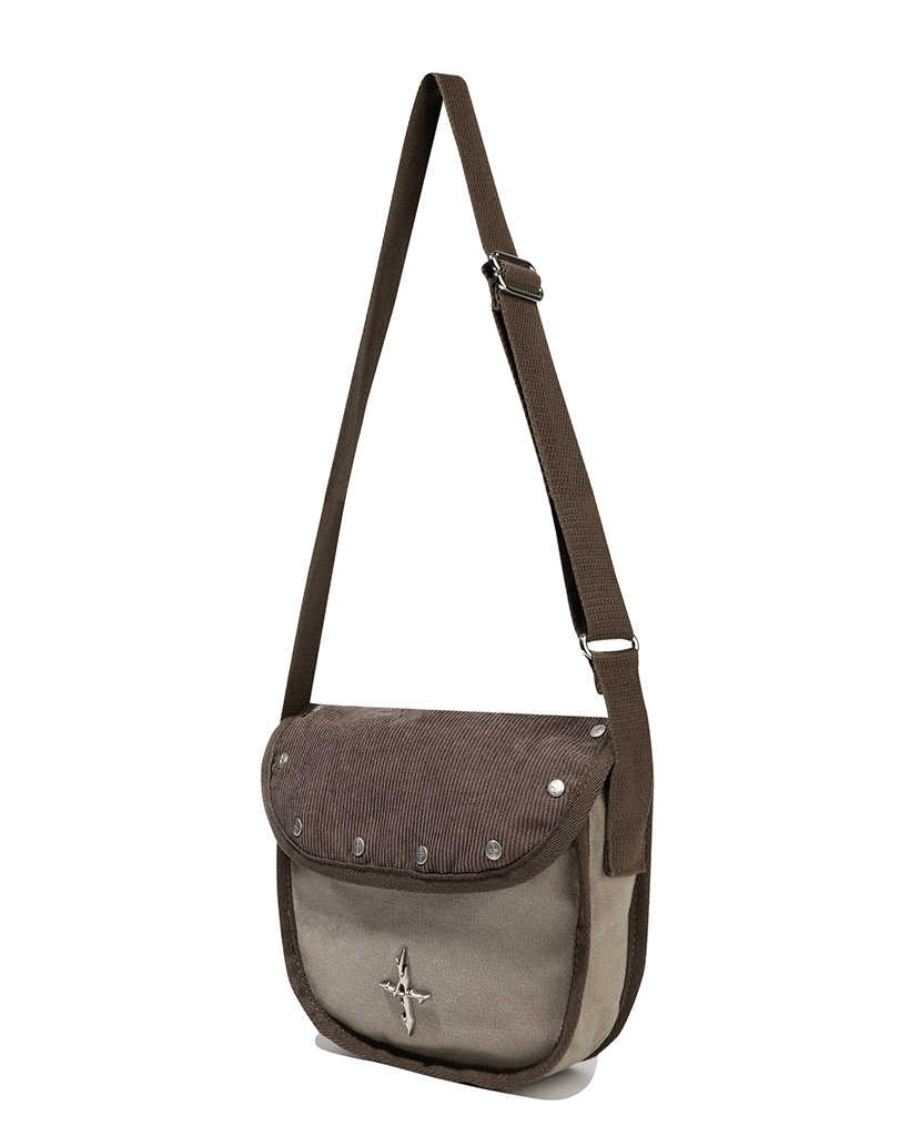 4 Symbol Stud Corduroy Mini Cross Bag - Brown