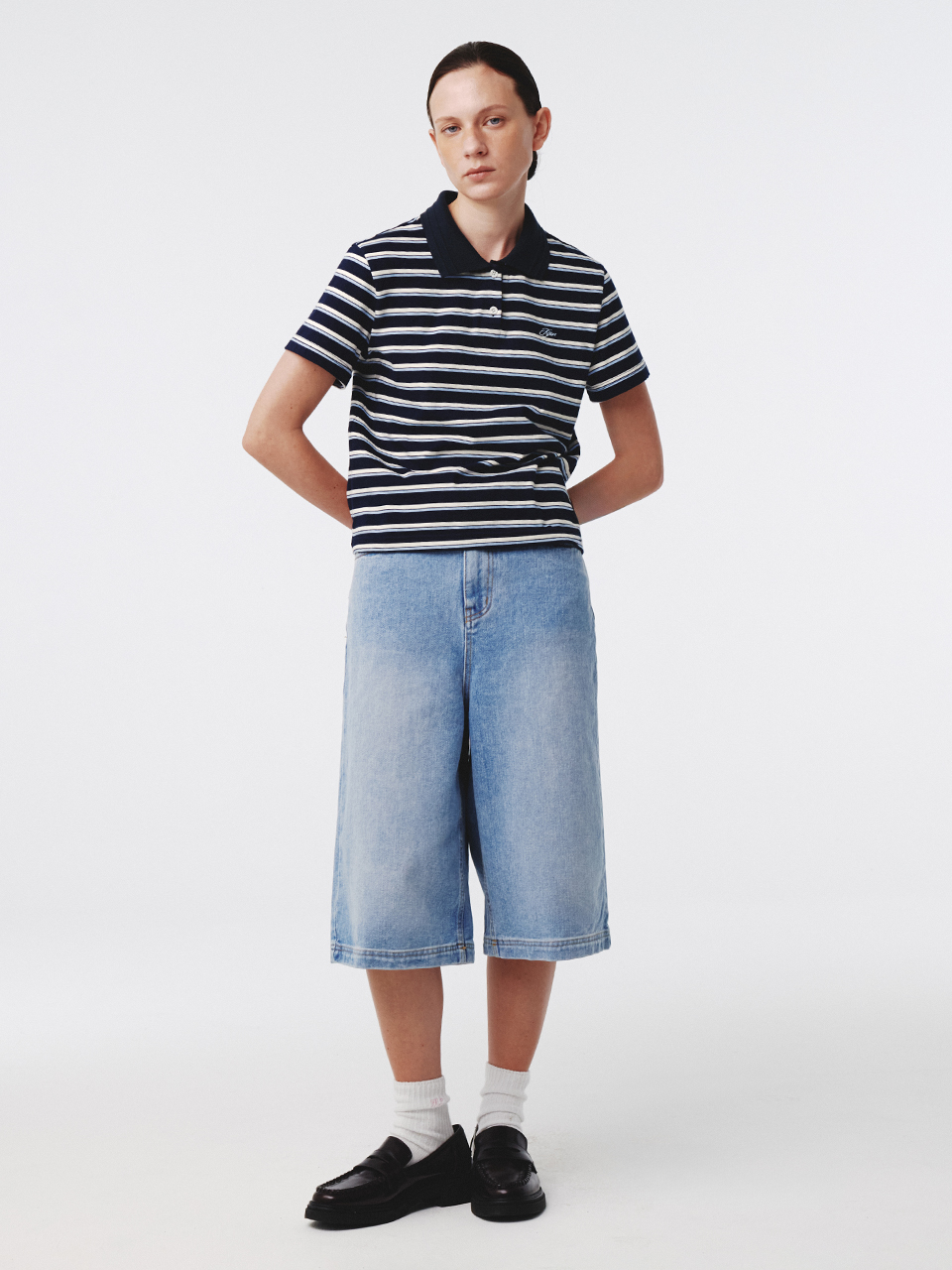 Stripe Cotton Polo Shirt Navy