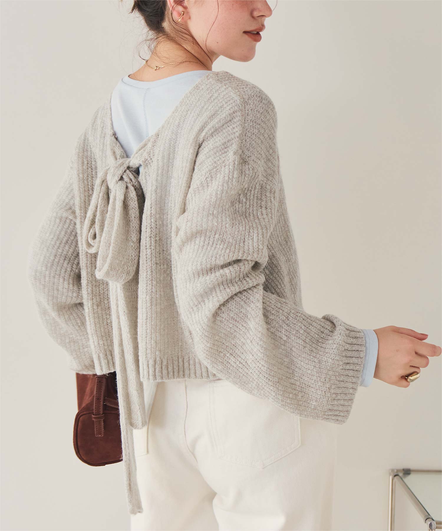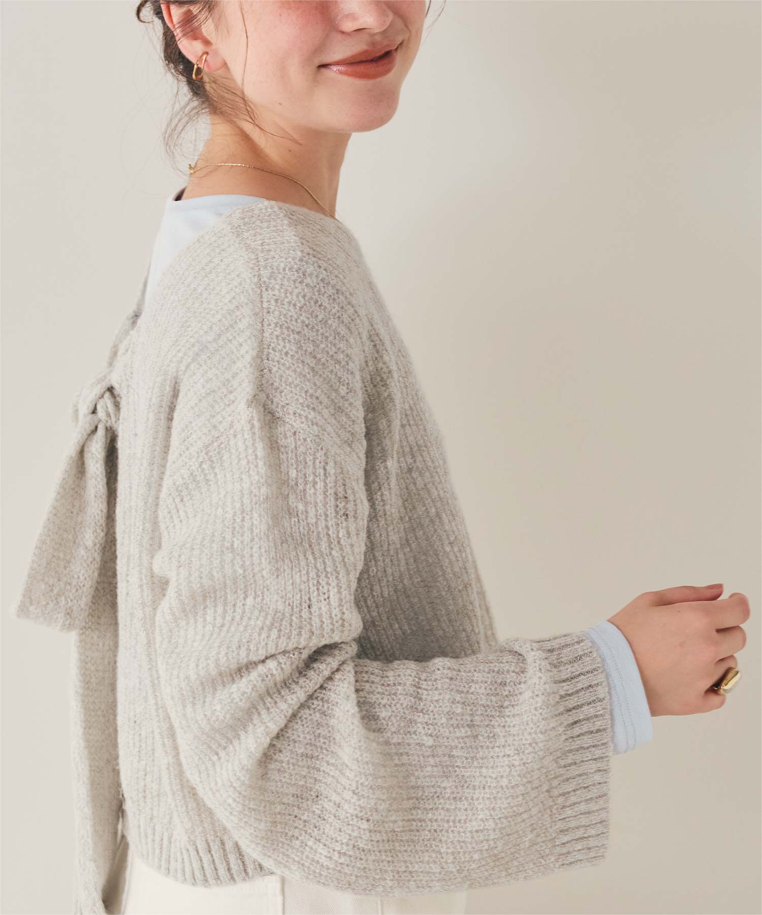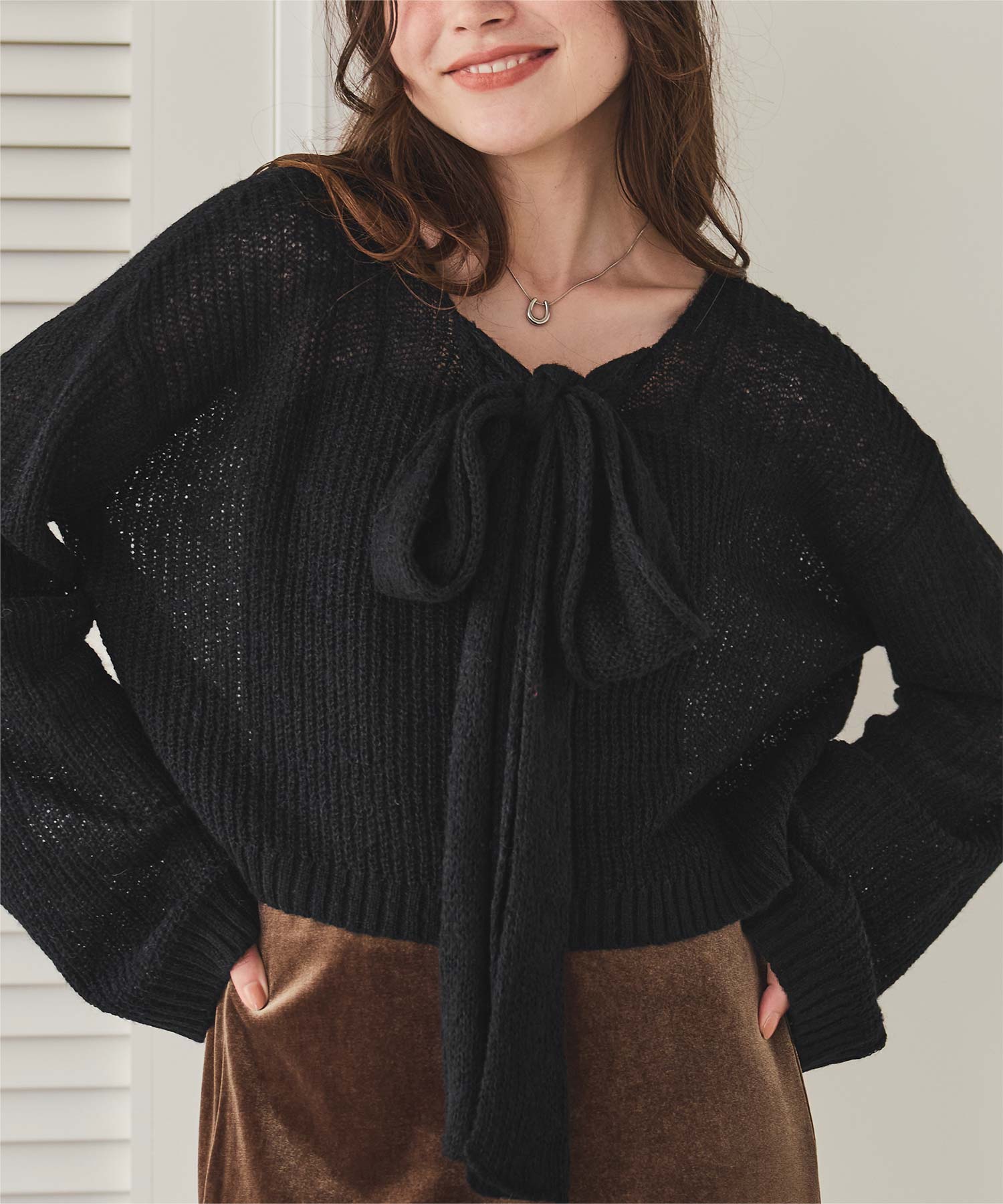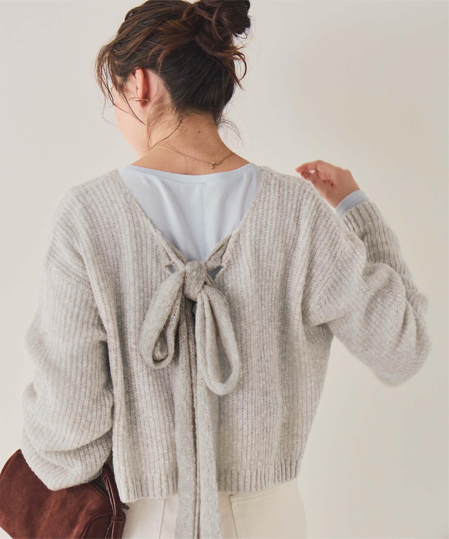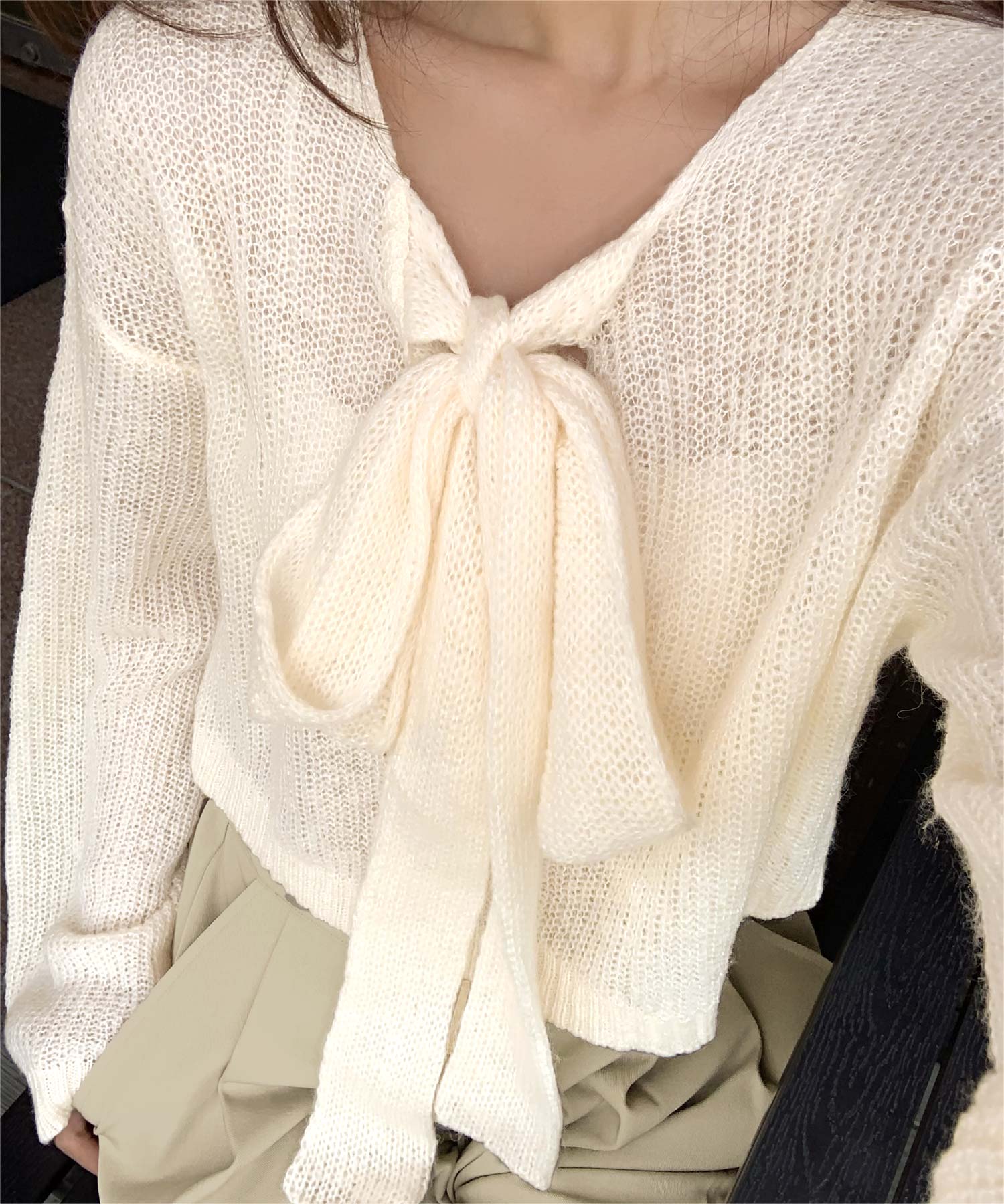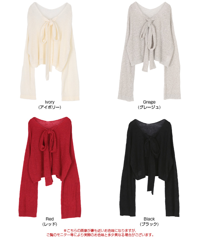 前後2wayリボンデザインシアーローゲージニット