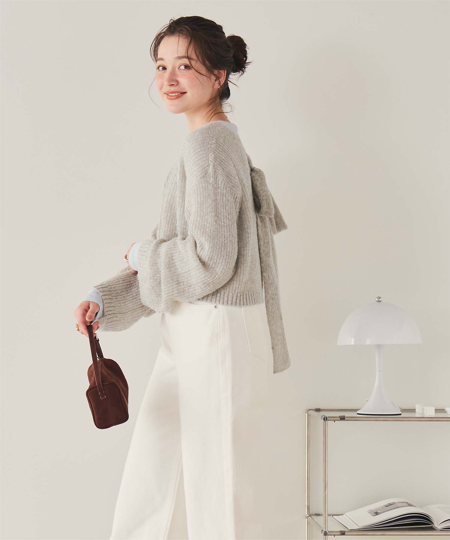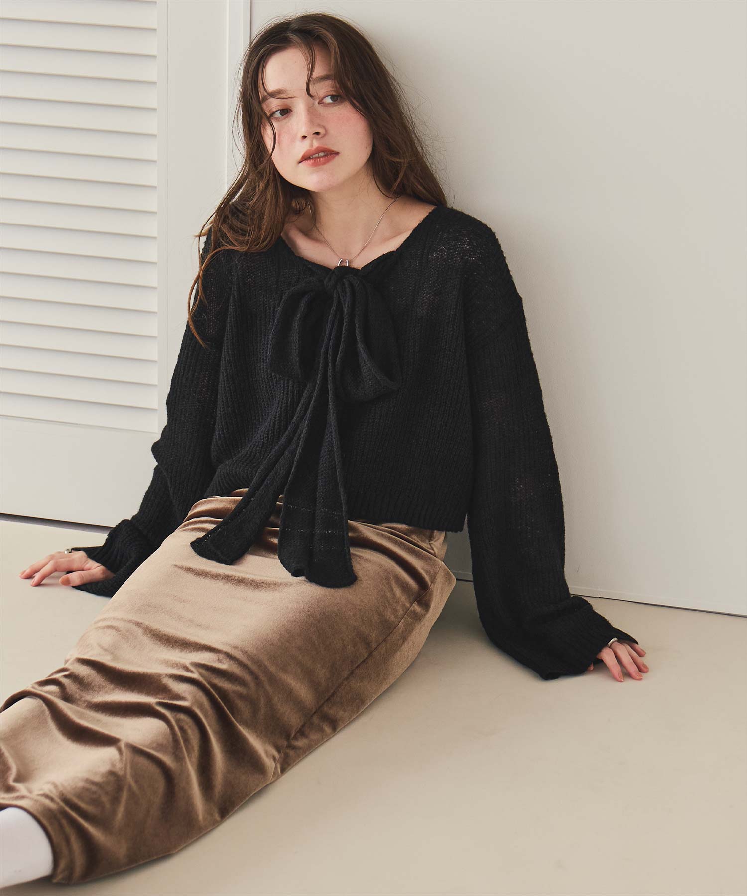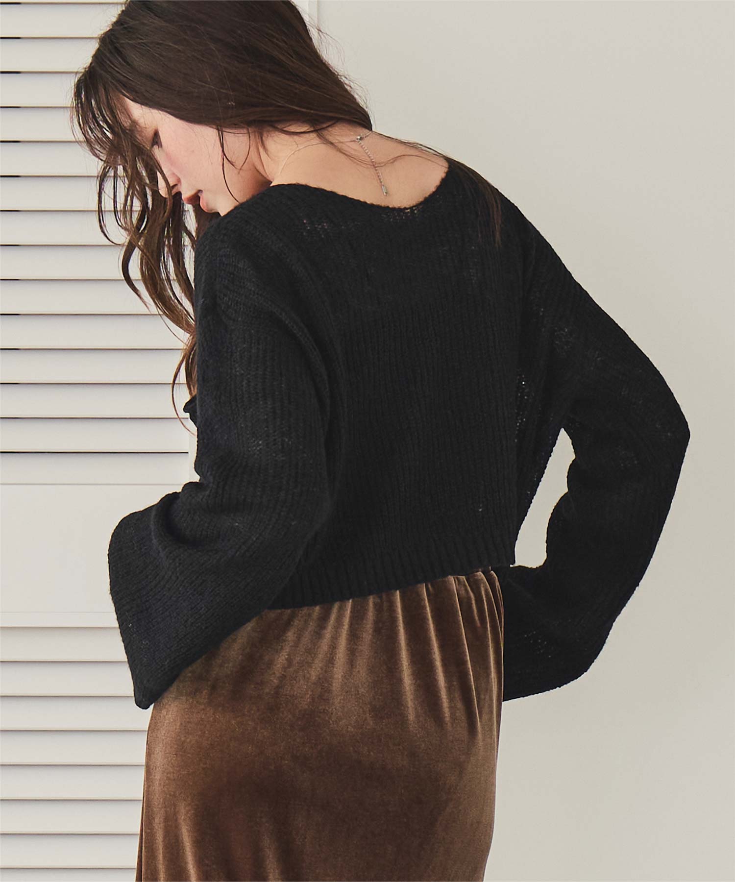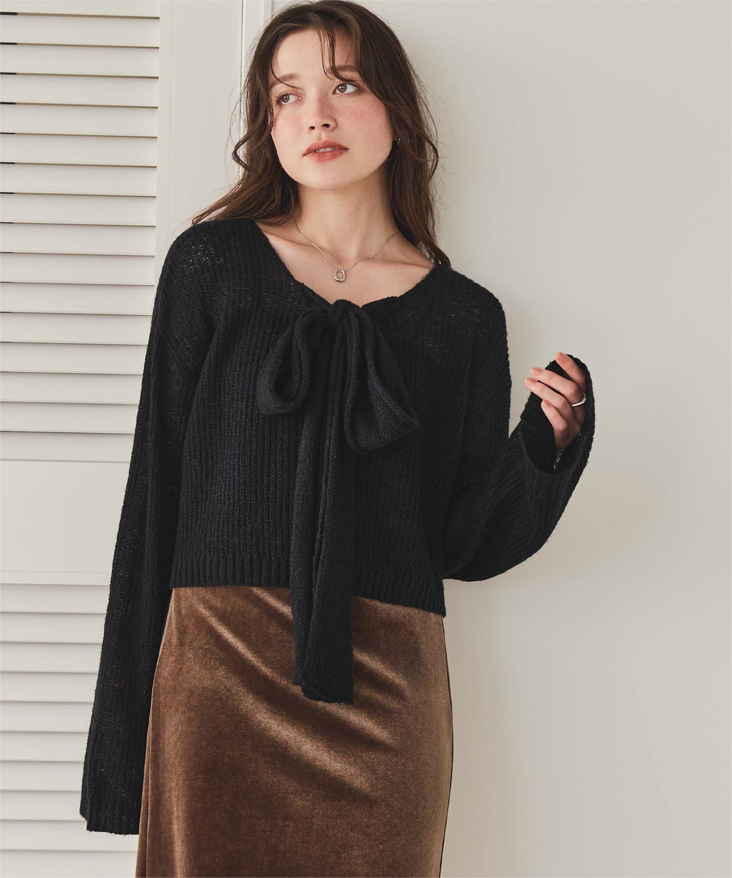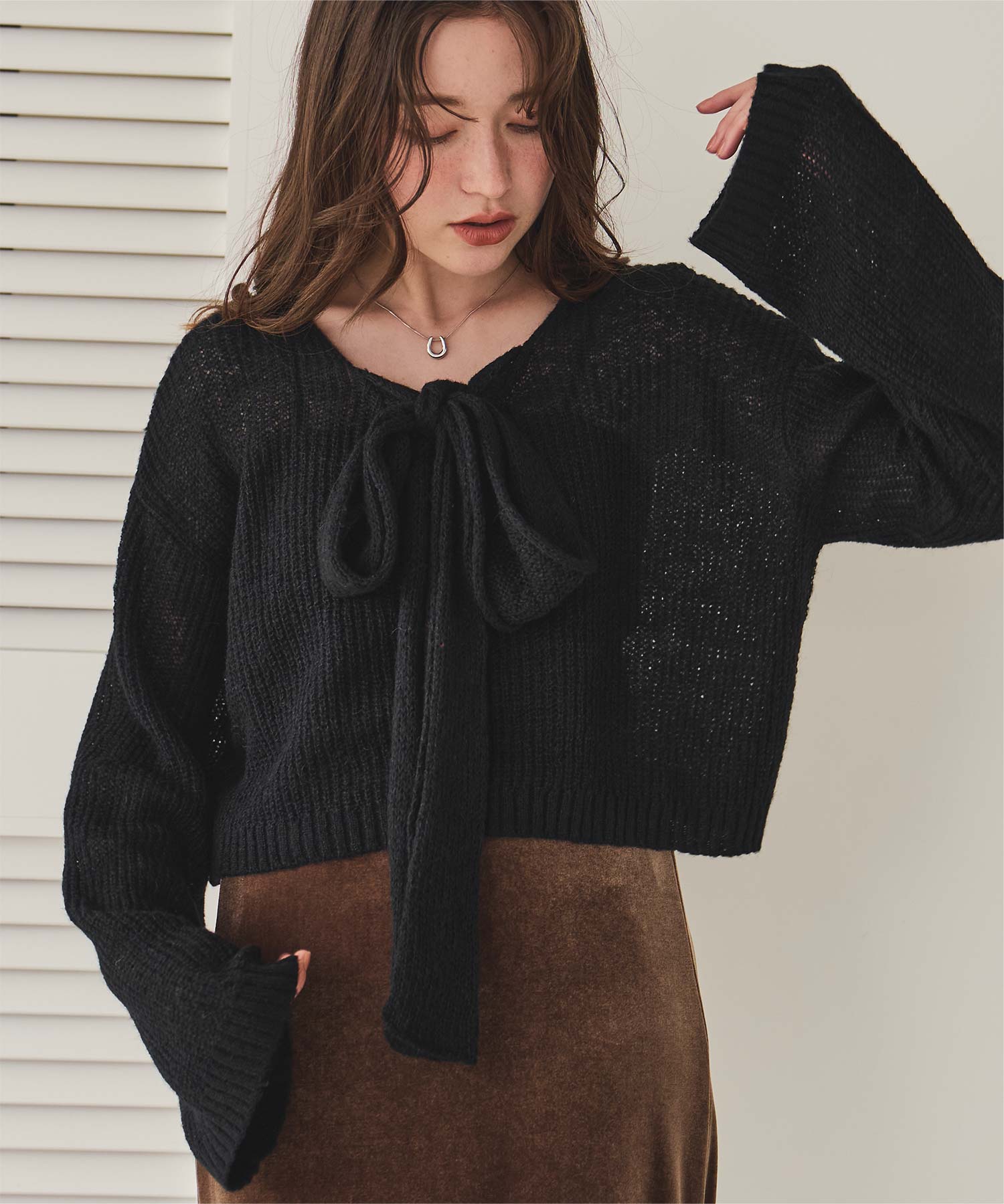 前後2wayリボンデザインシアーローゲージニット
