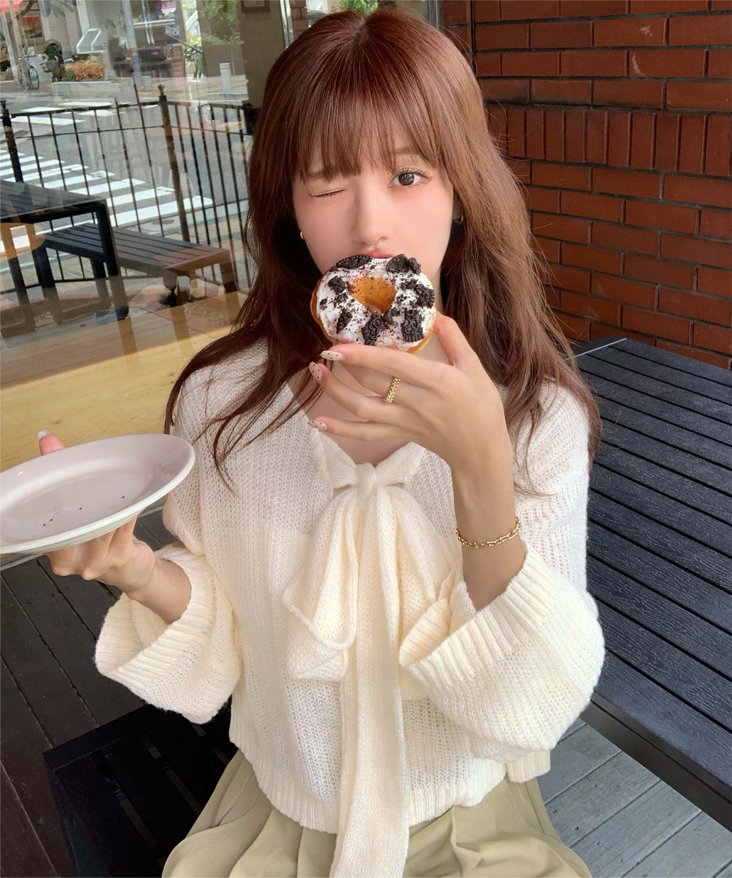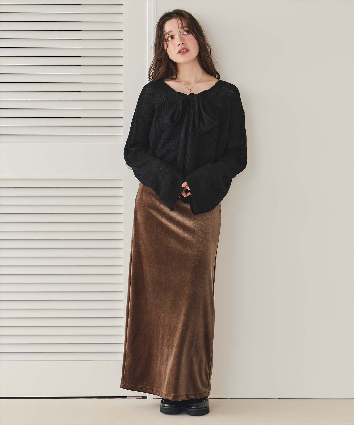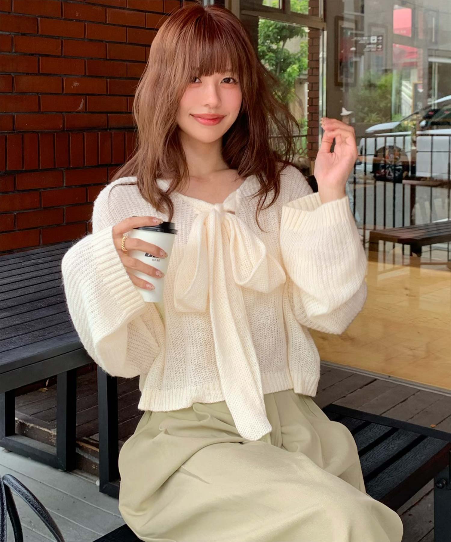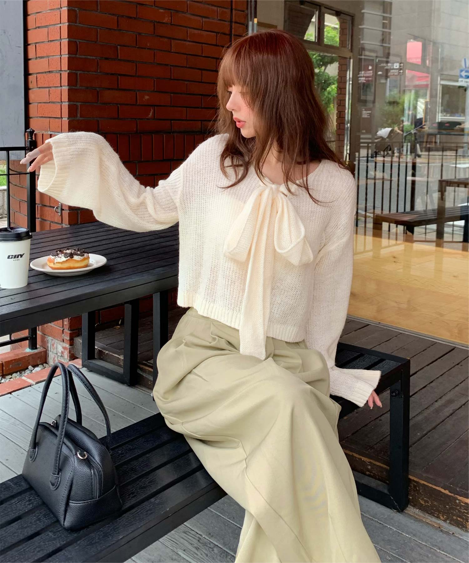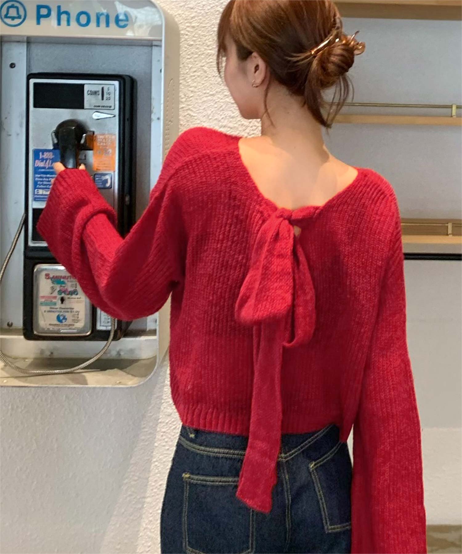 前後2wayリボンデザインシアーローゲージニット