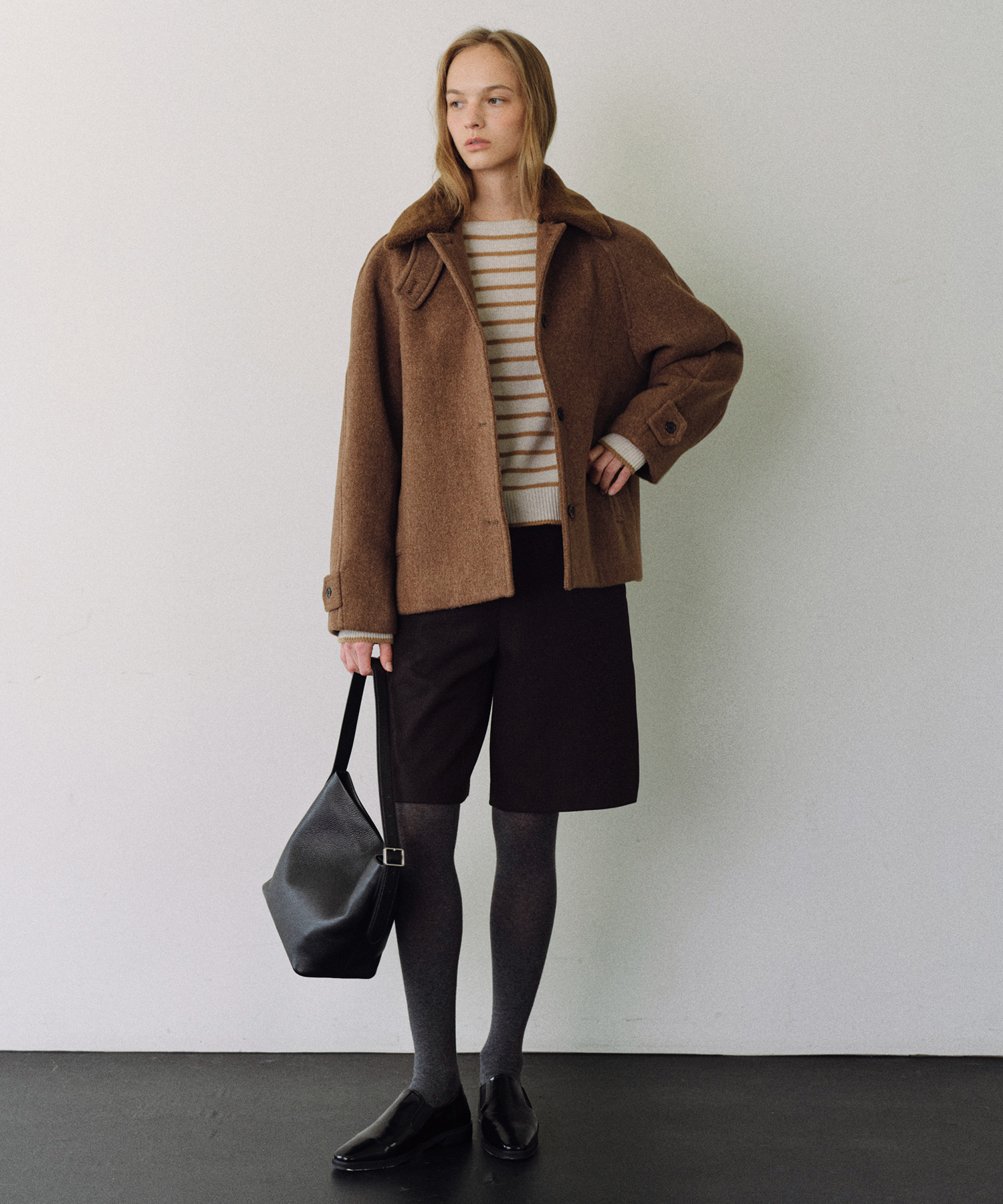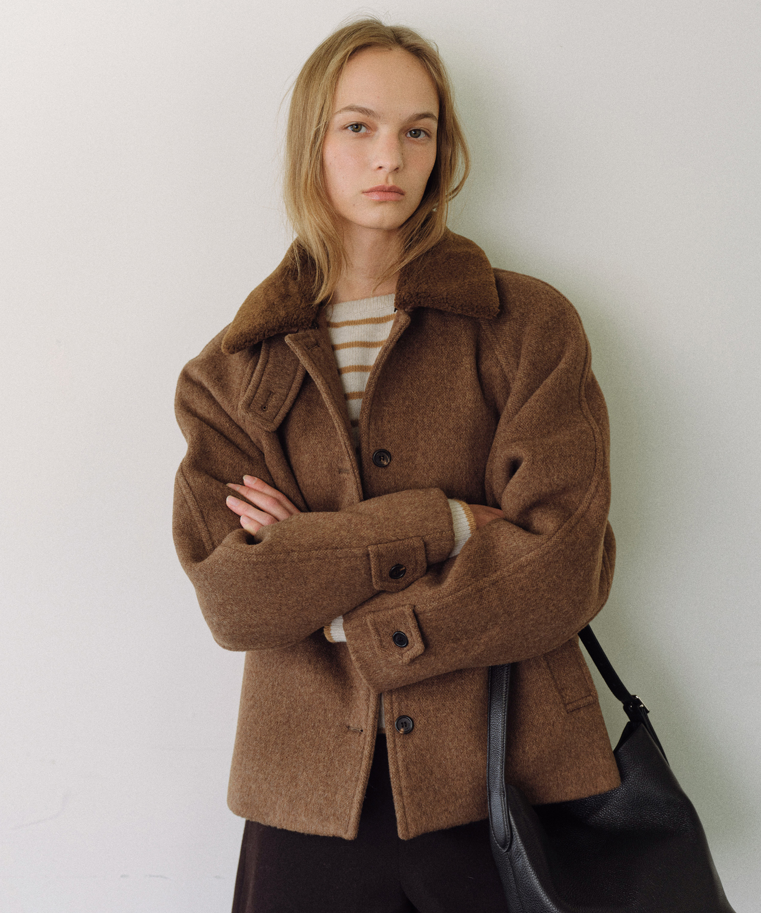 - 取り外し可能なファーカラー付きで、シンプルにもポイント使いにも対応でき、季節や雰囲気に合わせて幅広くスタイリング可能です。