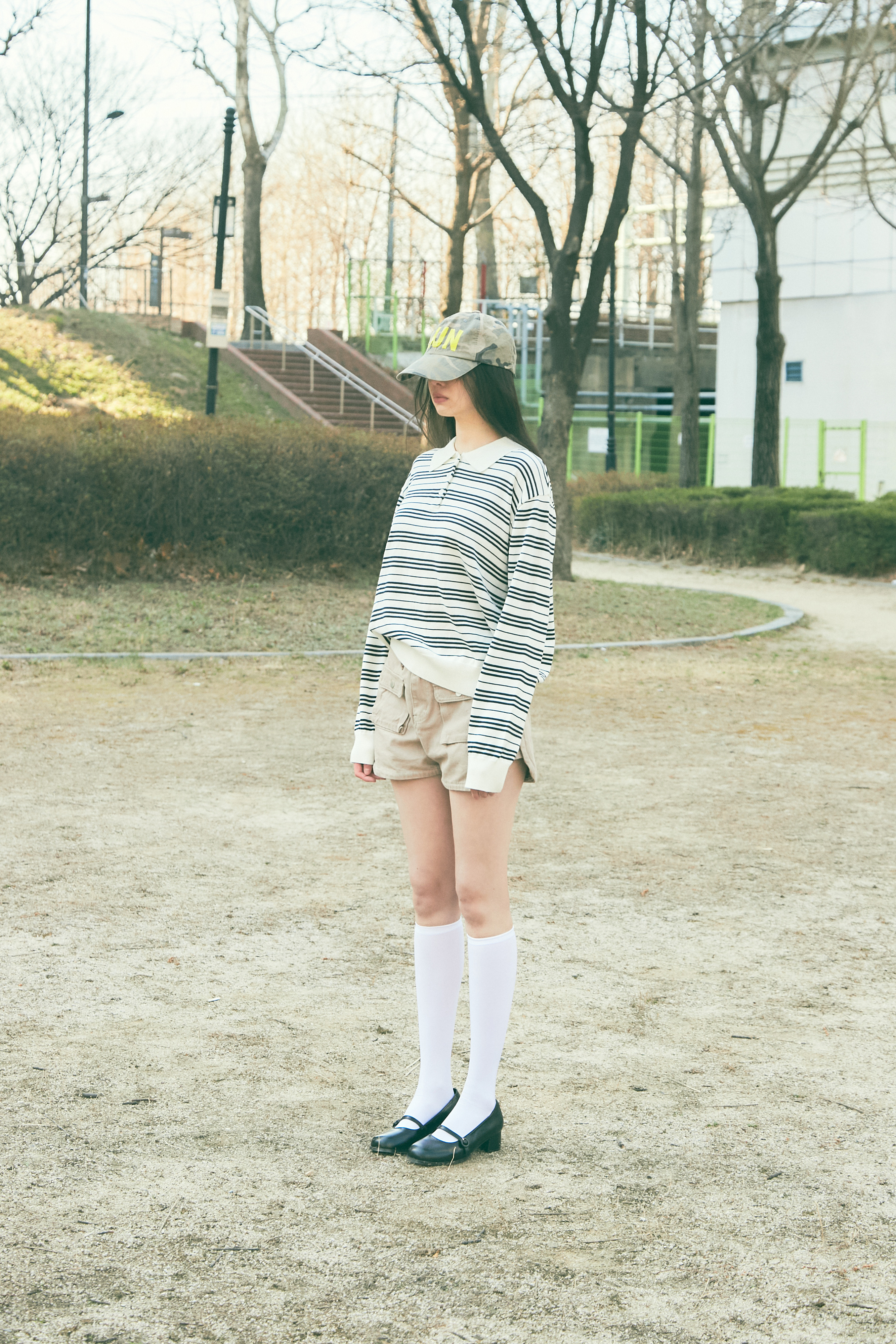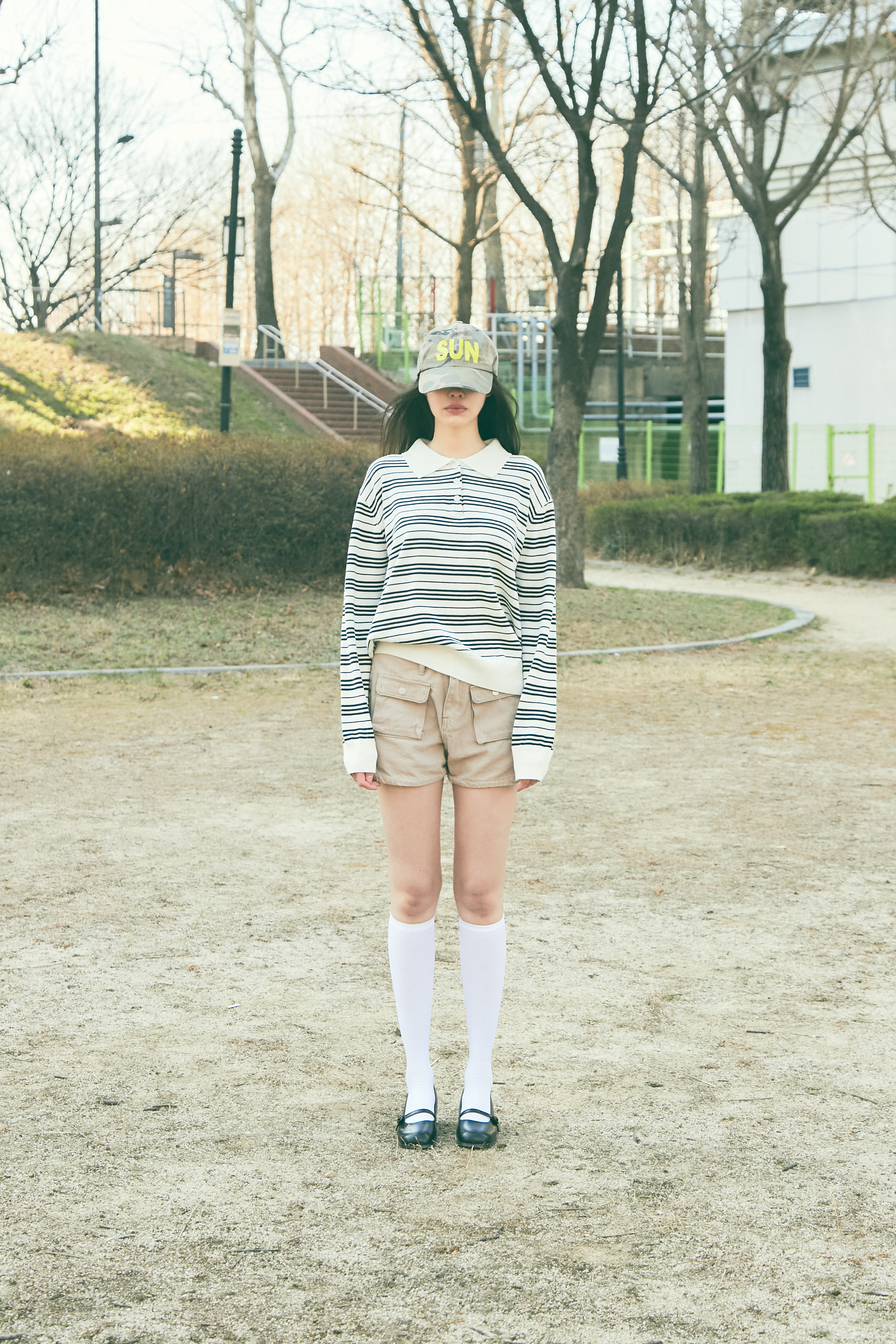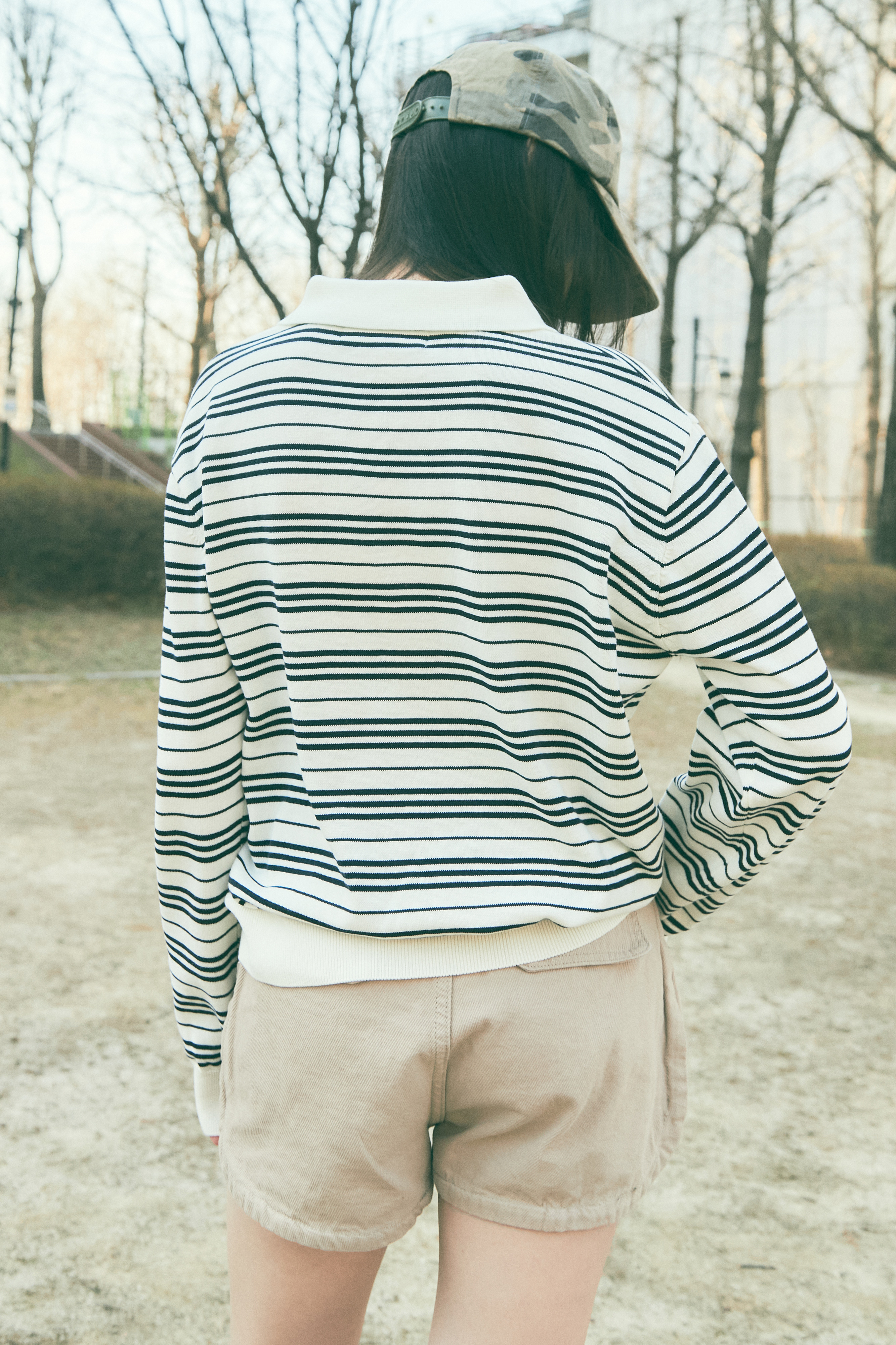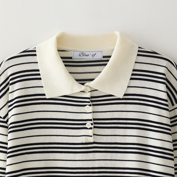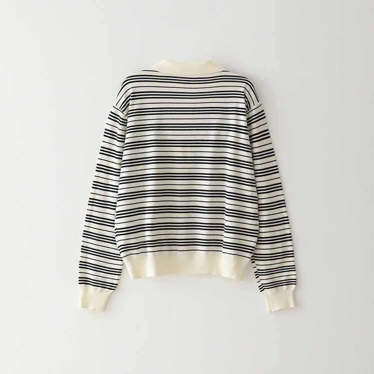 Bluesf resort striped collar long-sleeve knitwear - Ivory