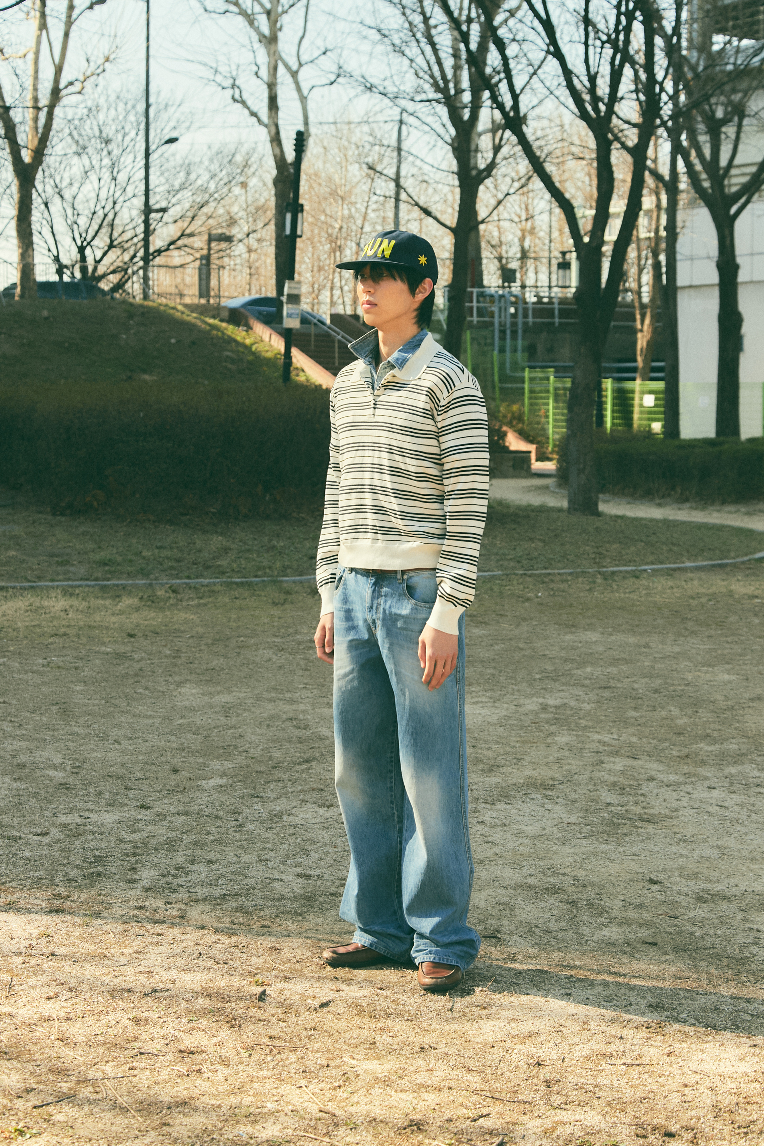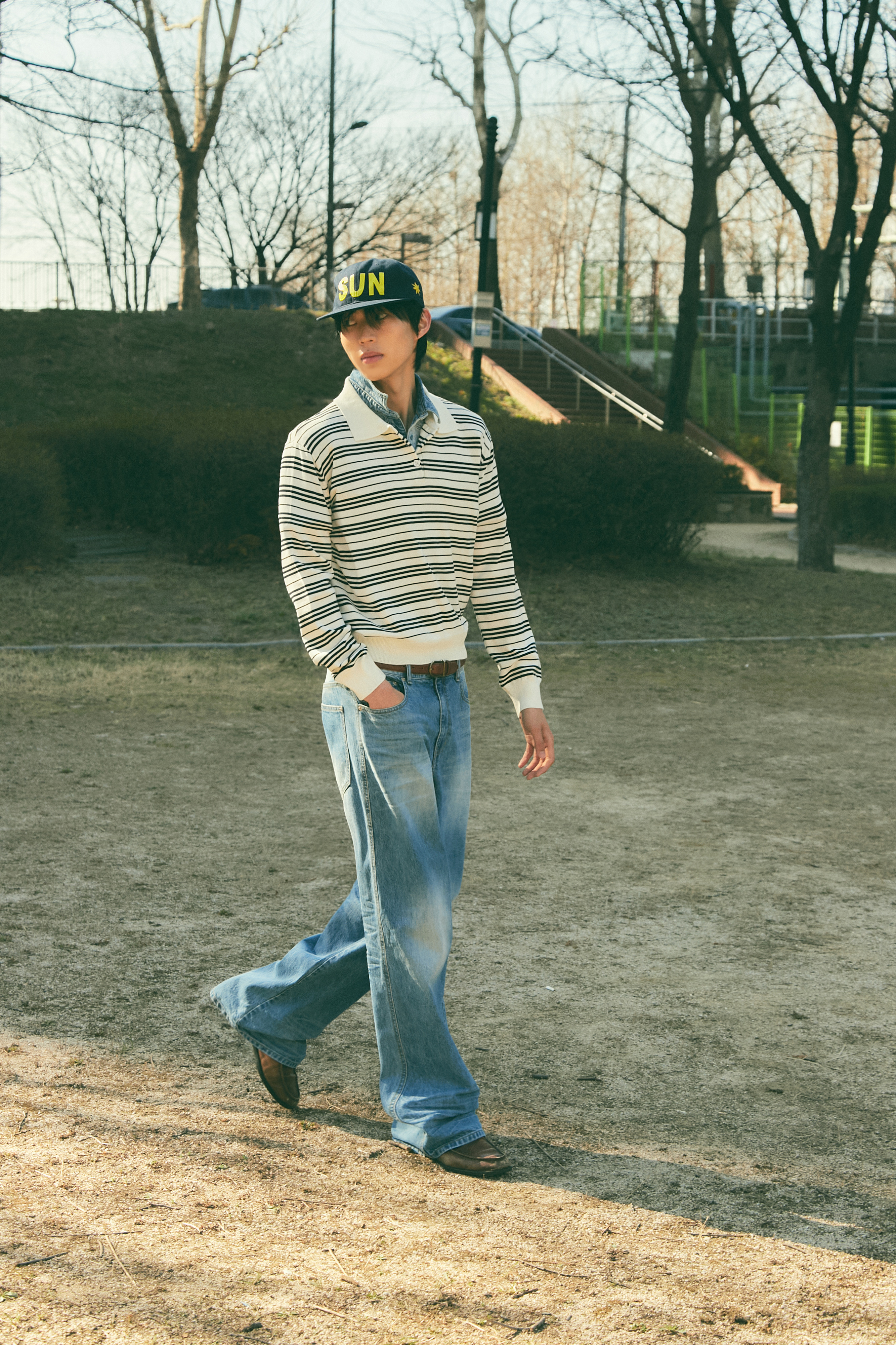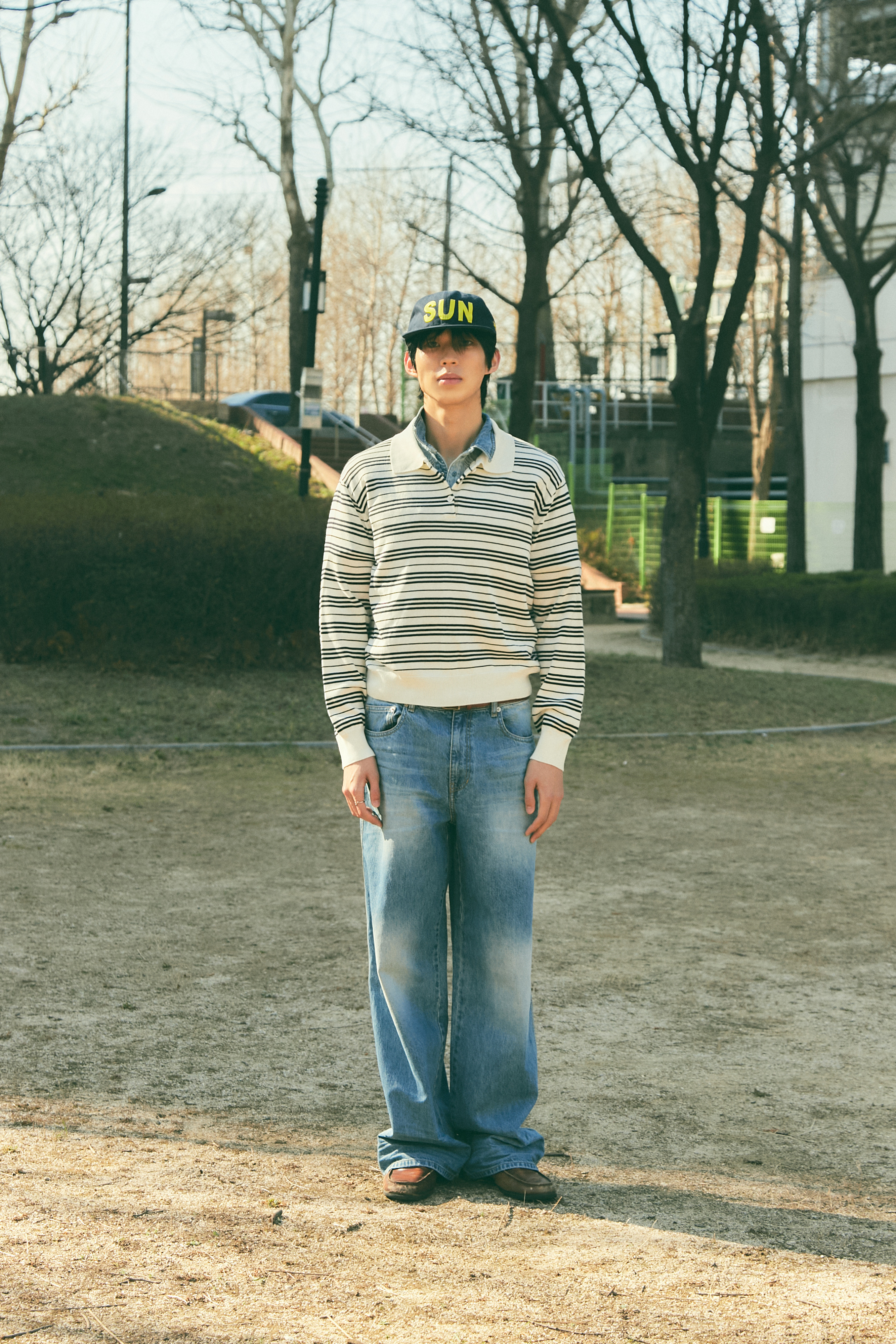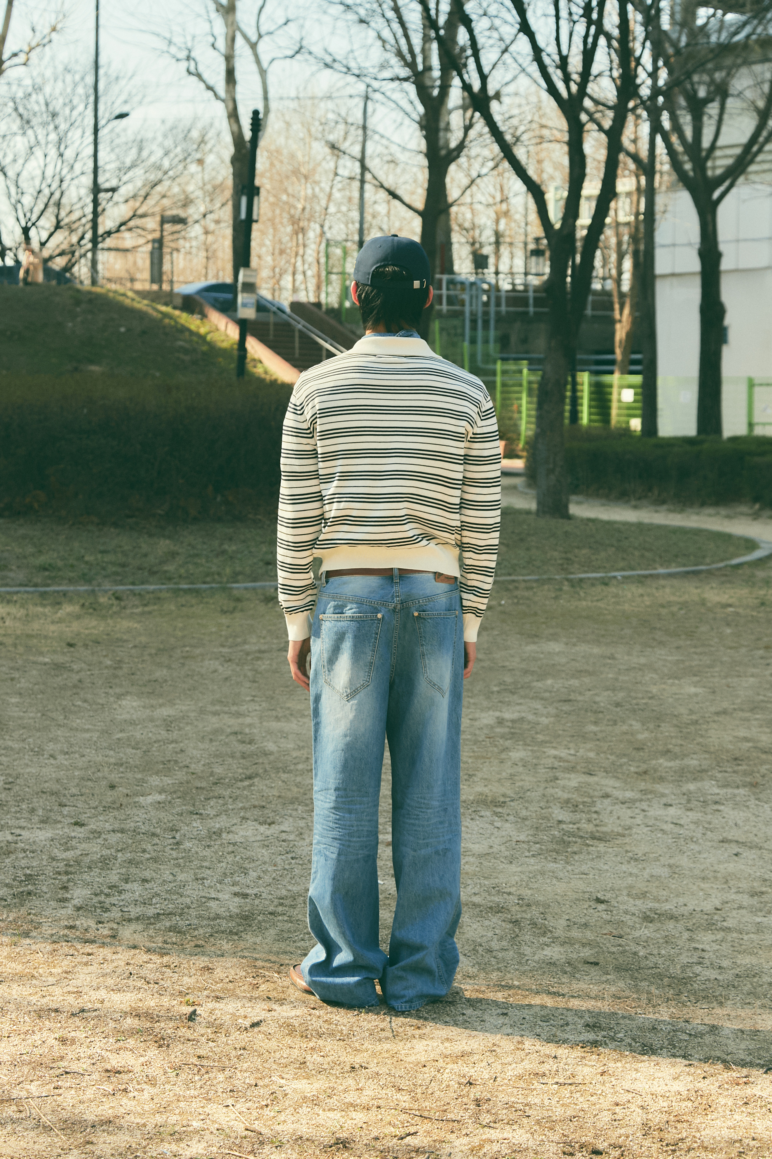 Bluesf resort striped collar long-sleeve knitwear - Ivory