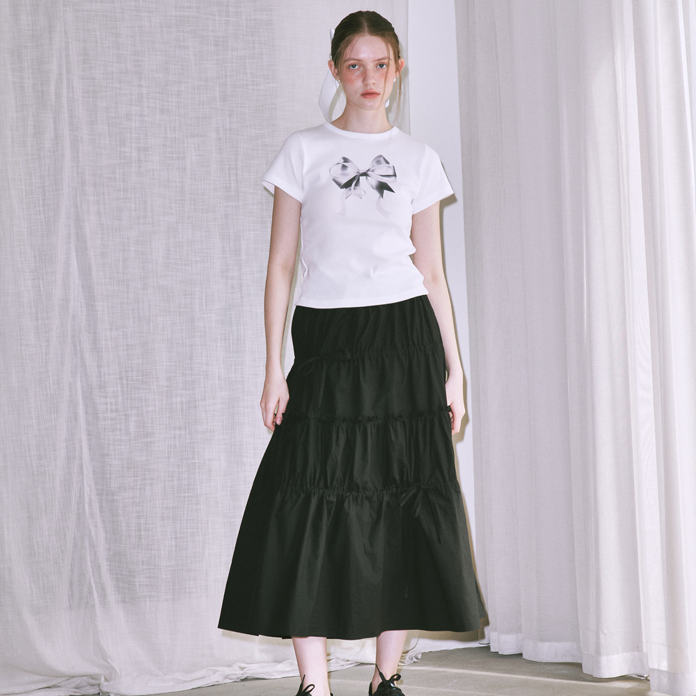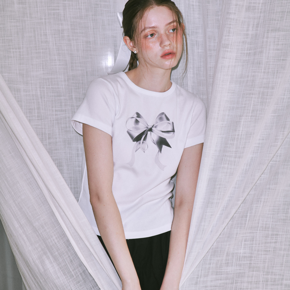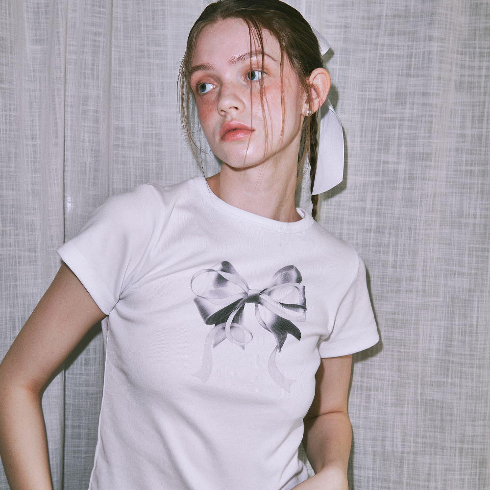 DOUBLE RIBBON SLIM CROP T SHIRT WHITE SILVER
