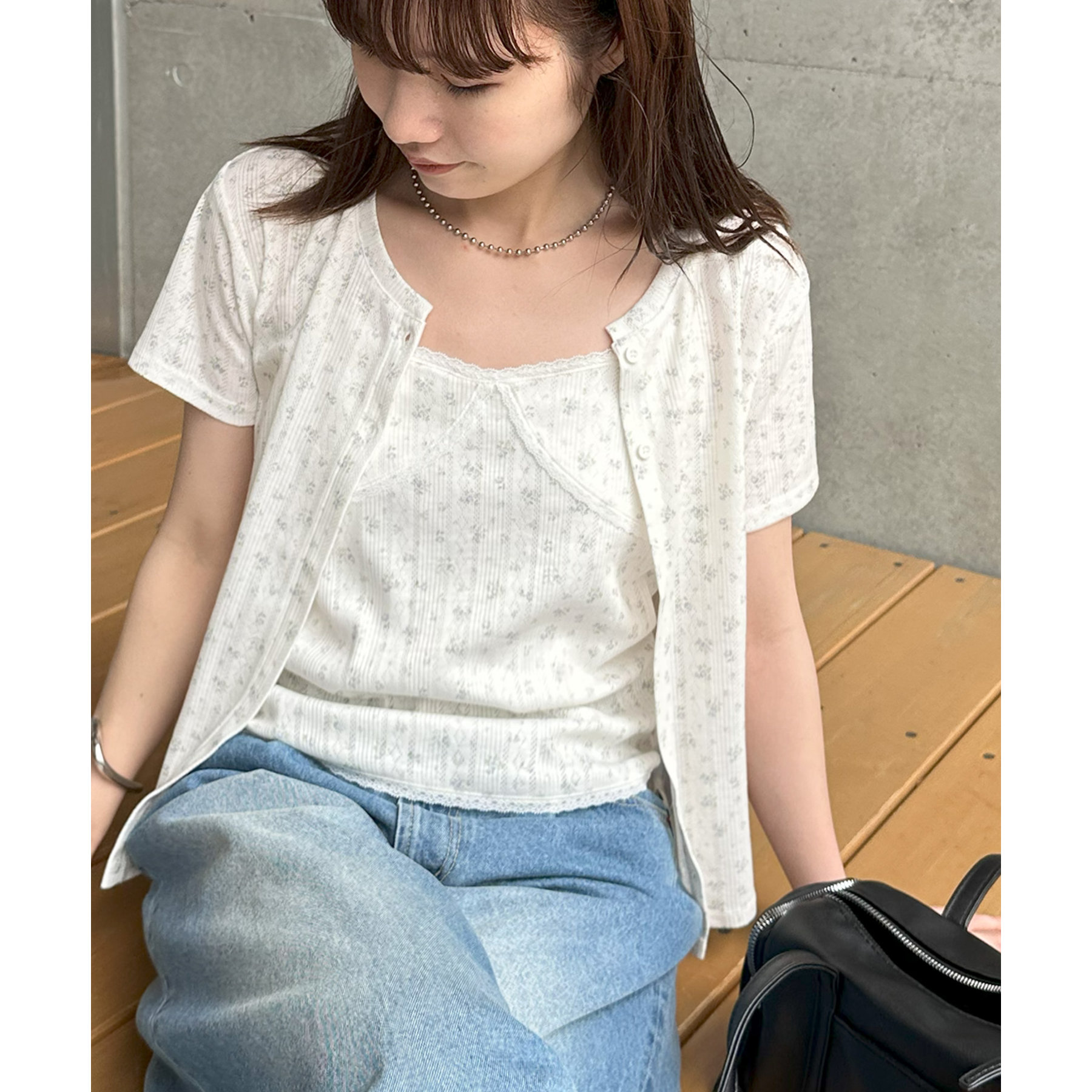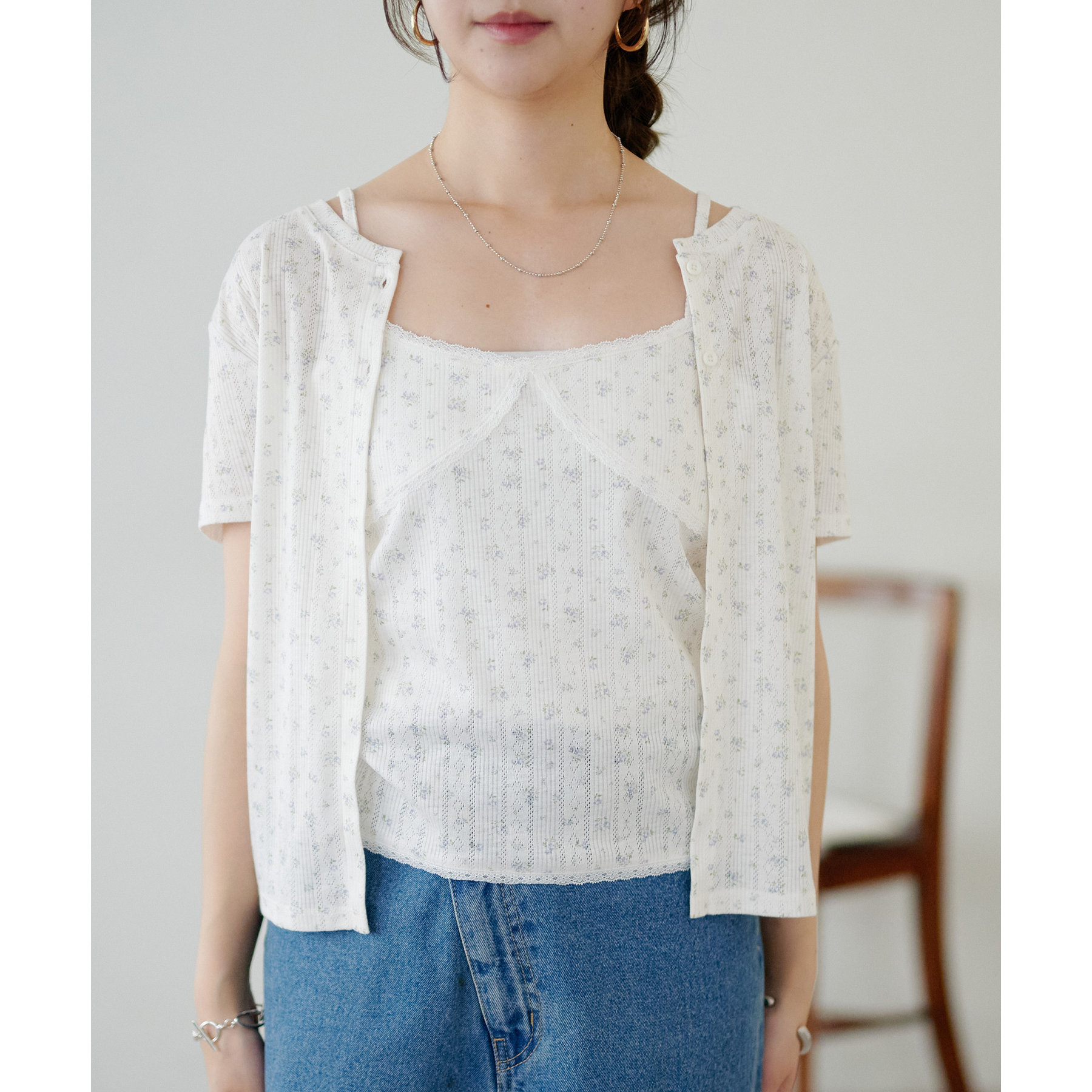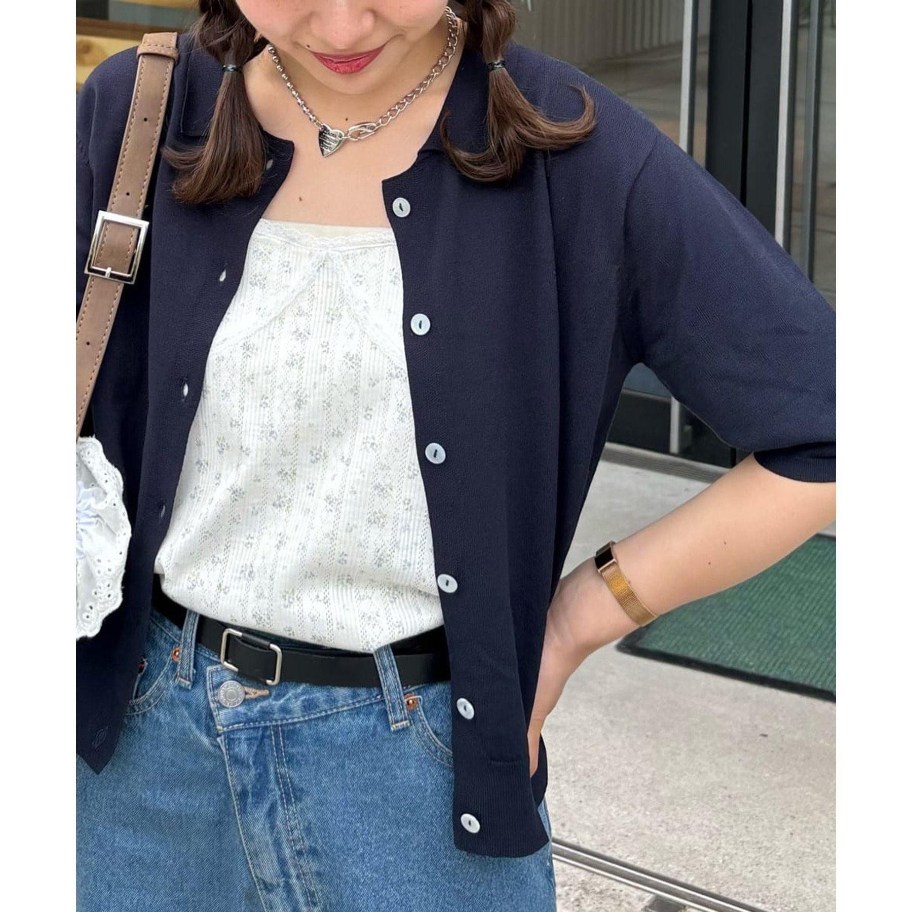 カーディガンとキャミソールのセットで、着こなし方は自由自在です。
