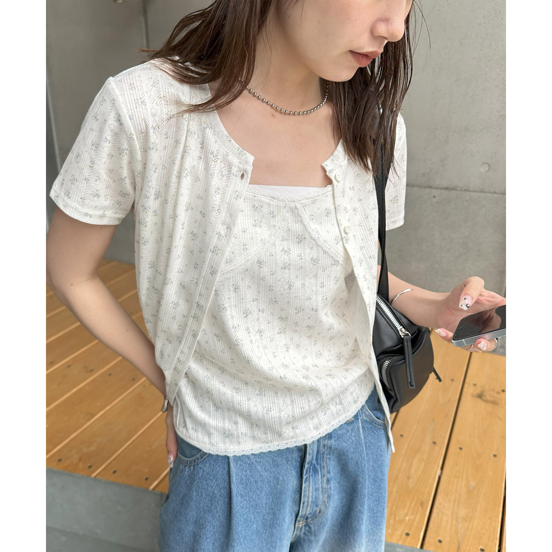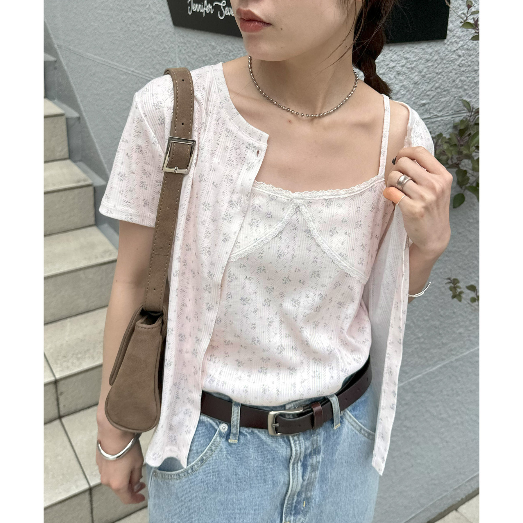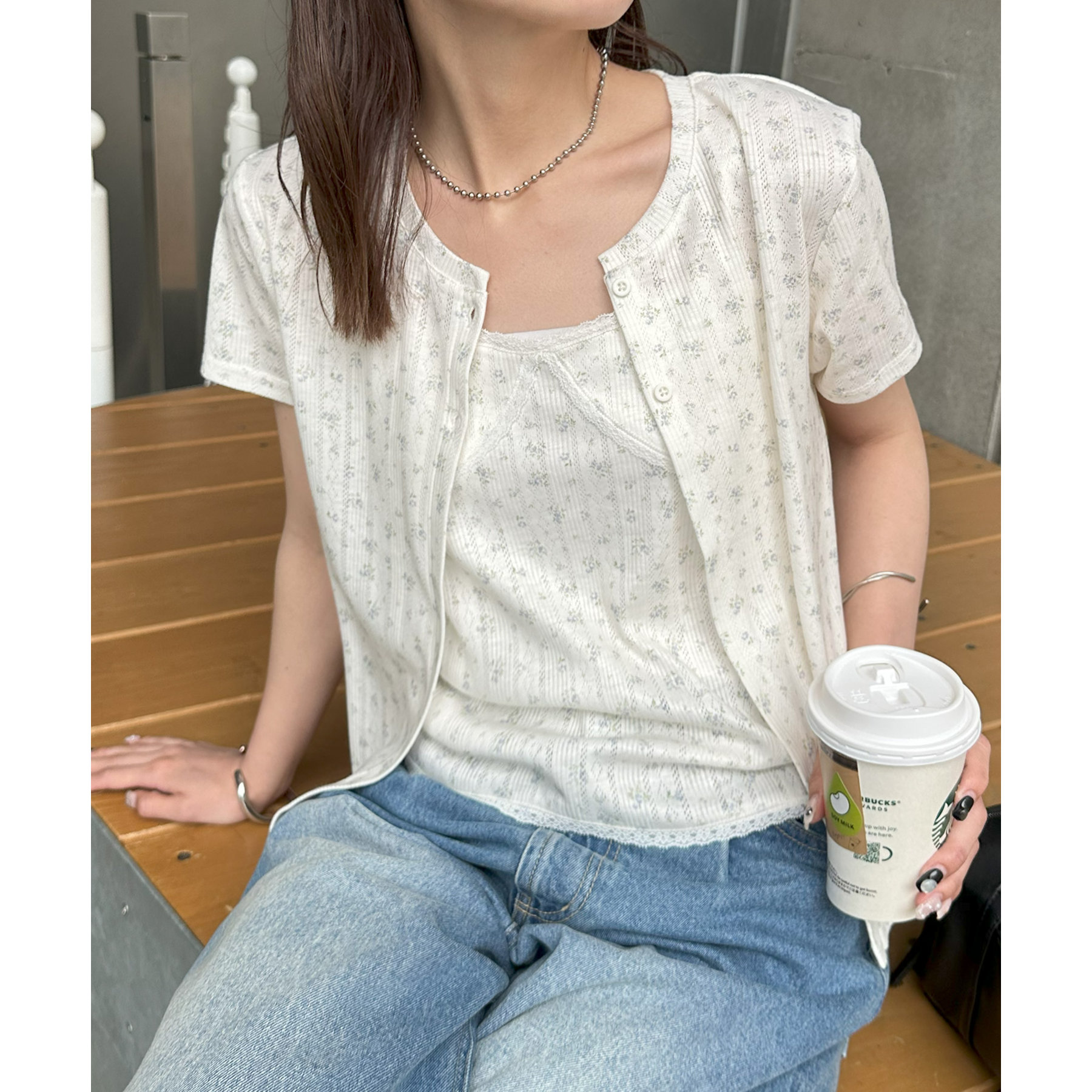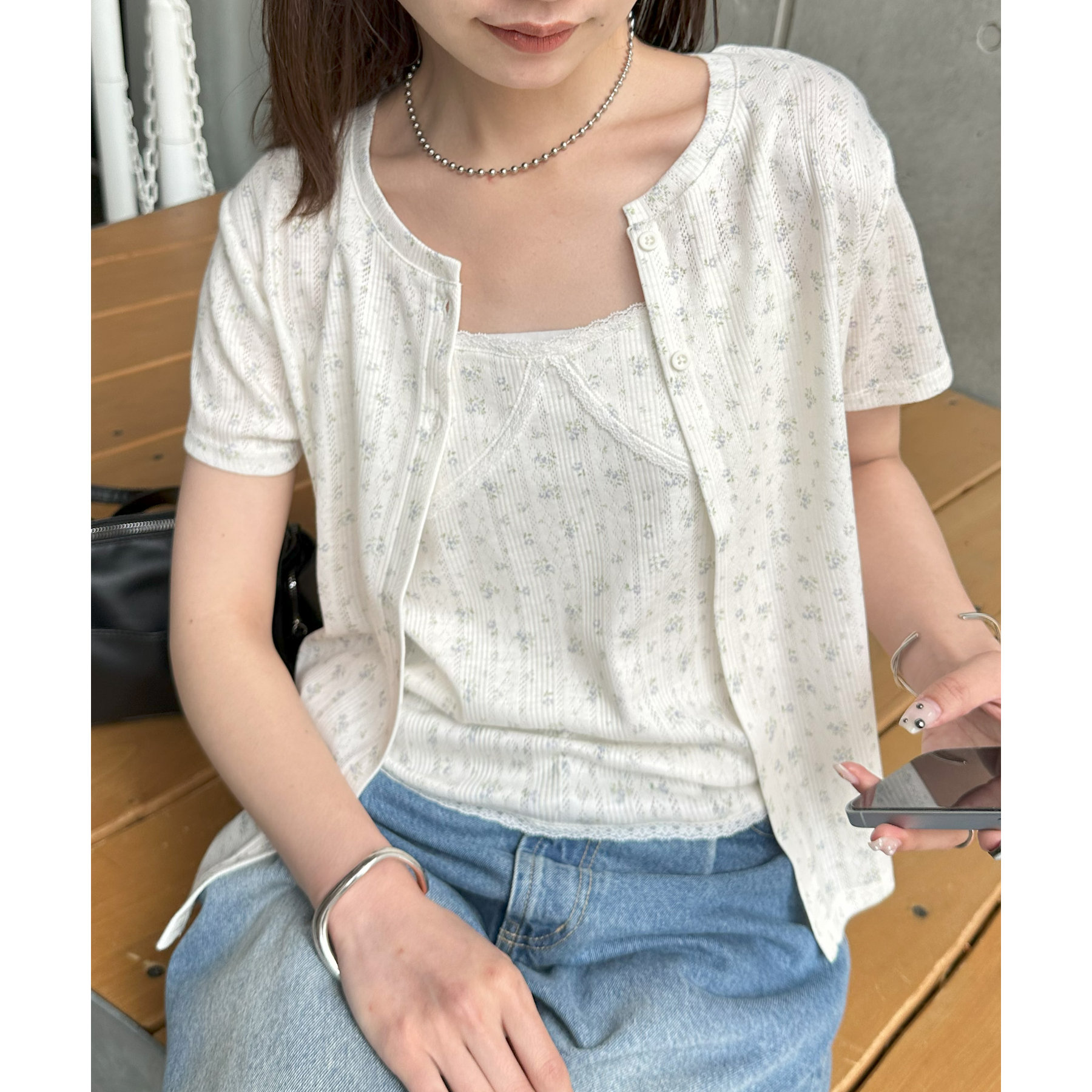 カーディガンとキャミソールのセットで、着こなし方は自由自在です。