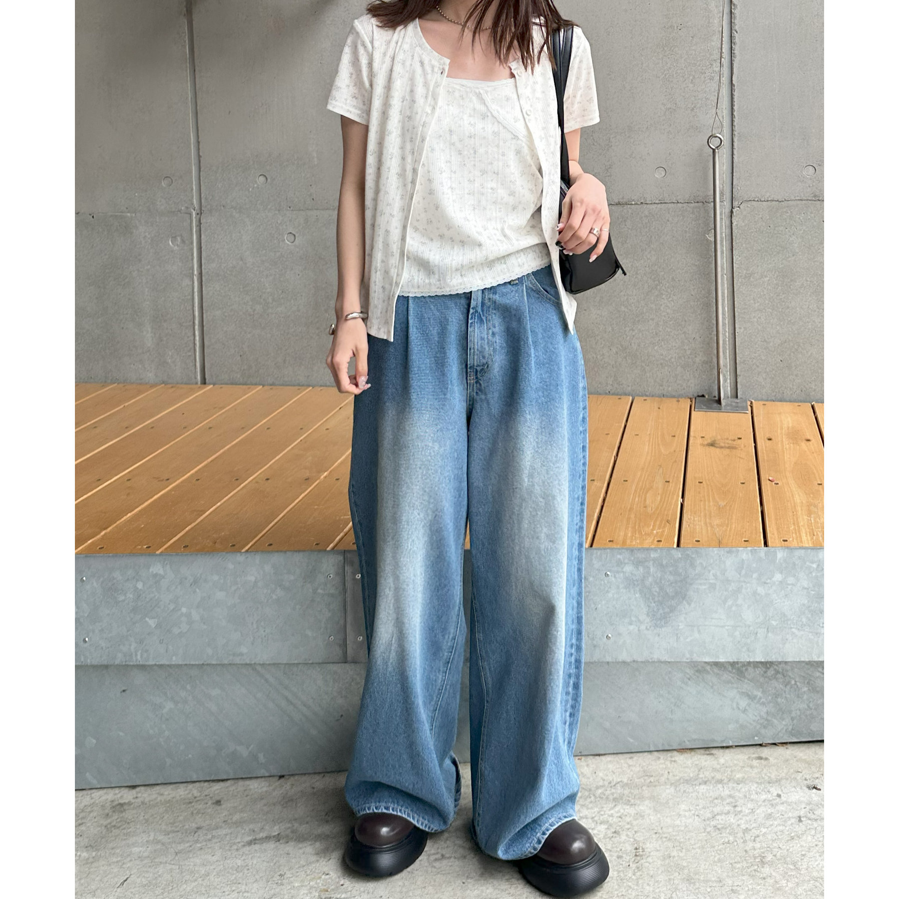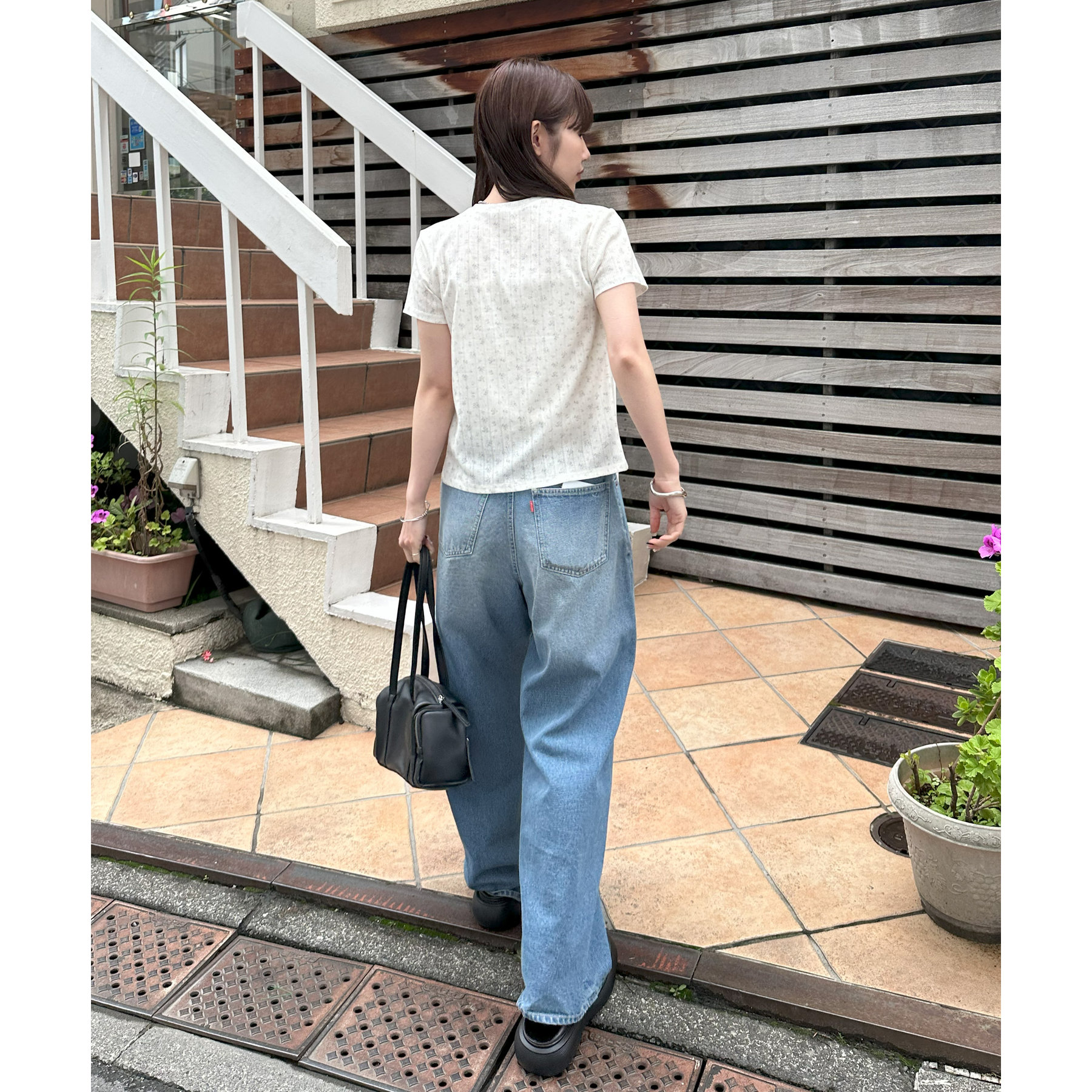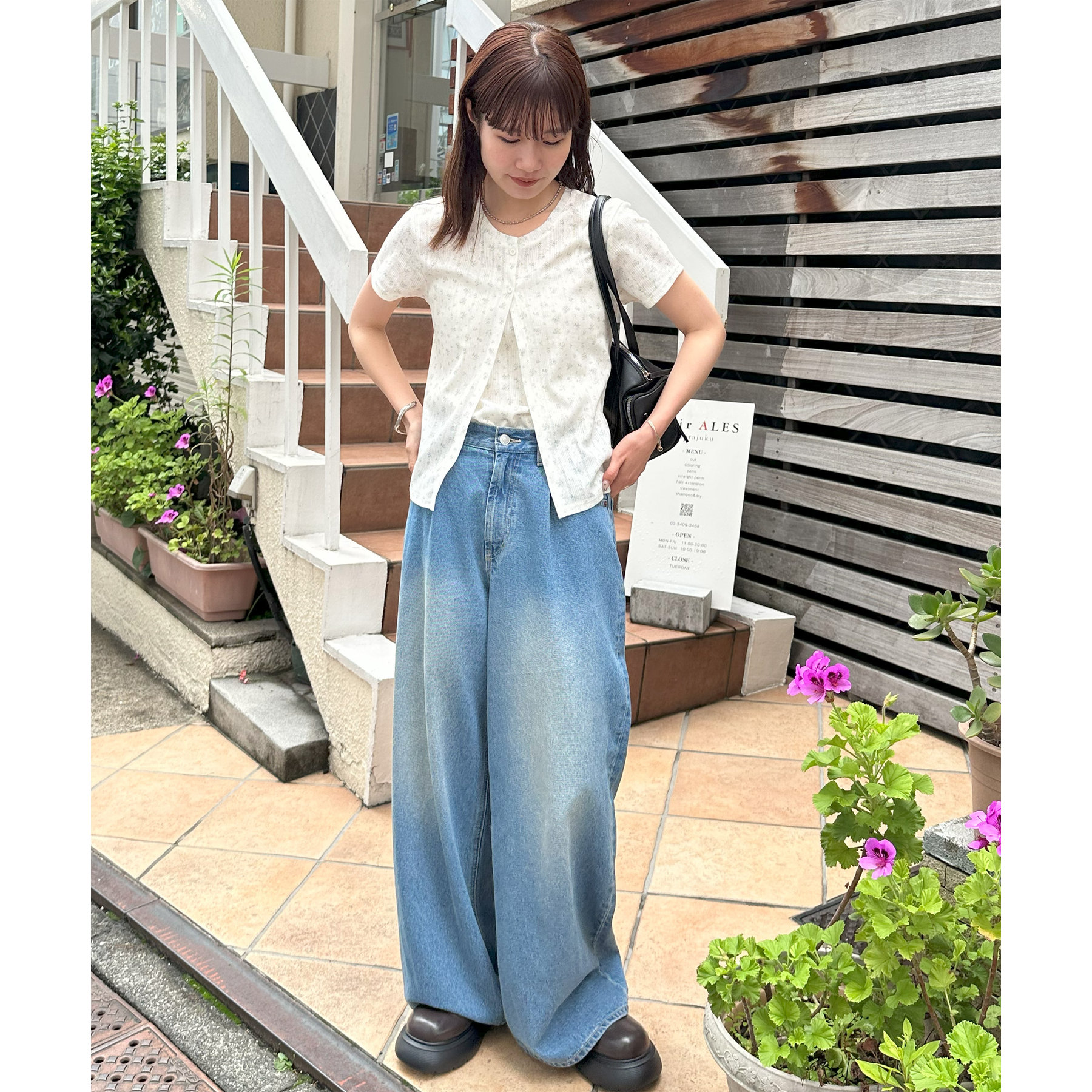 150cmスタッフ:コンパクトなサイズ感がトレンド感ばっちりです!ワイドパンツと相性◎