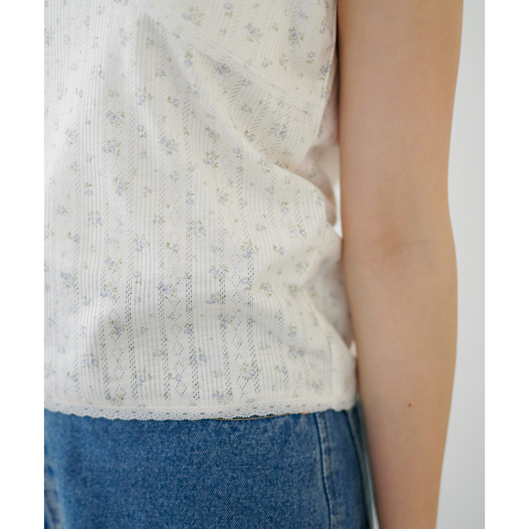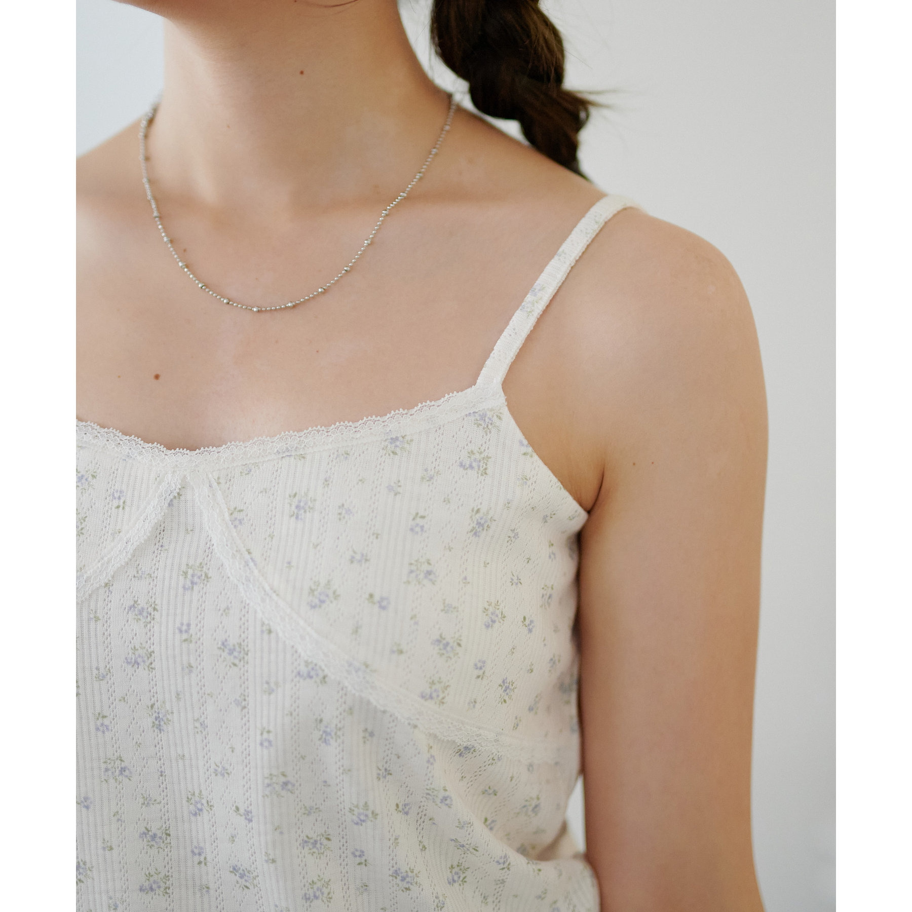 キャミソールの胸元には繊細なレースをあしらっており、インナー使いでも存在感 ◎