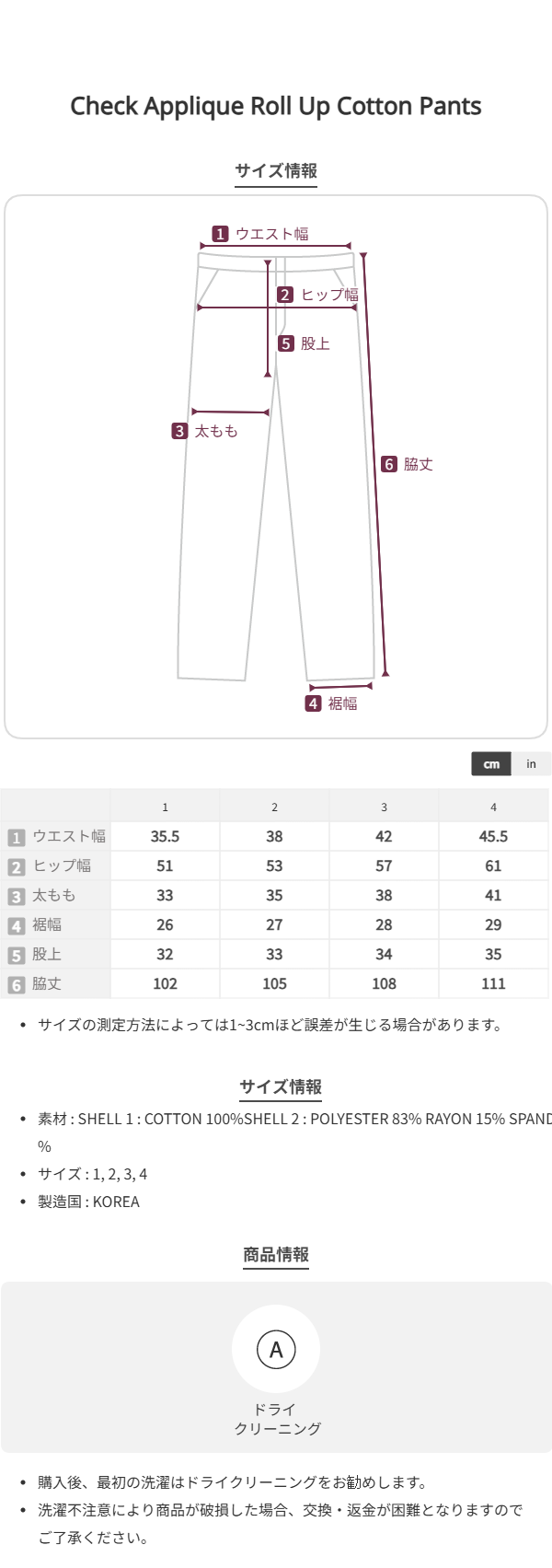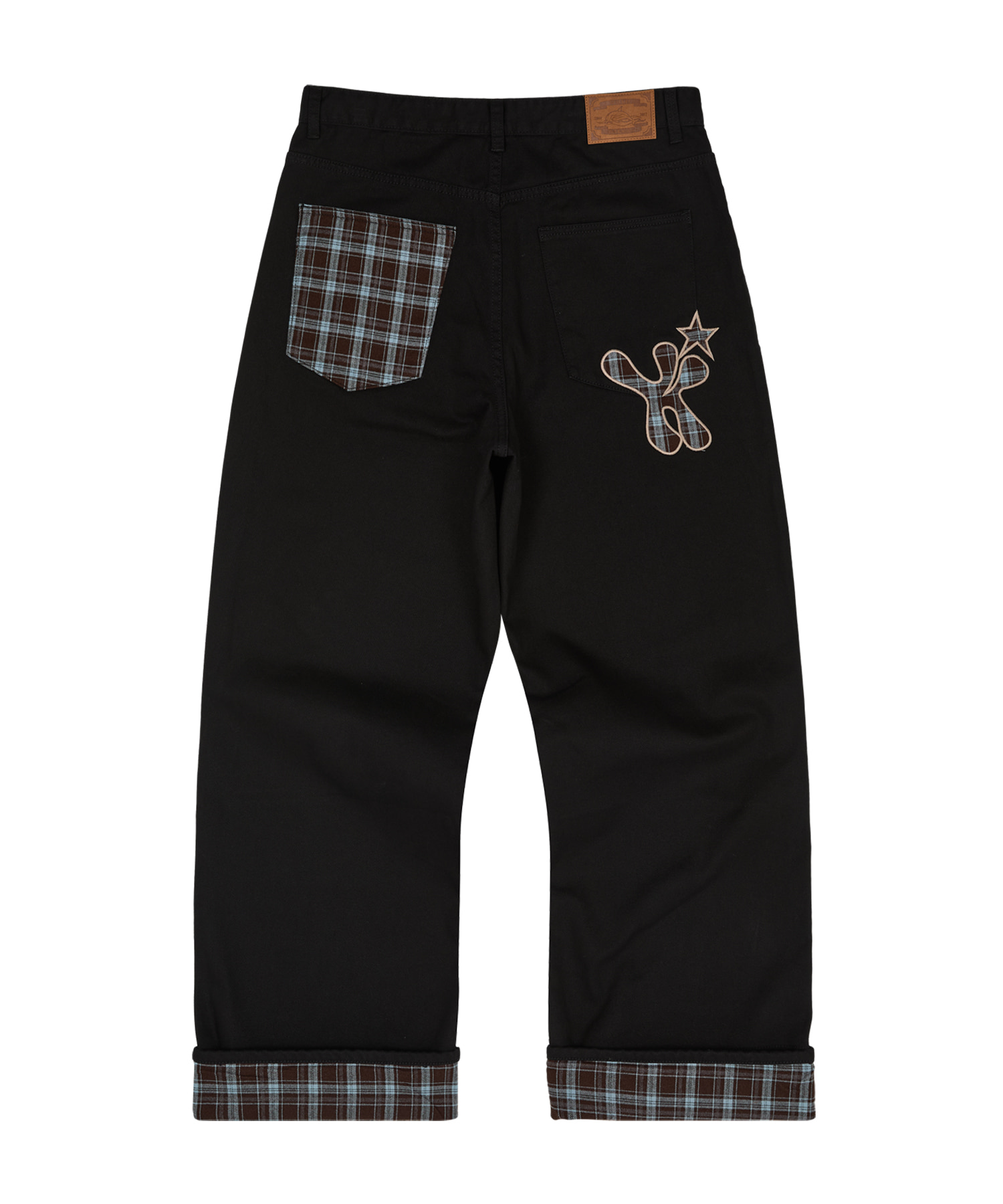 【購入特典】Check Applique Roll Up Cotton Pants BLACK