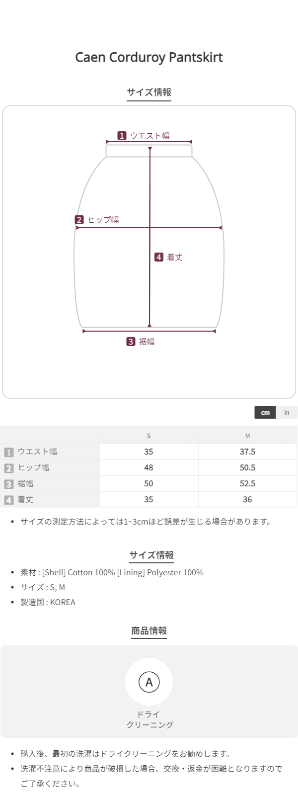 柔らかなコーデュロイの風合いが魅力の Caen Corduroy Pantskirt(カエン コーデュロイ パンツスカート) です。