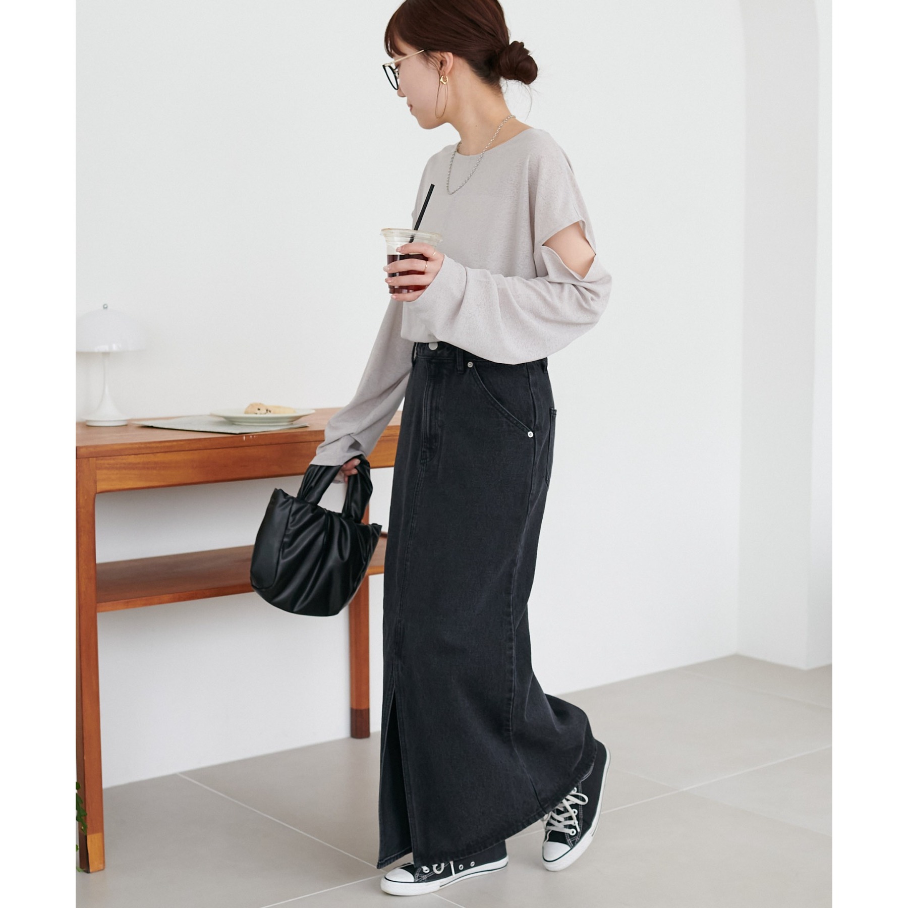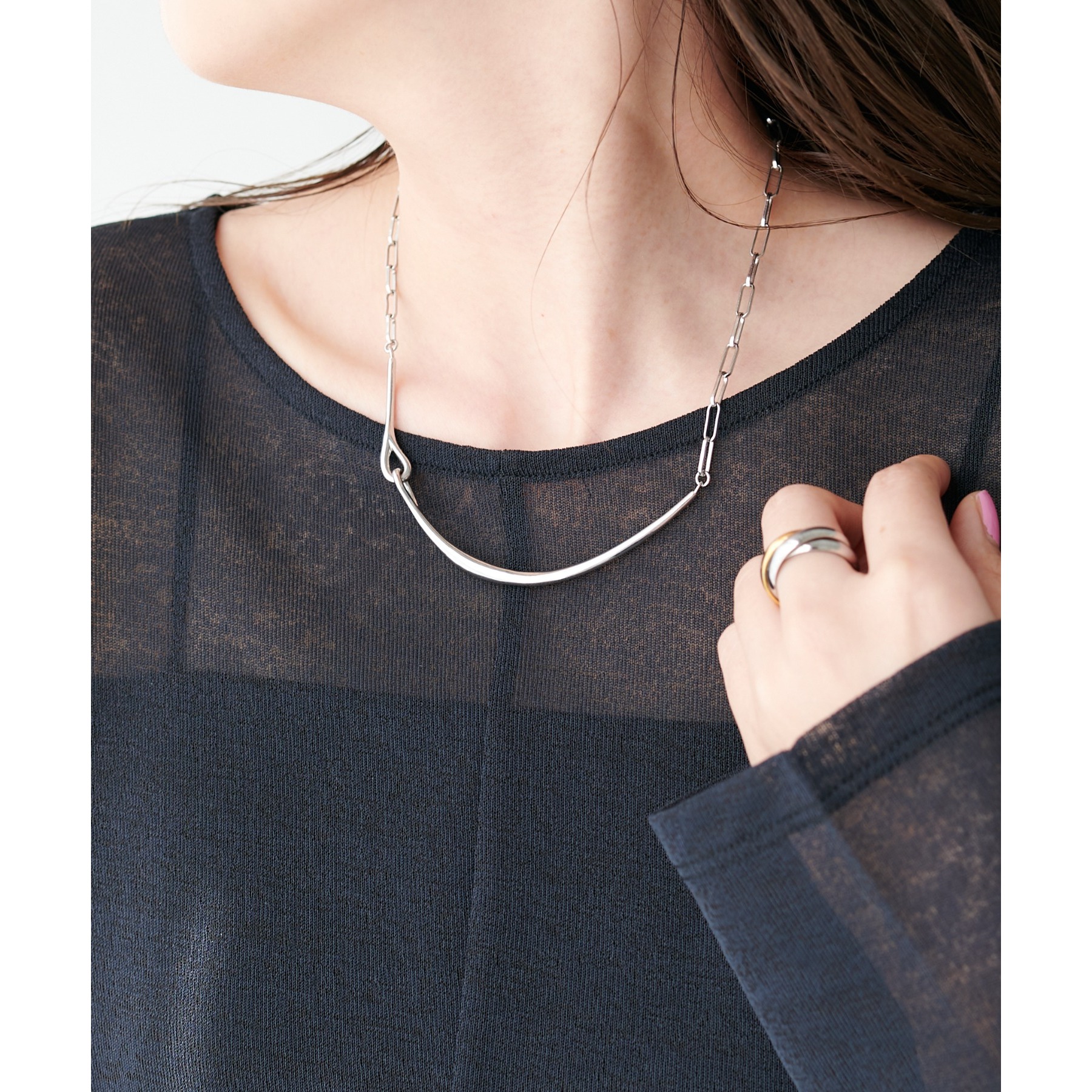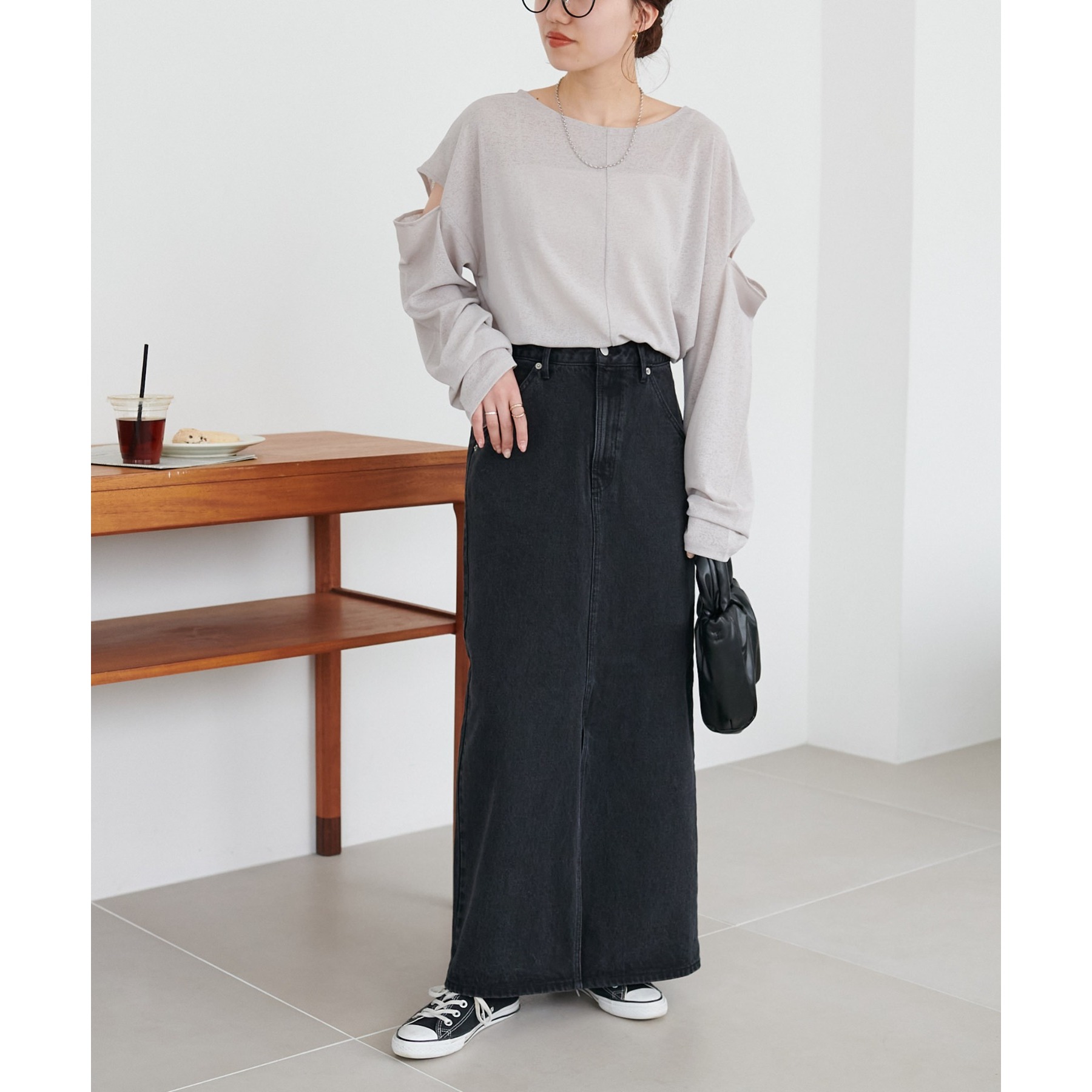 肩開きのデザインが目を惹くプルオーバー。