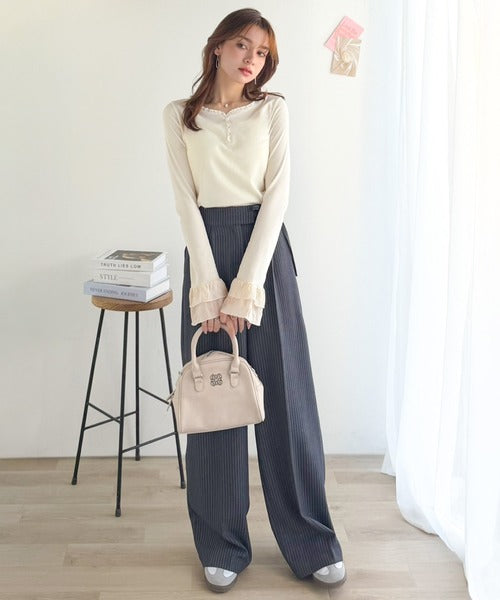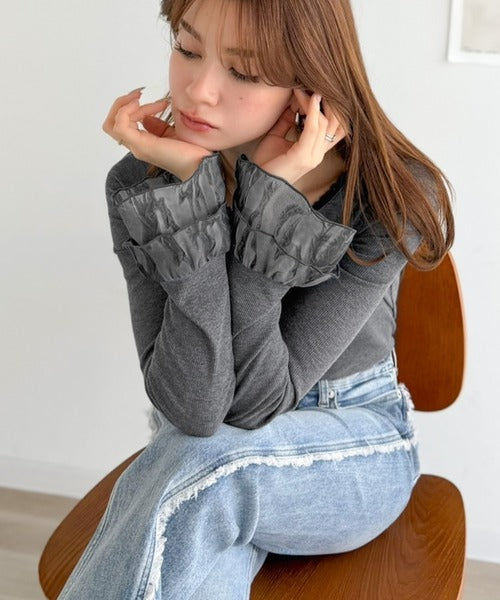 袖口にフリルをあしらい、大人フェミニンな雰囲気をプラス。
