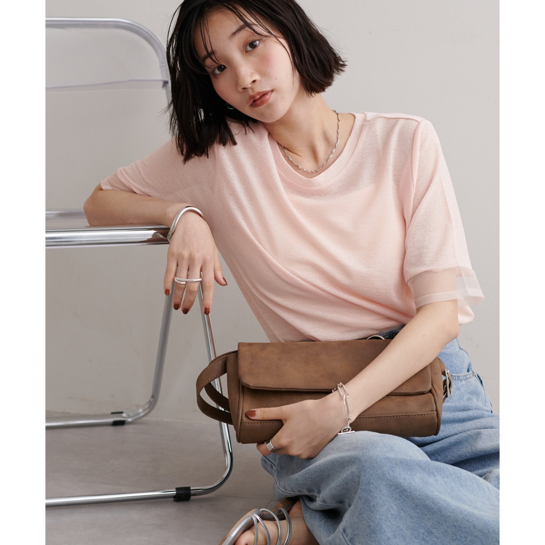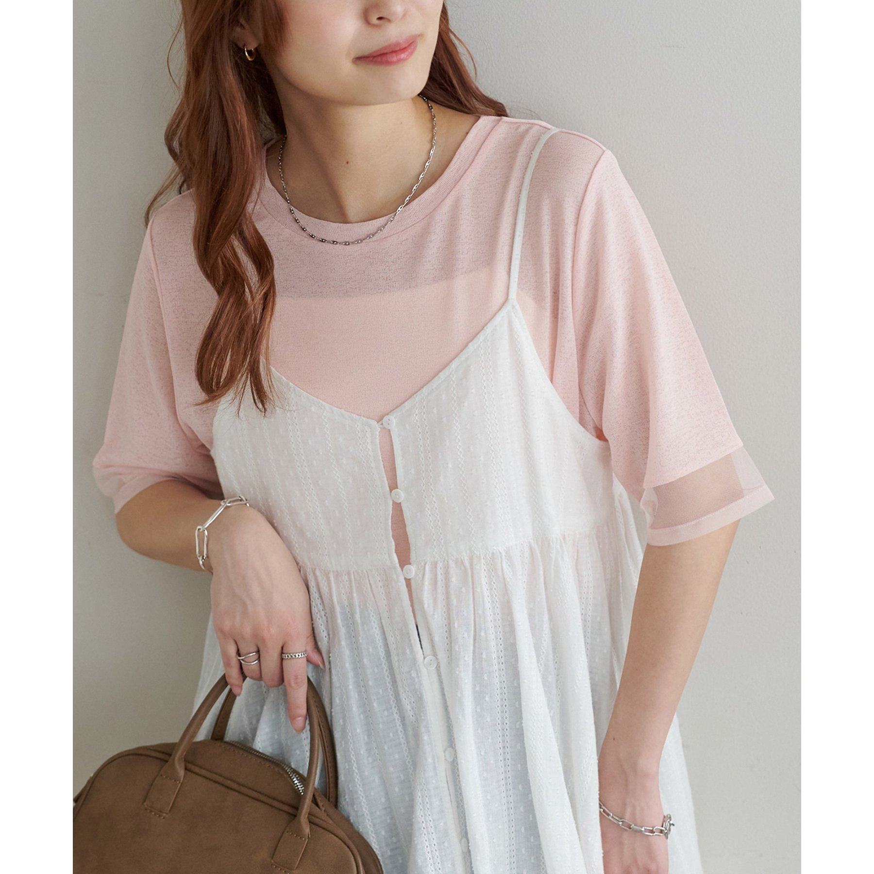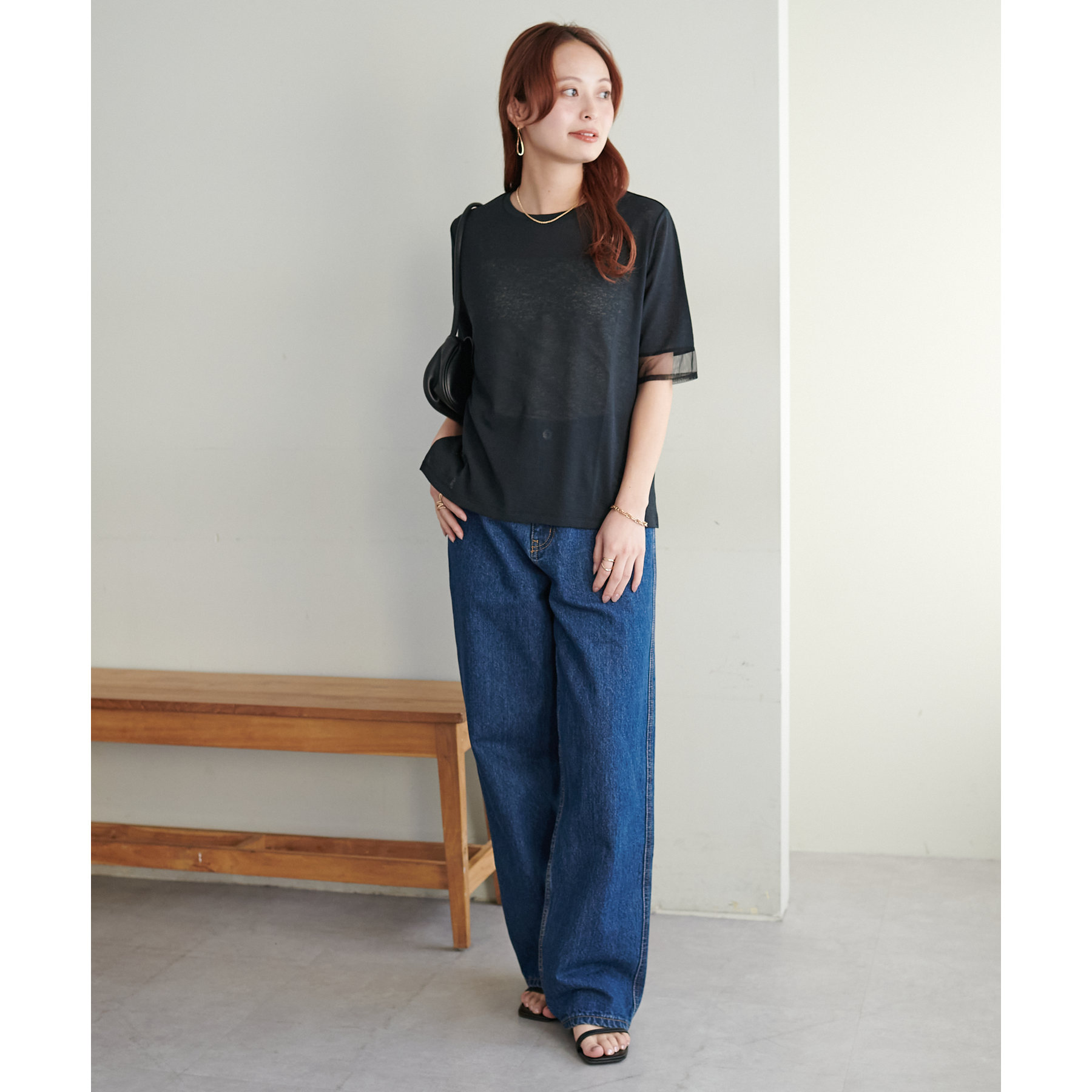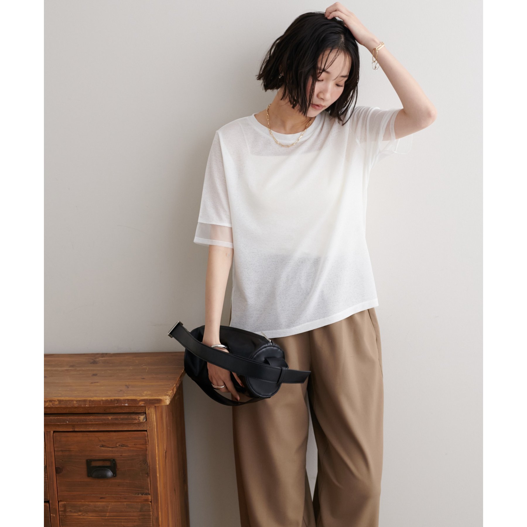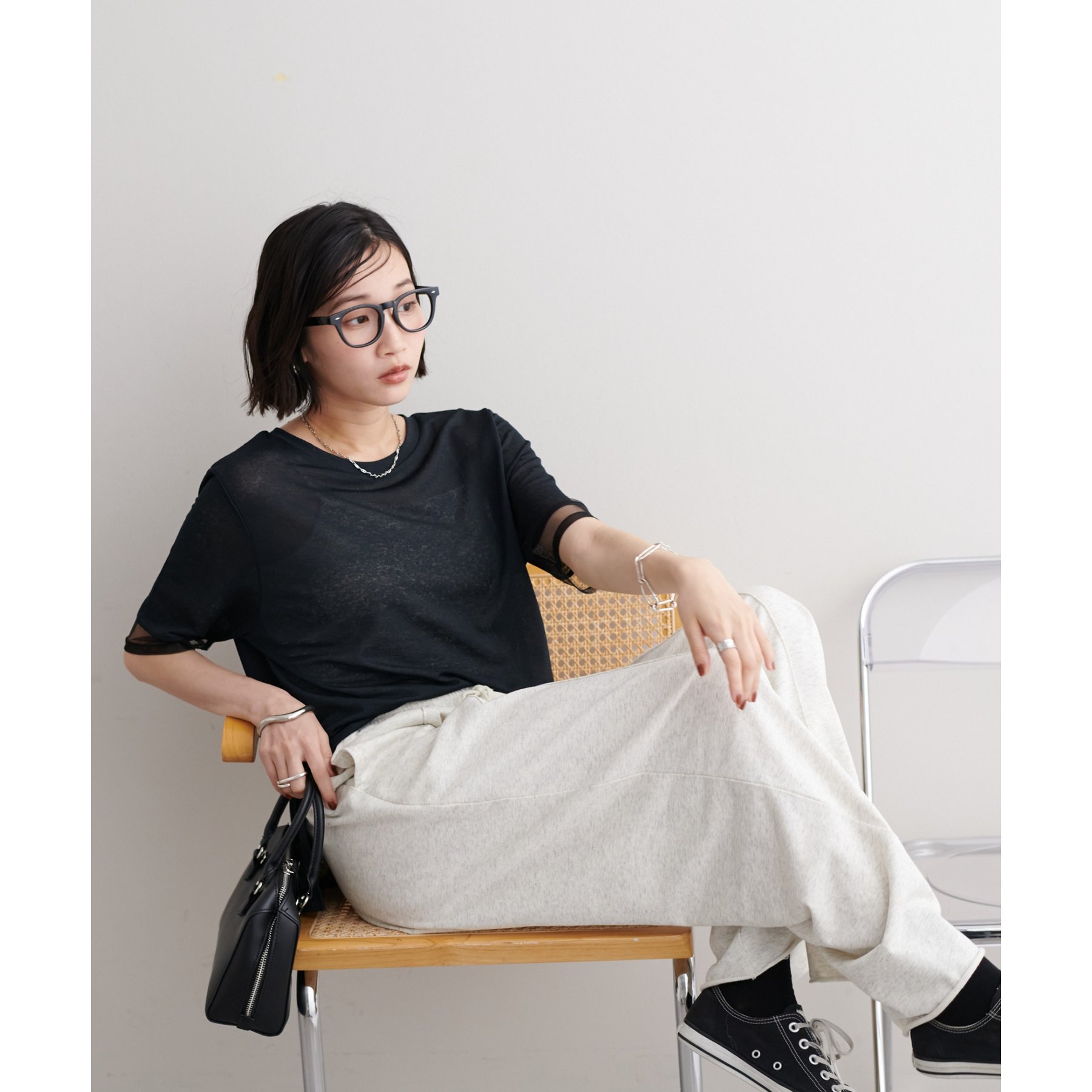 155cmスタッフ:シンプルだけど一枚でおしゃれに見える、袖の切替えデザインが魅力です。袖がシアーなので見た目も涼しく、春夏にぴったり!