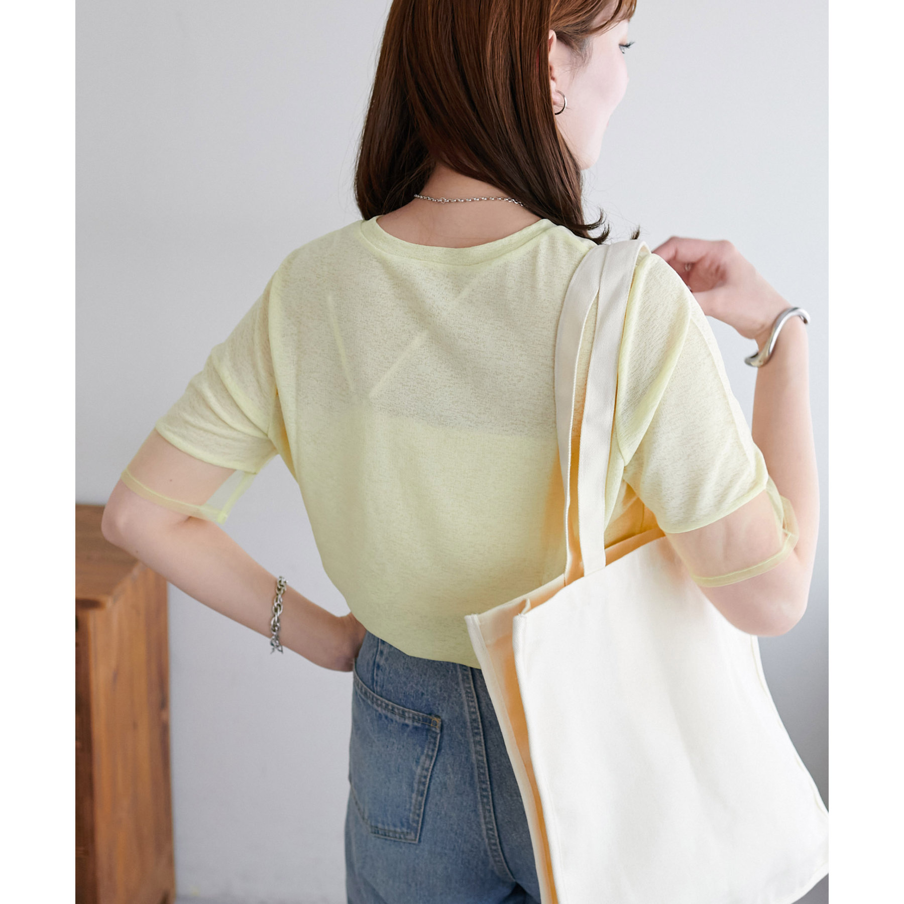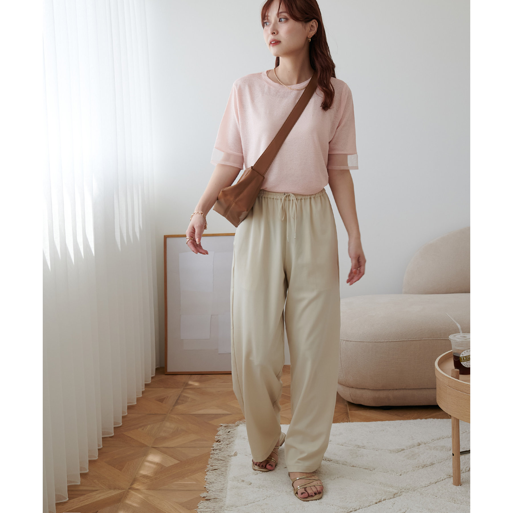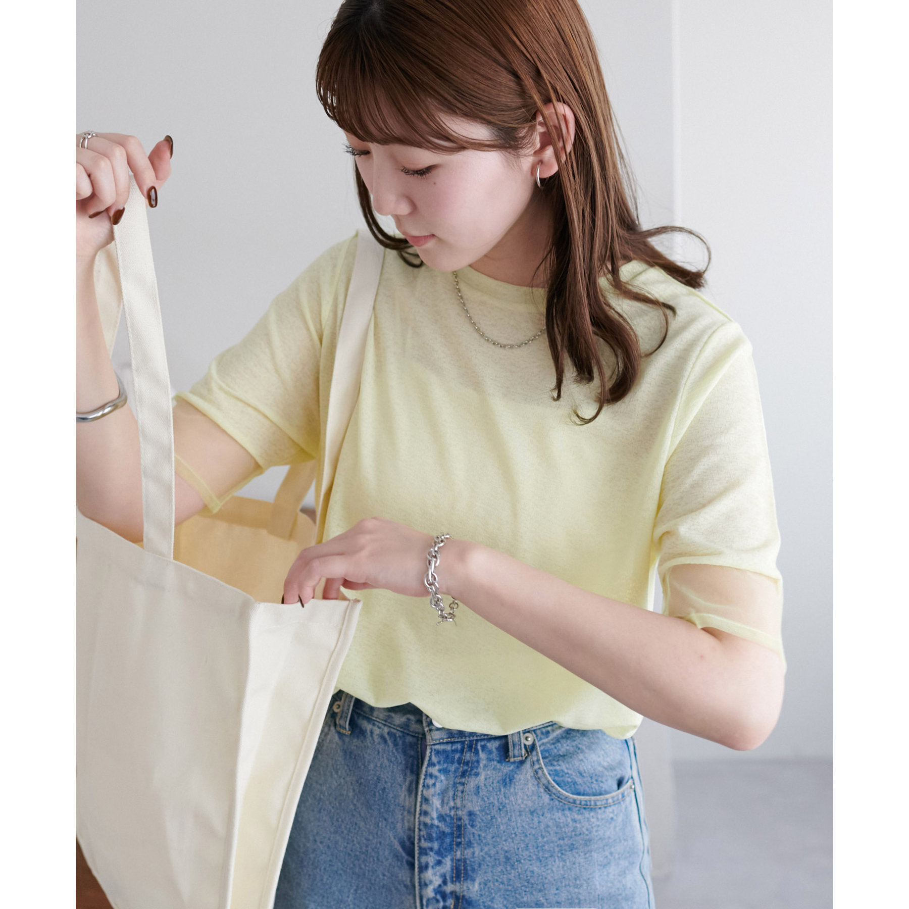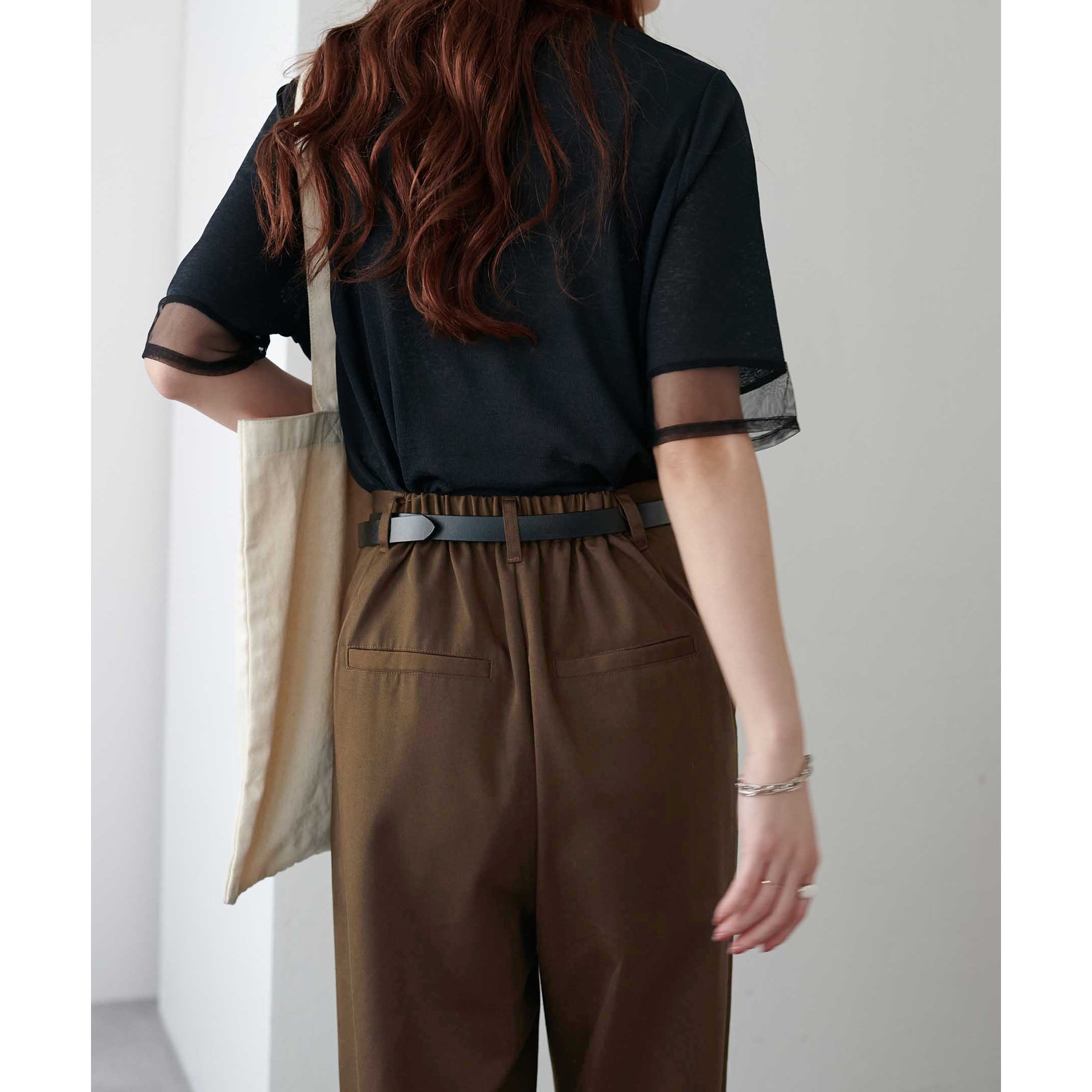 155cmスタッフ:シンプルだけど一枚でおしゃれに見える、袖の切替えデザインが魅力です。袖がシアーなので見た目も涼しく、春夏にぴったり!