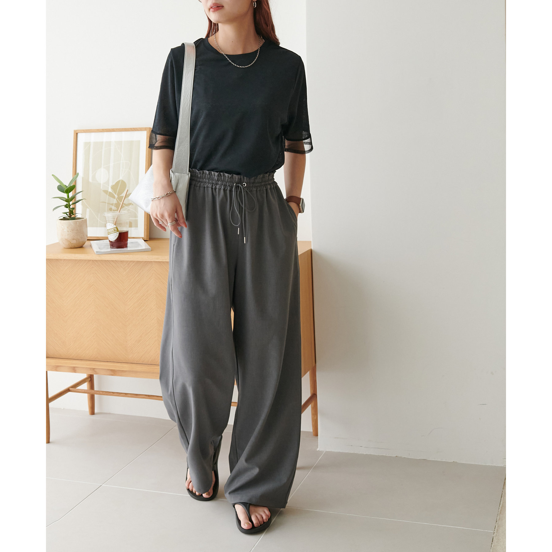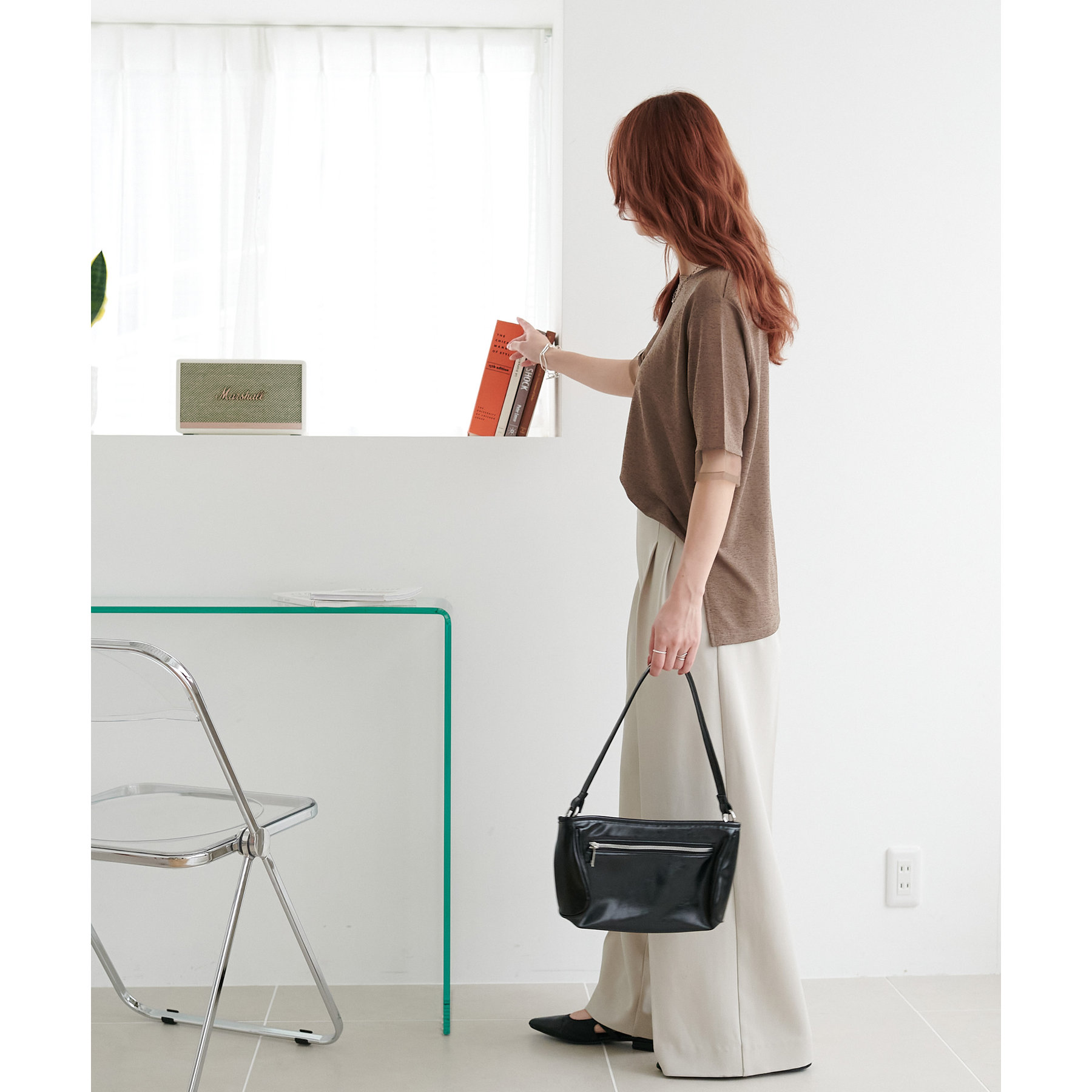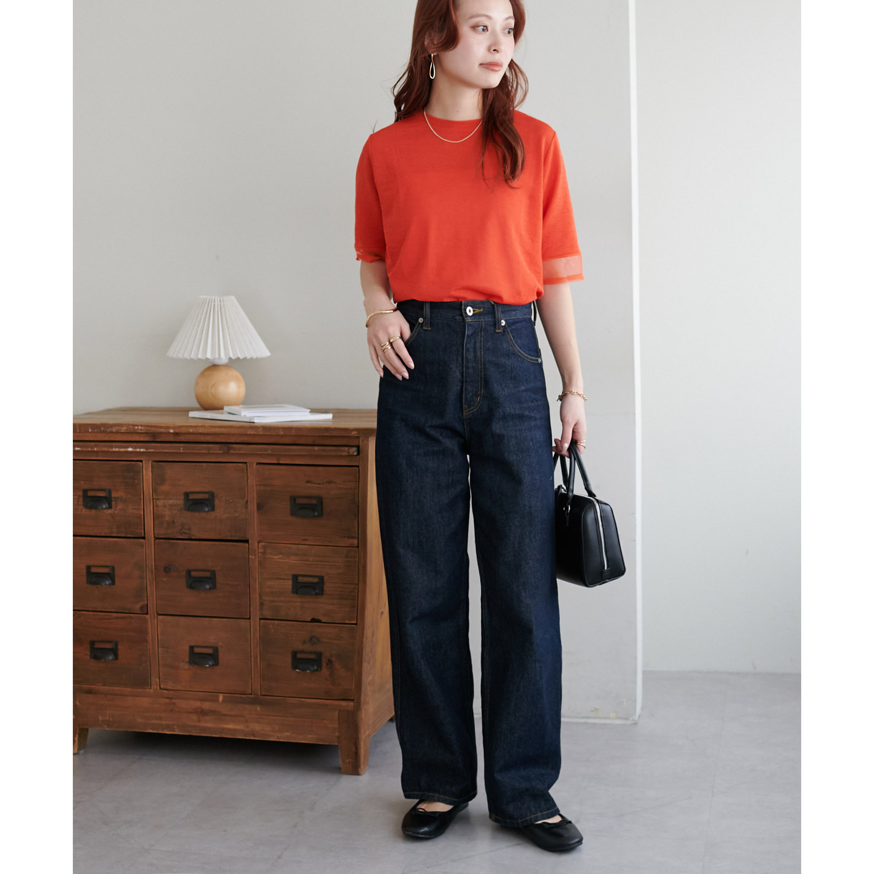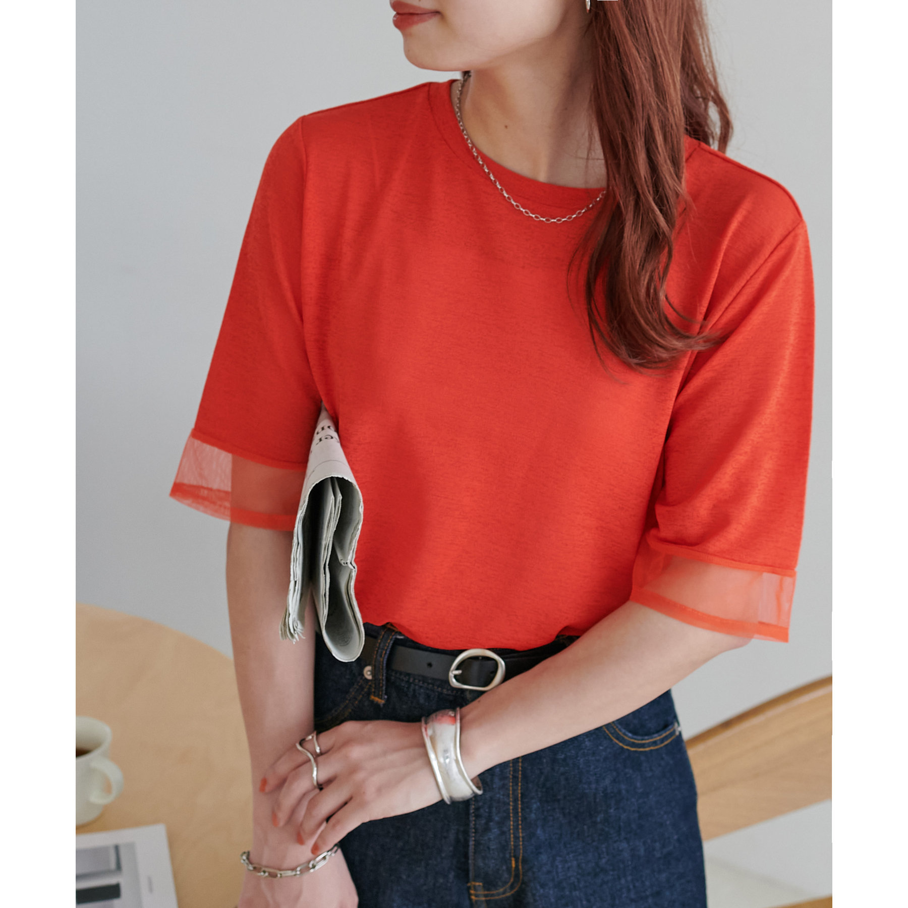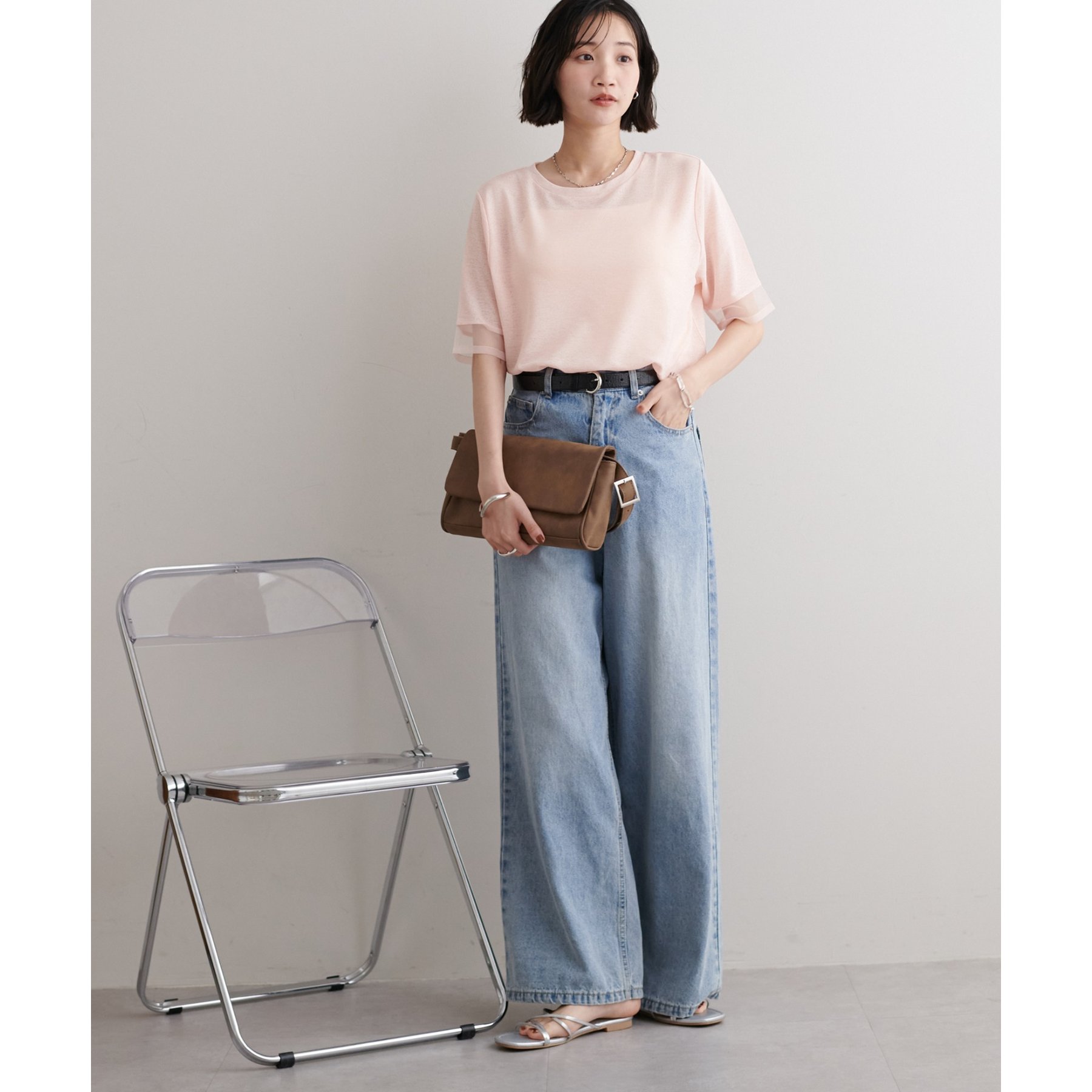 155cmスタッフ:シンプルだけど一枚でおしゃれに見える、袖の切替えデザインが魅力です。袖がシアーなので見た目も涼しく、春夏にぴったり!