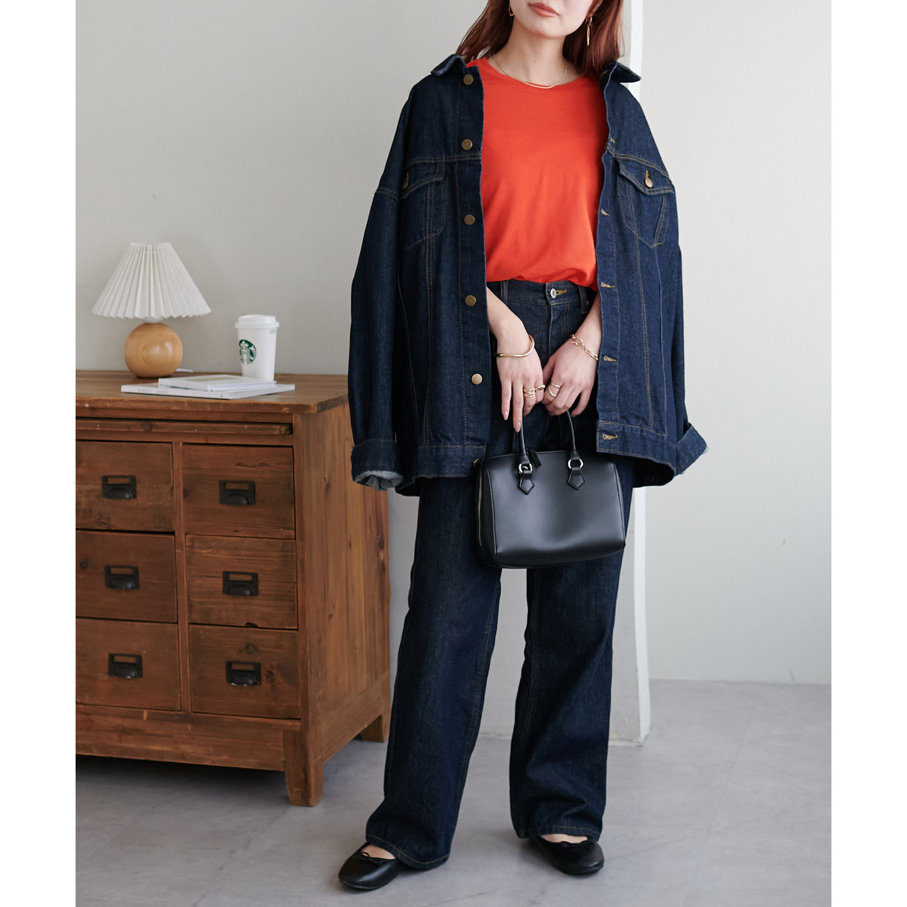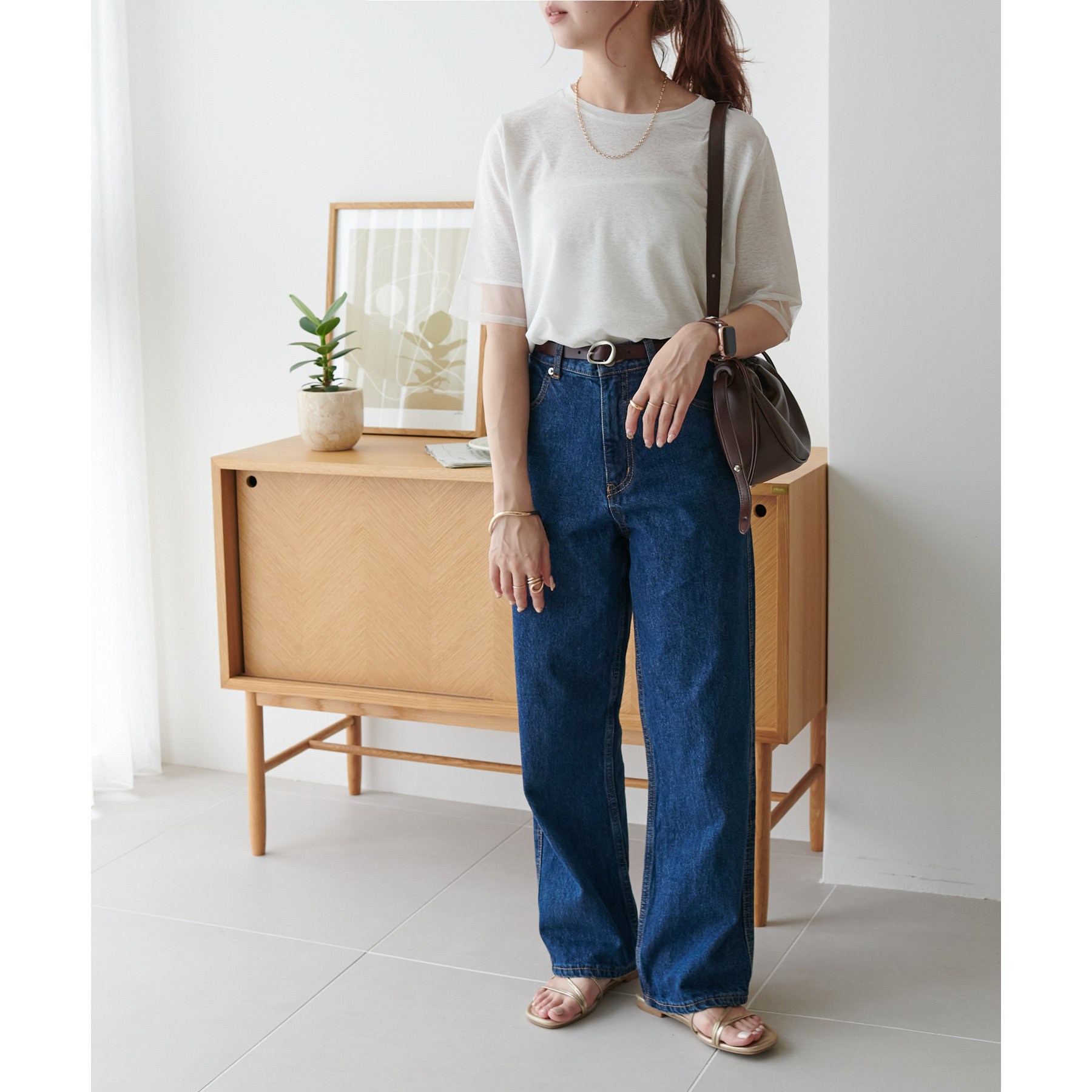 160cmスタッフ:ゆとりのあるシルエットで体のラインを拾いにくく、1枚でさらっと着ても安心。ラフにデニムと合わせるだけでサマになるトップスです。