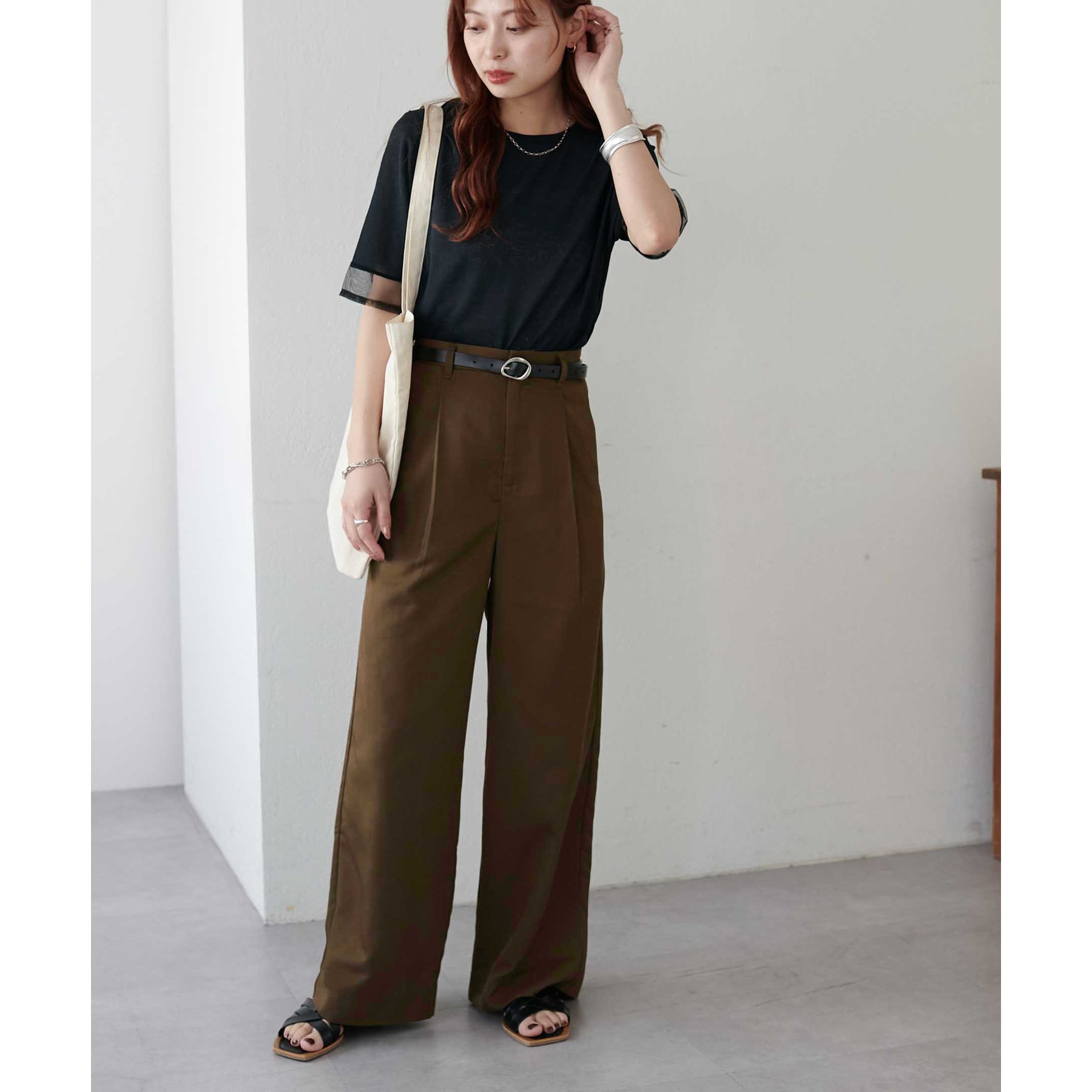 【@yuyukekelife企画】ベルト付き欲張りストレートタックパンツ
