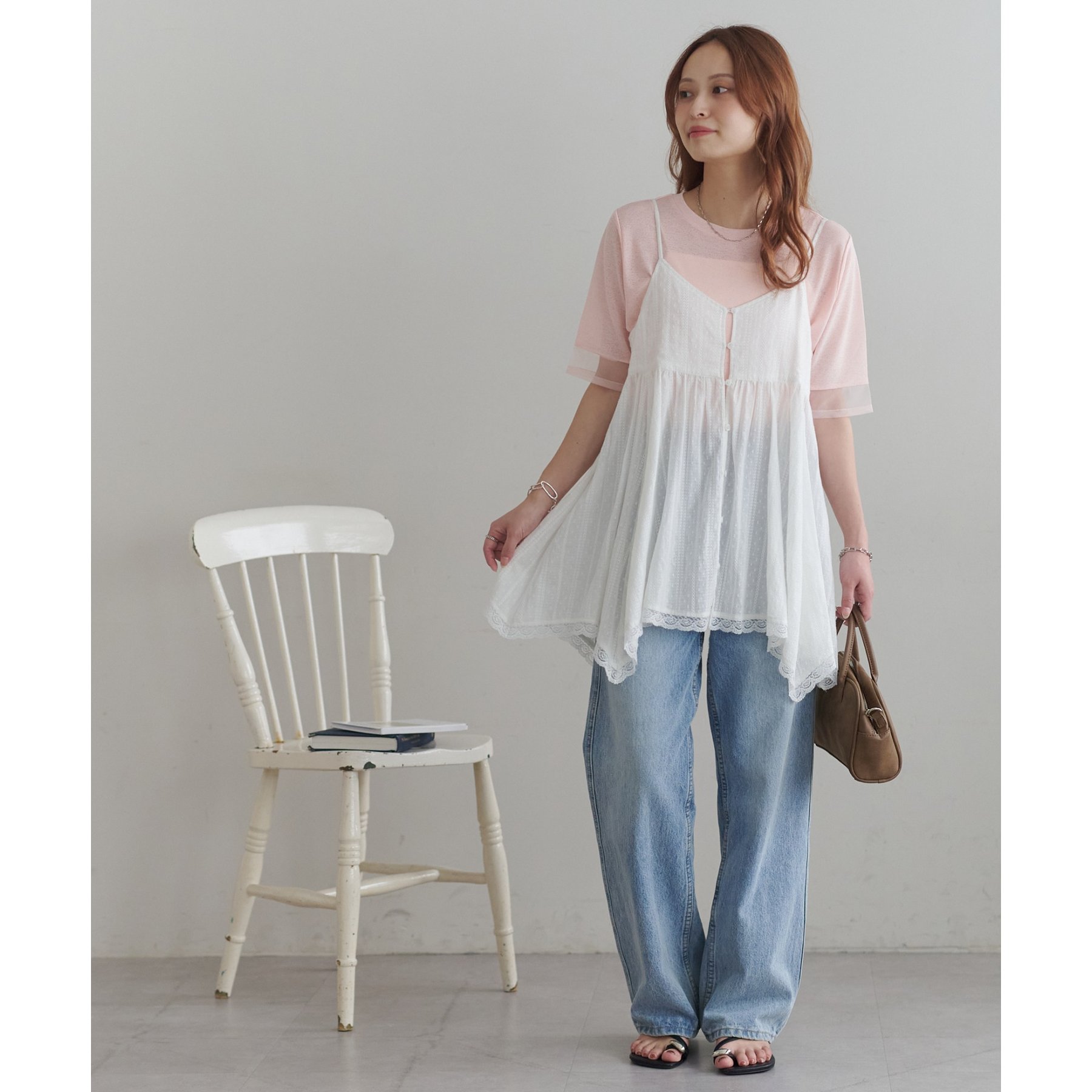タックアウトしても様になる裾スリットのデザインで、一枚での着用はもちろん、キャミワンピースやサロペットのインナーとしても映えるマルチなアイテムです◎